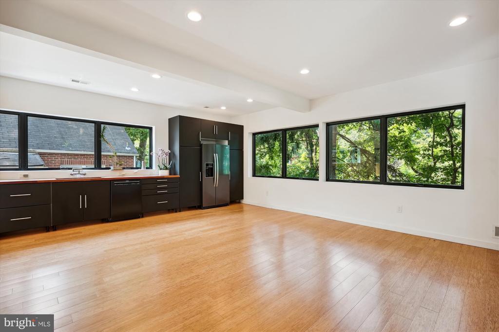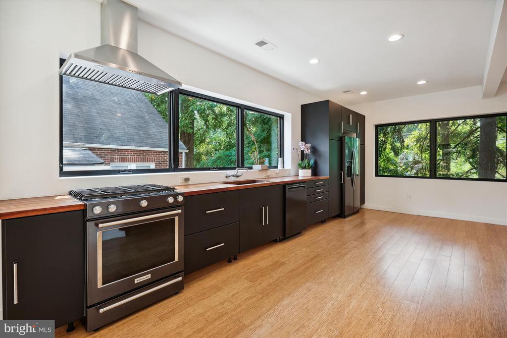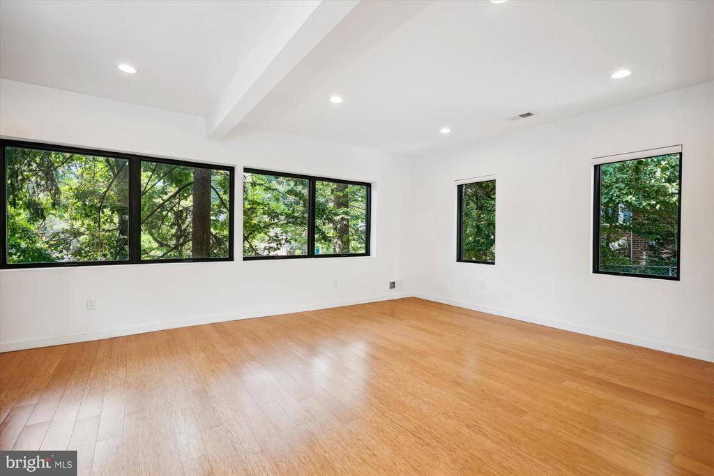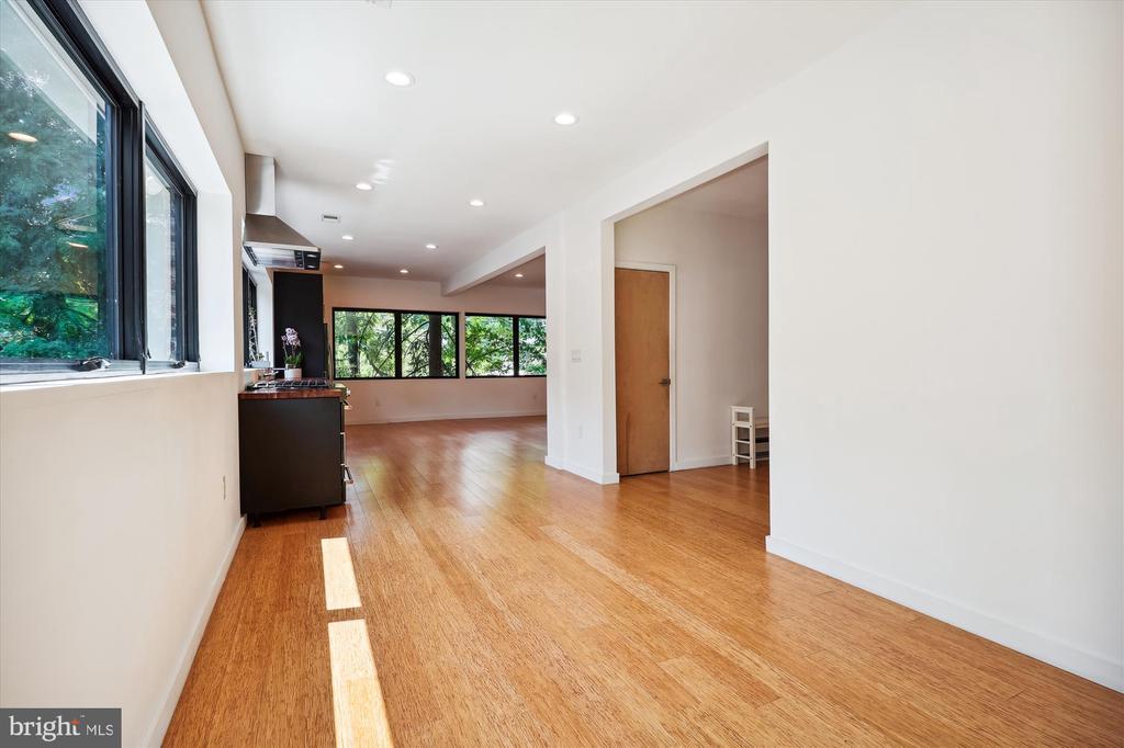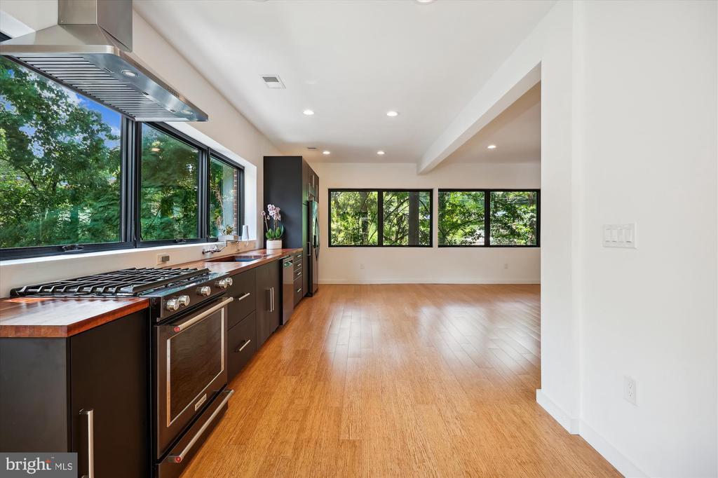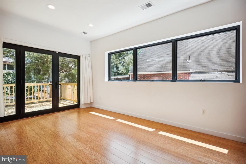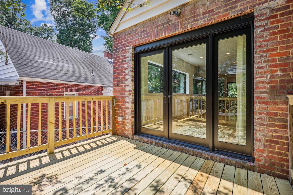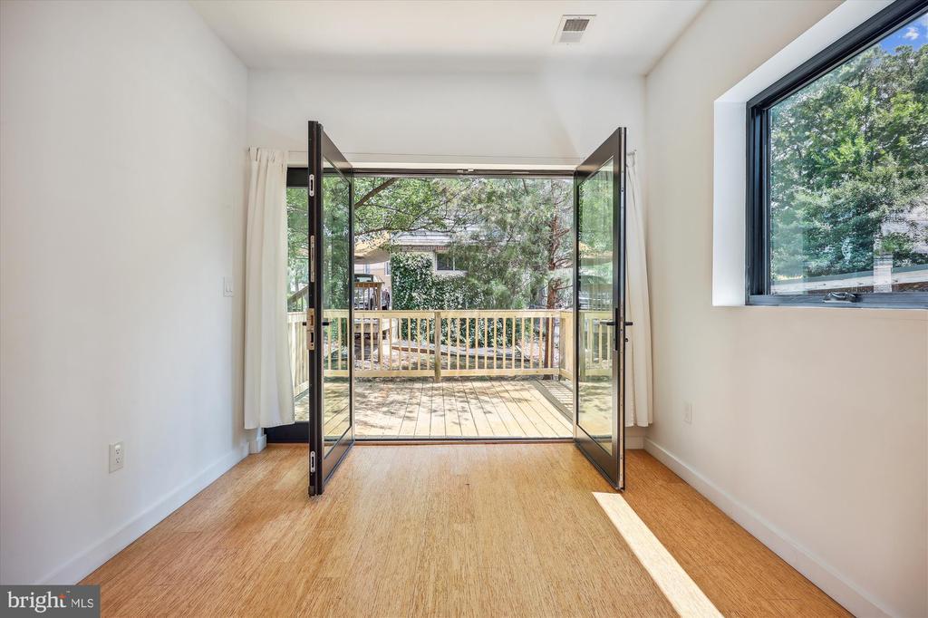 Light filled fully renovated 2 bedroom with a den, fenced yard and detached garage. Main level has an open floor plan, bamboo floors, gourmet kitchen with stainless appliances and a bedroom with an ensuite full bath. The dining room opens up to the newer deck, to double your entertaining space. Treetop views from all windows. Upstairs there is a large primary suite with a sitting area, skylights, luxurious bath and huge walk in closet. Lower level has a den that could be used as a guest space, luxurious bath with a soaking tub and separate shower. Everything was updated the last 5 years. Newer roof, HVAC, bamboo floors, energy efficient windows and doors, plumbing, 200 amp heavy up. The light filled home sits high above Piney Branch surrounded by mature trees and great views. Use 8423 Winding Hill Way in your GPS, it will take you to the driveway and entrance .