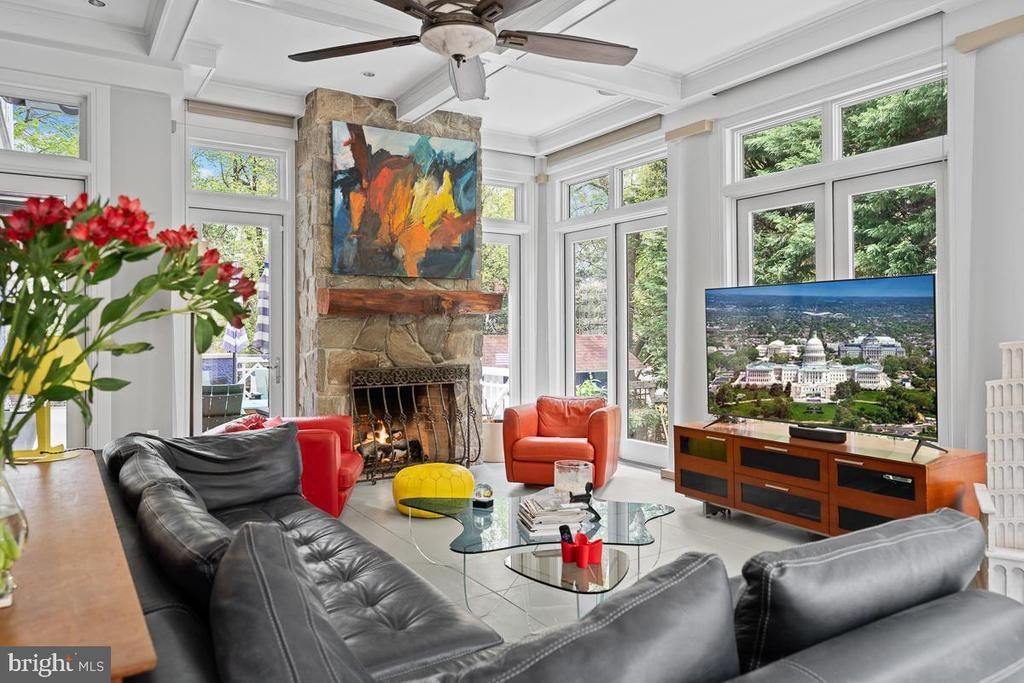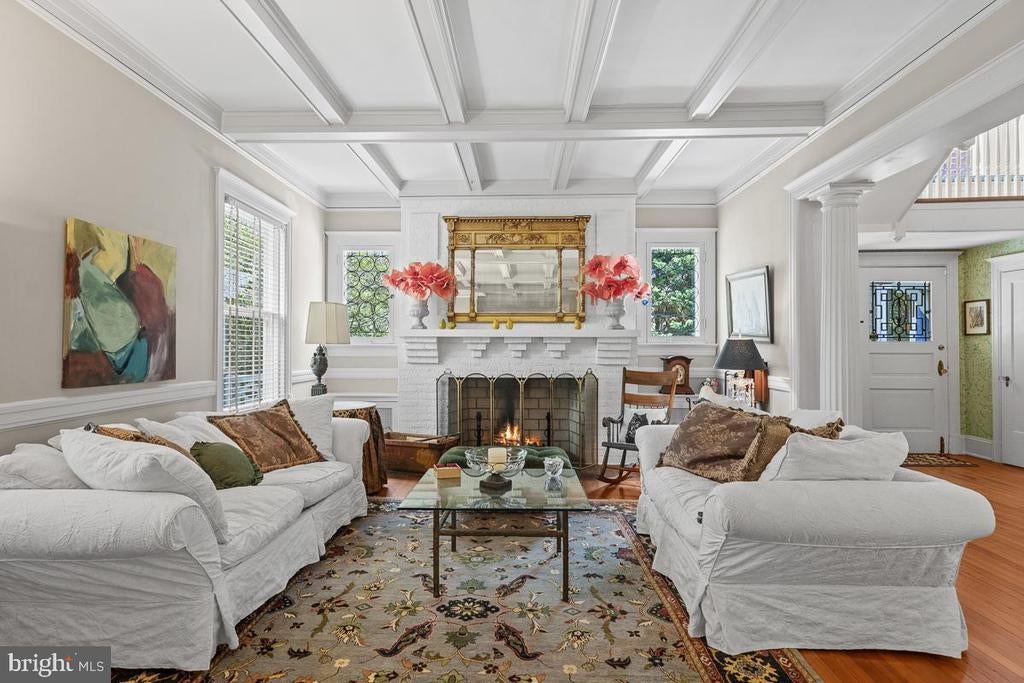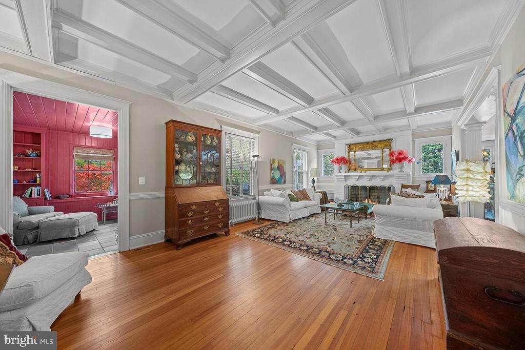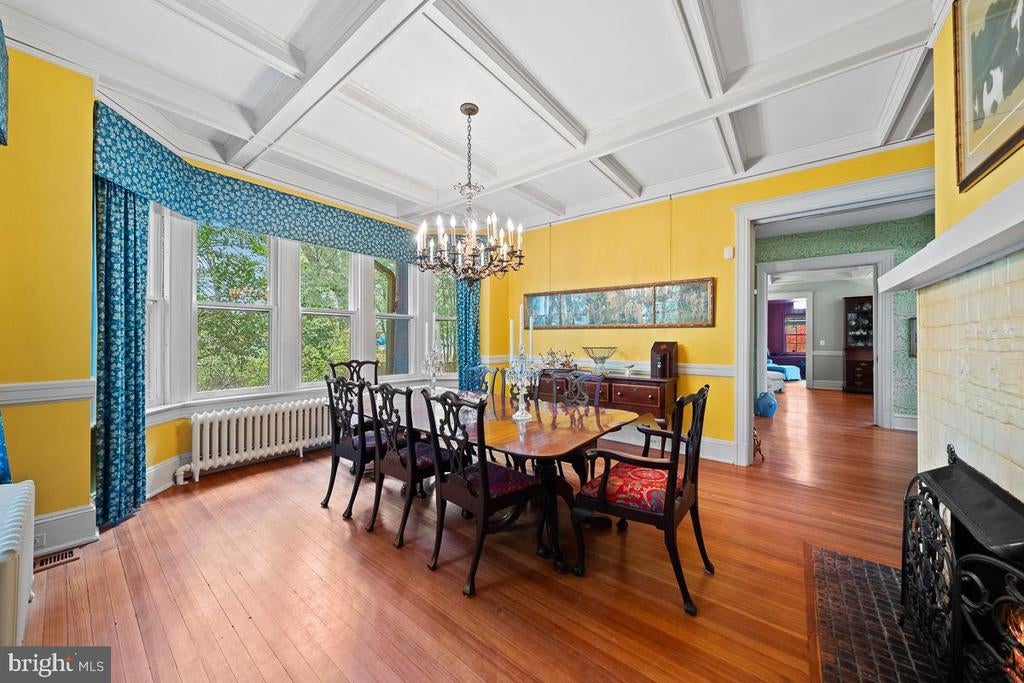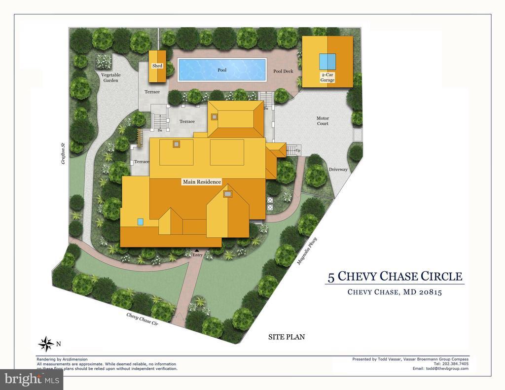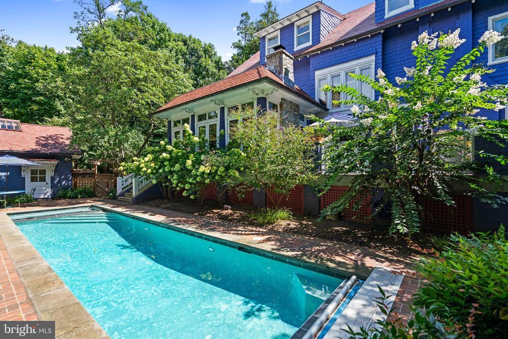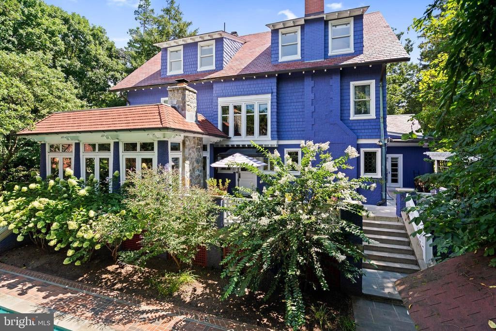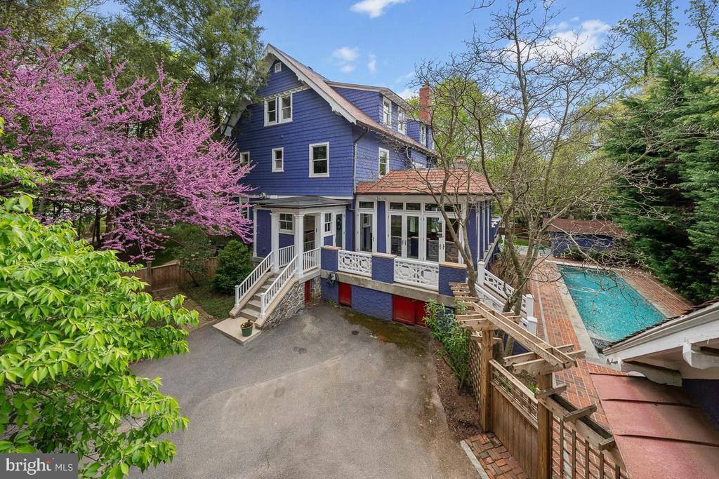 A truly rare opportunity in Chevy Chase Village! Welcome to 5 Chevy Chase Circle, an architectural gem known for its striking size, prime location, and captivating Arts and Crafts design lovingly known as "The Purple House". Originally built in the 1890s, this three-story residence, standing sentinel-like between Grafton Street and Magnolia Parkway, has a storied past that includes serving as a one-story schoolhouse, the Chevy Chase Land Company sales office, and later as the rectory for All Saints' Episcopal Church from the 1940s to the 1970s. As one of only two homes on the Circle — alongside the Corby Mansion — this frame and stucco masterpiece features wide overhanging eaves with brackets and robust, oversized porch columns. Buffering the home from the Circle is a charming parklet, with intersecting brick paths, providing a serene oasis amidst historic grandeur. The home has a unique and private setting on a large, 14,904 sq ft lot. The expansive property is surrounded by mature trees and has been professionally landscaped for the utmost privacy and year-round color. It offers a wide variety of spaces to relax, play, and entertain - including a commanding front porch, side yards, a rear terrace overlooking the beautiful pool and hot tub, and a motor court and garage. Approaching the home off Chevy Chase Circle, you are greeted by the front porch and then enter the beautiful vestibule with French doors that open to the incredible foyer and breathtaking staircase. The main level of the home is spacious with high ceilings, original trims, hardwood floors and many grand rooms to live and entertain comfortably. A stately living room with coffered ceilings centers around the large and newly restored fireplace. This wing of the home also features a private office space leading to a separate terrace and a powder room off the foyer. Exiting the foyer to the right, you can directly access the impressive separate dining room with another fireplace. You can also walk down the hall to the heart of the home - the spacious kitchen including a large cooking space, separate island, eat-in space for 10+ and a tucked away butler's pantry that circles to the dining room. Off the eat-in kitchen is a gorgeous family room that is bathed in light from incredible windows and includes a spectacular stone fireplace. The family room leads directly to the terrace overlooking the pool. A mudroom off the kitchen leads to the motor court and a detached two-car garage. Upstairs you will find two more finished levels offering another 3500 square feet of living space. The second floor includes the primary suite with a large walk-in closet, a third wood burning fireplace, and private balcony along with an additional 3 bedrooms and 2 bathrooms. The top level includes a striking and spacious rec room with a fifth fireplace that could easily function as a playroom, library, or additional bedroom. This floor also includes two more bedrooms, landing area, storage, and another full bath. The lower level of the home offers over 1200 sq ft of versatile space and storage areas, another bathroom, laundry area, and a sauna. Recent updates to the home include two brand new Carrier HVAC systems installed on 06/25, rebuilding the main fireplace and chimney, and recently upgraded pool heater, pool refinishing, and filter system. Chevy Chase Village is an historic community just over the DC/MD line. The Village’s tree-lined streets, brick sidewalks, and open parks, combine with walking-distance access to public transportation, shopping, schools, restaurants, the Chevy Chase Country Club, and theaters to offer the best of urban and suburban living. Chevy Chase Village has its own police force that patrols the neighborhood 24/7, package pickup while you are on vacation, handles all trash, recycling, and snow plowing, and it is all run out of the centrally-located Village Hall on Connecticut Avenue which is open to residents for events throughout the year.