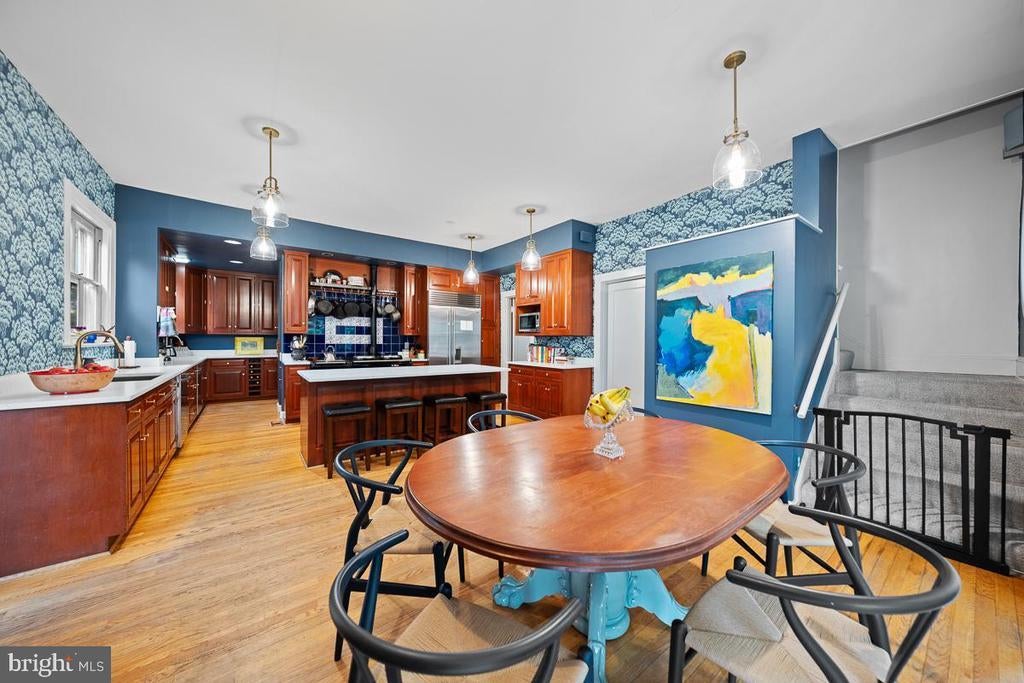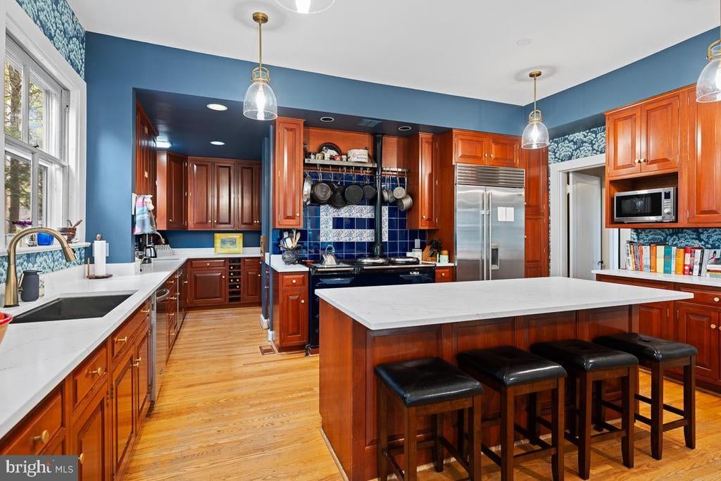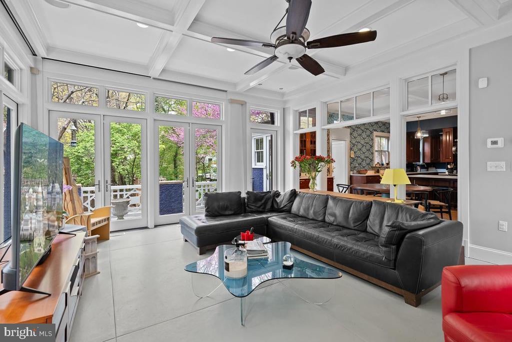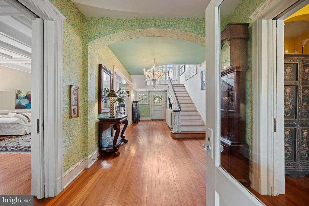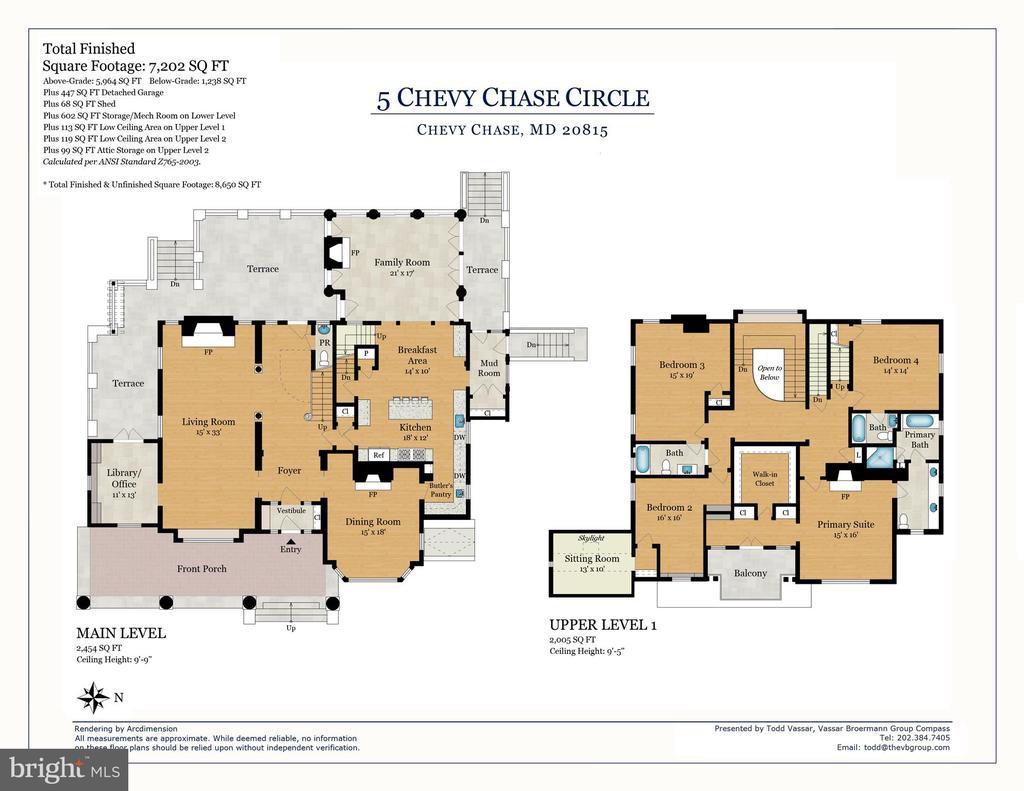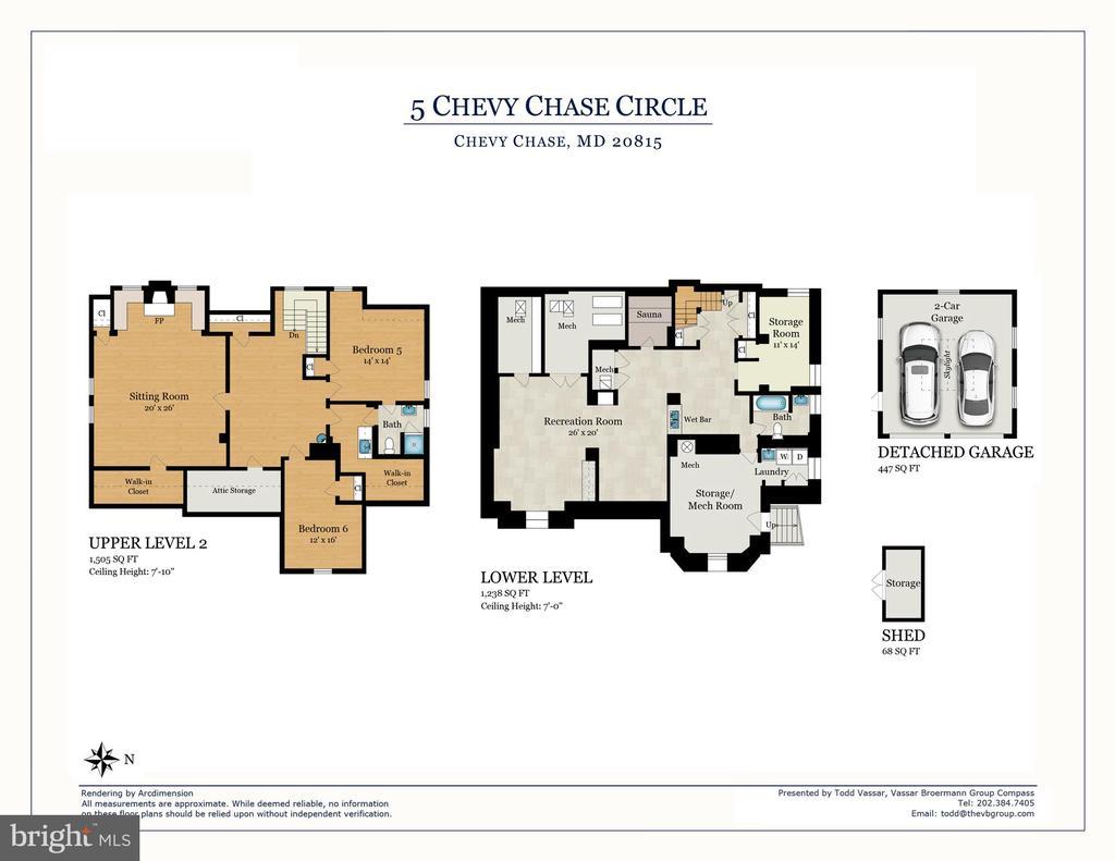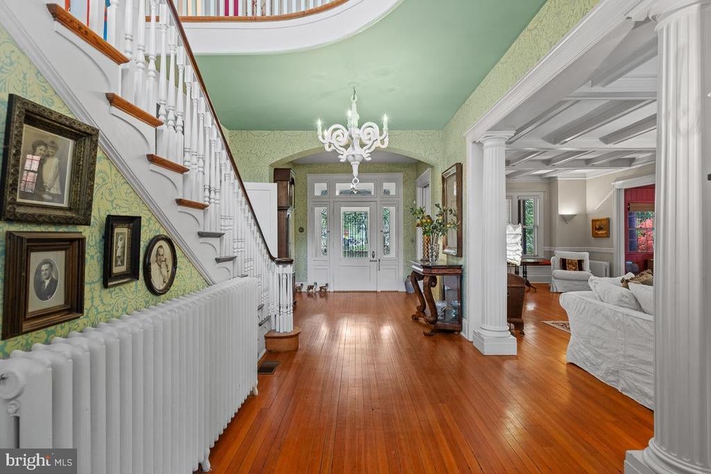 A truly rare opportunity in Chevy Chase Village! Welcome to 5 Chevy Chase Circle, an architectural gem known for its striking size, prime location, and captivating Arts and Crafts design lovingly known as "The Purple House". Originally built in the 1890s, this three-story residence, standing sentinel-like between Grafton Street and Magnolia Parkway, has a storied past that includes serving as a one-story schoolhouse, the Chevy Chase Land Company sales office, and later as the rectory for All Saints' Episcopal Church from the 1940s to the 1970s. As one of only two homes on the Circle — alongside the Corby Mansion — this frame and stucco masterpiece features wide overhanging eaves with brackets and robust, oversized porch columns. Buffering the home from the Circle is a charming parklet, with intersecting brick paths, providing a serene oasis amidst historic grandeur. The home has a unique and private setting on a large, 14,904 sq ft lot. The expansive property is surrounded by mature trees and has been professionally landscaped for the utmost privacy and year-round color. It offers a wide variety of spaces to relax, play, and entertain - including a commanding front porch, side yards, a rear terrace overlooking the beautiful pool and hot tub, and a motor court and garage. Approaching the home off Chevy Chase Circle, you are greeted by the front porch and then enter the beautiful vestibule with French doors that open to the incredible foyer and breathtaking staircase. The main level of the home is spacious with high ceilings, original trims, hardwood floors and many grand rooms to live and entertain comfortably. A stately living room with coffered ceilings centers around the large and newly restored fireplace. This wing of the home also features a private office space leading to a separate terrace and a powder room off the foyer. Exiting the foyer to the right, you can directly access the impressive separate dining room with another fireplace. You can also walk down the hall to the heart of the home - the spacious kitchen including a large cooking space, separate island, eat-in space for 10+ and a tucked away butler's pantry that circles to the dining room. Off the eat-in kitchen is a gorgeous family room that is bathed in light from incredible windows and includes a spectacular stone fireplace. The family room leads directly to the terrace overlooking the pool. A mudroom off the kitchen leads to the motor court and a detached two-car garage. Upstairs you will find two more finished levels offering another 3500 square feet of living space. The second floor includes the primary suite with a large walk-in closet, a third wood burning fireplace, and private balcony along with an additional 3 bedrooms and 2 bathrooms. The top level includes a striking and spacious rec room with a fifth fireplace that could easily function as a playroom, library, or additional bedroom. This floor also includes two more bedrooms, landing area, storage, and another full bath. The lower level of the home offers over 1200 sq ft of versatile space and storage areas, another bathroom, laundry area, and a sauna. Recent updates to the home include two brand new Carrier HVAC systems installed on 06/25, rebuilding the main fireplace and chimney, and recently upgraded pool heater, pool refinishing, and filter system. Chevy Chase Village is an historic community just over the DC/MD line. The Village’s tree-lined streets, brick sidewalks, and open parks, combine with walking-distance access to public transportation, shopping, schools, restaurants, the Chevy Chase Country Club, and theaters to offer the best of urban and suburban living. Chevy Chase Village has its own police force that patrols the neighborhood 24/7, package pickup while you are on vacation, handles all trash, recycling, and snow plowing, and it is all run out of the centrally-located Village Hall on Connecticut Avenue which is open to residents for events throughout the year.