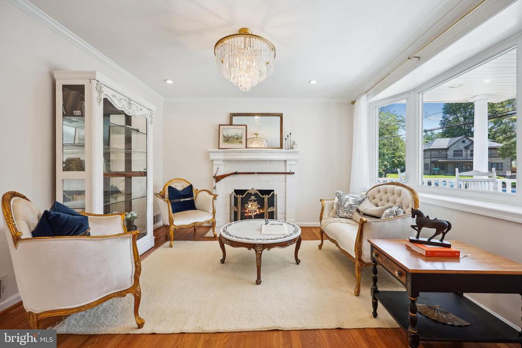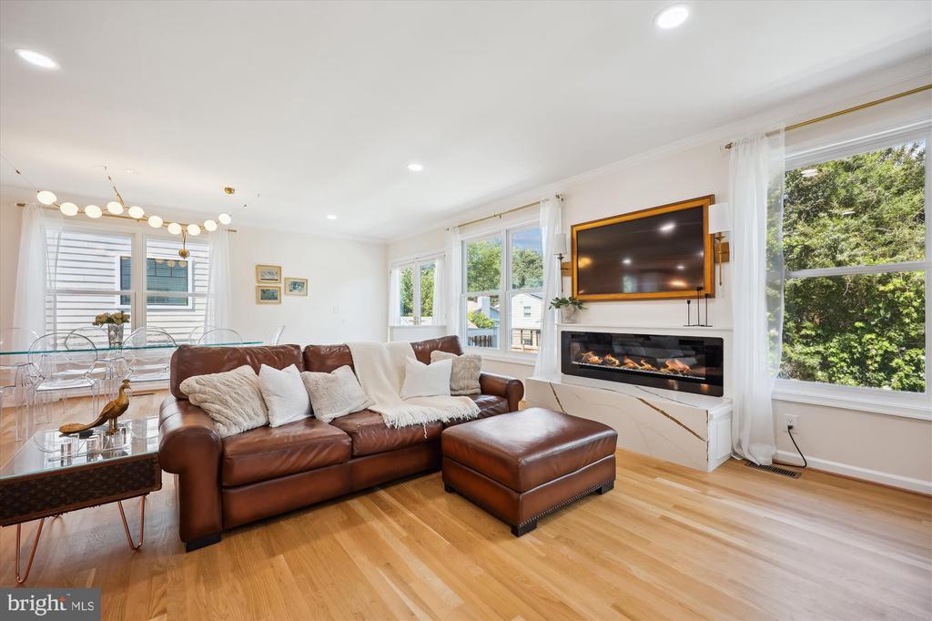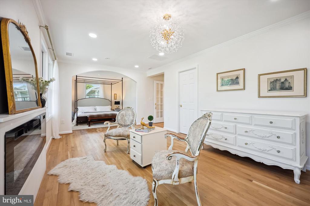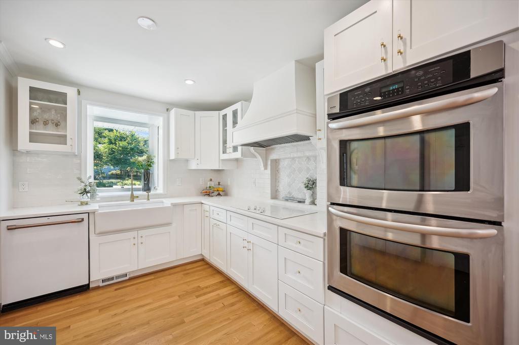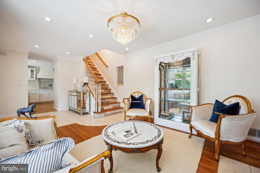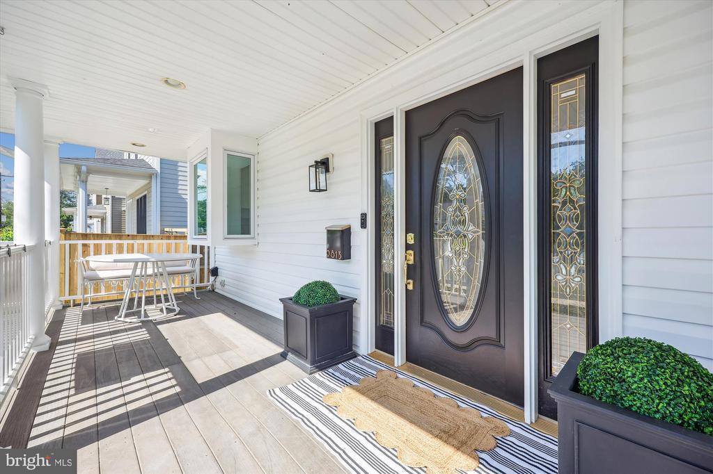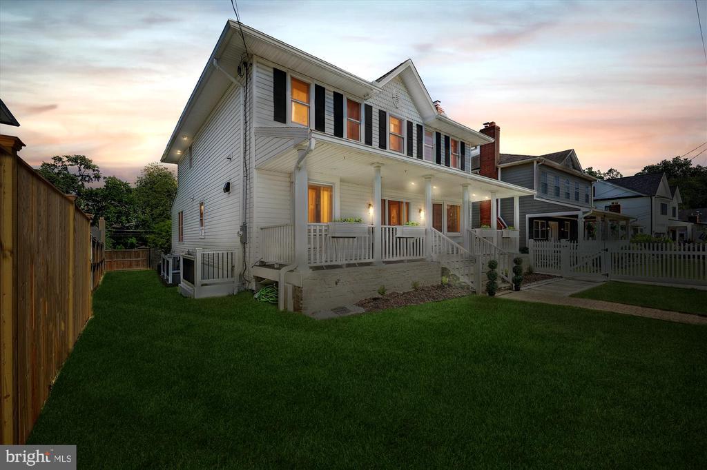 PRICE REDUCED. Storybook transformation into a bright and open 6BR/5BA three-level colonial with old-fashioned front porch and off-street parking in Georgetown Village, only a block away from the elementary school. Following a 2022 expansion/renovation, the home nearly doubled in size, and its floor plan now boasts approximately 4,800 square feet of living area on three levels, including a new in-law/au pair suite on the lower level. Fine craftsmanship, unique design, and quality materials define the showpiece home highlighted by an expansive open kitchen/dining/great room; hardwood flooring throughout the main and upper levels; renovated bathrooms with designer porcelain and ceramic tile; custom painting; upgraded lighting fixtures and recessed lighting; new LVP flooring in the lower level; Andersen windows, new roof and all-new siding.Peaceful outdoor space featuring professional landscape with manicured beds of designer shrubbery, a fenced-in yard with white vinyl picket in the front, and a private sunken patio with access to a storage room. Cobblestone paver walkway and flagstone steps to covered front porch with fieldstone water table, composite decking, beaded ceiling, vinyl railings, and recessed lighting; glass front door with side transoms open to foyer and living room/parlor with wood-burning fireplace and bay window; open concept chef’s kitchen with self-closing white shaker cabinetry with pull-out drawers, quartz countertops, tumbled tile backsplash, white porcelain farm sink with box window ledge, champagne bronze faucet and cabinet hardware, recessed lighting, upgraded appliances, commercial range hood, pantry cabinets and pantry closet; center island breakfast bar with pendant lighting and quartz waterfall countertops opens to informal dining area and great room with tons of windows and rear double French doors; great room with built-in linear electric fireplace, TV above, and a wall of built-in bookshelves; separate exterior side entrance into hallway with coat closet right outside of the main level bedroom/study; renovated main level full bath; solid oak staircase to upper-level hallway with designer chandelier, recessed lighting, and linen closet; glass French door into primary bedroom suite with recessed lighting, separate sitting area with built-in linear electric fireplace, double-door closet and walk-in closet with custom built-in shelving and drawers; primary bathroom renovation in 2025 features 24” x 48” porcelain flooring, double vanity with marble top, clawfoot soaking tub; walk-in shower with designer floor and porcelain tile surround, and separate water closet; three additional upper-level bedrooms with chandeliers and recessed lighting; remodeled hall bath with ceramic tile flooring and tub with porcelain tile wall surround connected to upper-level laundry room with full-size washer & dryer, utility sink, and cabinet storage; finished lower-level of original home with LVP flooring, recreation room and fitness room with full bath; step-down to newly finished in-law/au pair suite with private glass door side entrance; LVP flooring; second laundry hook up for stackable unit; bedroom with recessed lighting and walk-in closet; new porcelain tile full bath with zero-entry curbless walk-in shower; full daylight living room with recessed lighting, linear electric fireplace, full kitchen, and French doors to sunken concrete patio; storage room access from outside patio; three zones of heating and cooling (2018 and 2022), new roof, siding and gutters (2022).