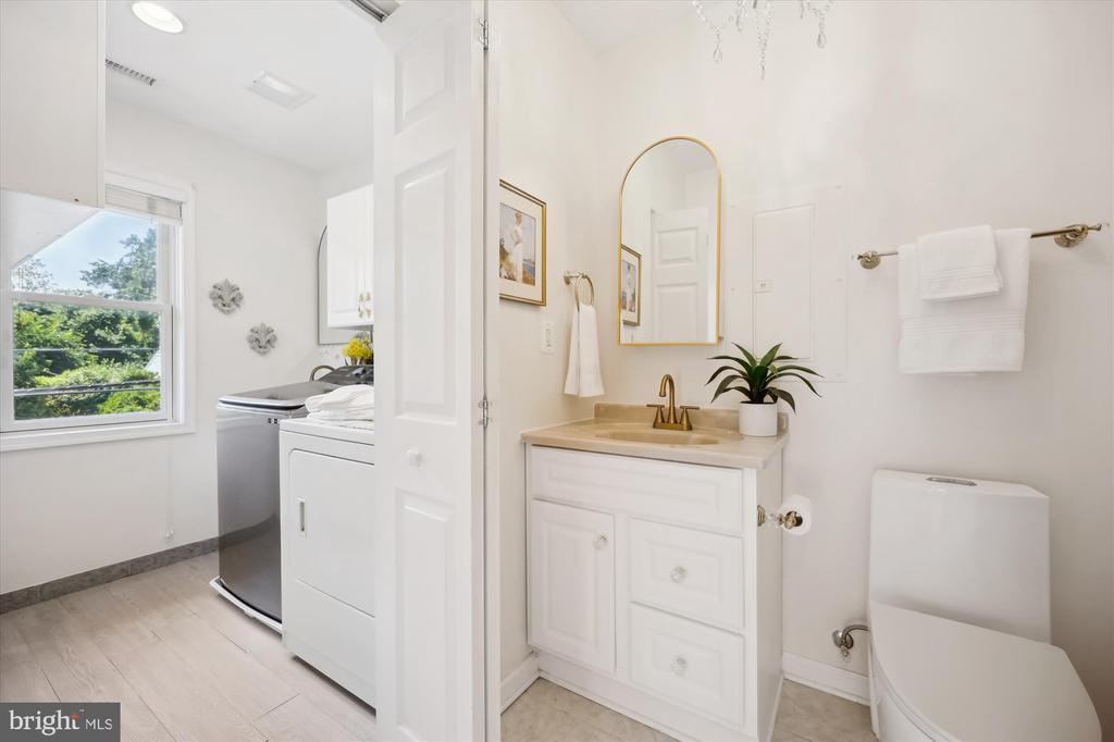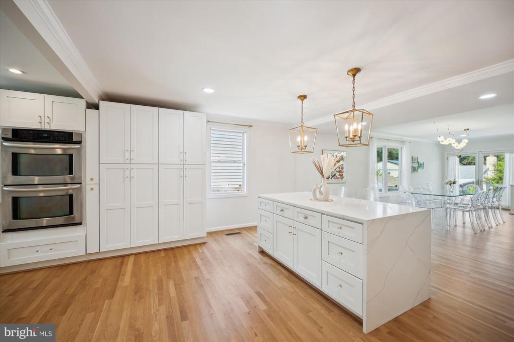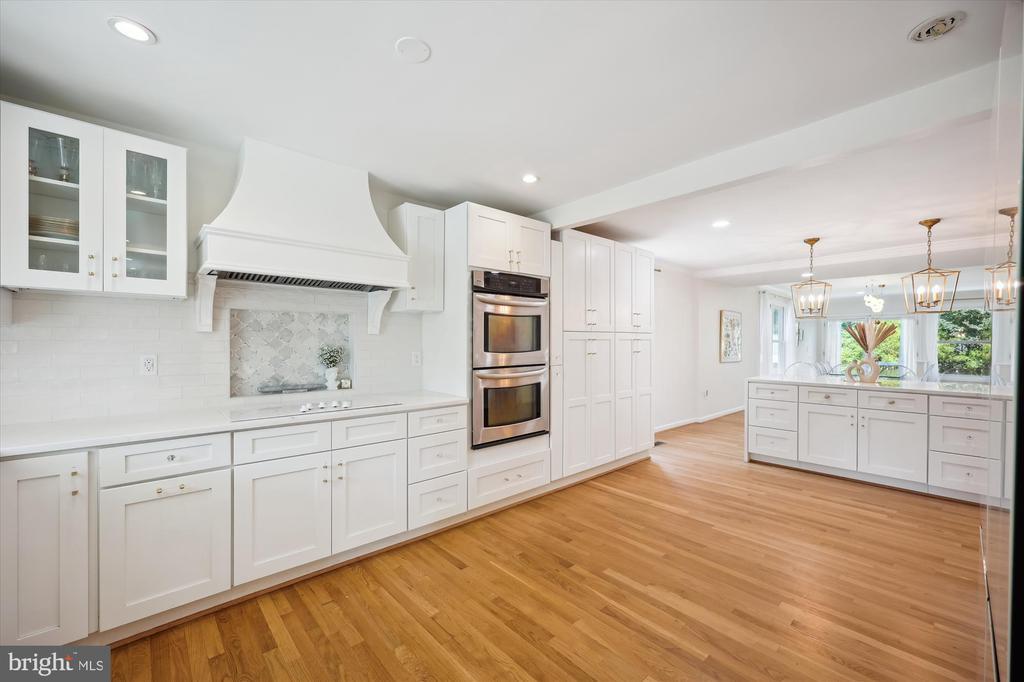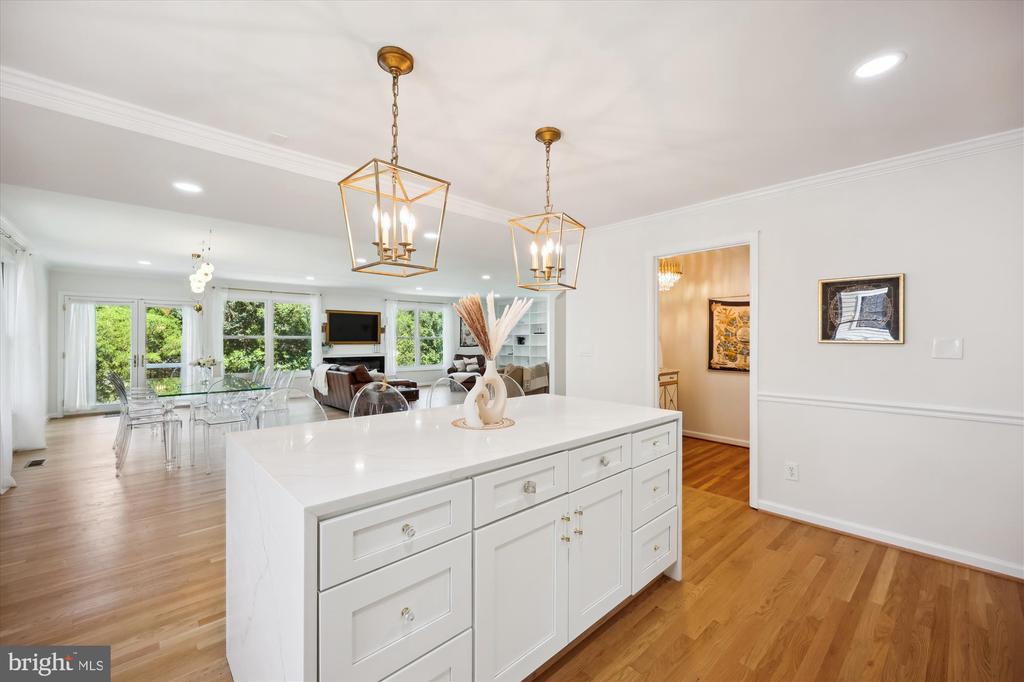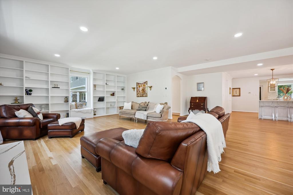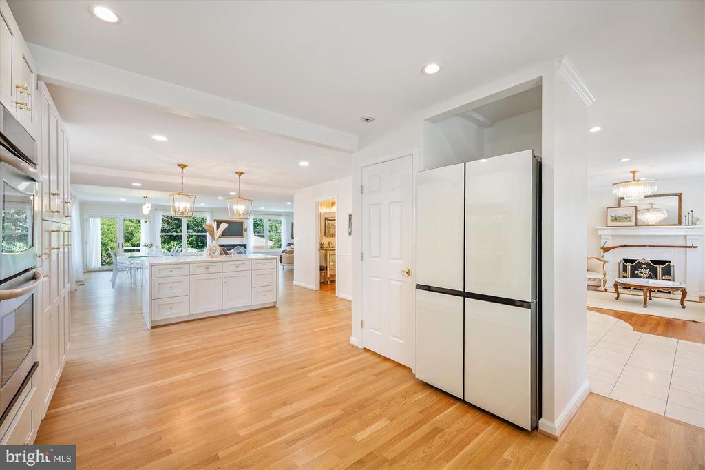 PRICE REDUCED. Storybook transformation into a bright and open 6BR/5BA three-level colonial with old-fashioned front porch and off-street parking in Georgetown Village, only a block away from the elementary school. Following a 2022 expansion/renovation, the home nearly doubled in size, and its floor plan now boasts approximately 4,800 square feet of living area on three levels, including a new in-law/au pair suite on the lower level. Fine craftsmanship, unique design, and quality materials define the showpiece home highlighted by an expansive open kitchen/dining/great room; hardwood flooring throughout the main and upper levels; renovated bathrooms with designer porcelain and ceramic tile; custom painting; upgraded lighting fixtures and recessed lighting; new LVP flooring in the lower level; Andersen windows, new roof and all-new siding.Peaceful outdoor space featuring professional landscape with manicured beds of designer shrubbery, a fenced-in yard with white vinyl picket in the front, and a private sunken patio with access to a storage room. Cobblestone paver walkway and flagstone steps to covered front porch with fieldstone water table, composite decking, beaded ceiling, vinyl railings, and recessed lighting; glass front door with side transoms open to foyer and living room/parlor with wood-burning fireplace and bay window; open concept chef’s kitchen with self-closing white shaker cabinetry with pull-out drawers, quartz countertops, tumbled tile backsplash, white porcelain farm sink with box window ledge, champagne bronze faucet and cabinet hardware, recessed lighting, upgraded appliances, commercial range hood, pantry cabinets and pantry closet; center island breakfast bar with pendant lighting and quartz waterfall countertops opens to informal dining area and great room with tons of windows and rear double French doors; great room with built-in linear electric fireplace, TV above, and a wall of built-in bookshelves; separate exterior side entrance into hallway with coat closet right outside of the main level bedroom/study; renovated main level full bath; solid oak staircase to upper-level hallway with designer chandelier, recessed lighting, and linen closet; glass French door into primary bedroom suite with recessed lighting, separate sitting area with built-in linear electric fireplace, double-door closet and walk-in closet with custom built-in shelving and drawers; primary bathroom renovation in 2025 features 24” x 48” porcelain flooring, double vanity with marble top, clawfoot soaking tub; walk-in shower with designer floor and porcelain tile surround, and separate water closet; three additional upper-level bedrooms with chandeliers and recessed lighting; remodeled hall bath with ceramic tile flooring and tub with porcelain tile wall surround connected to upper-level laundry room with full-size washer & dryer, utility sink, and cabinet storage; finished lower-level of original home with LVP flooring, recreation room and fitness room with full bath; step-down to newly finished in-law/au pair suite with private glass door side entrance; LVP flooring; second laundry hook up for stackable unit; bedroom with recessed lighting and walk-in closet; new porcelain tile full bath with zero-entry curbless walk-in shower; full daylight living room with recessed lighting, linear electric fireplace, full kitchen, and French doors to sunken concrete patio; storage room access from outside patio; three zones of heating and cooling (2018 and 2022), new roof, siding and gutters (2022).