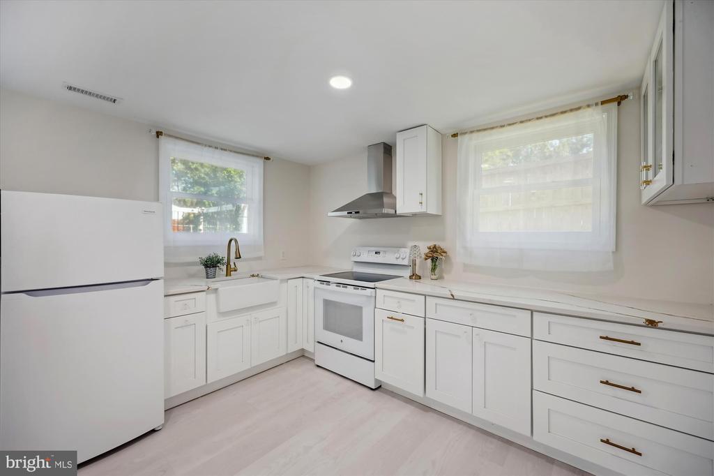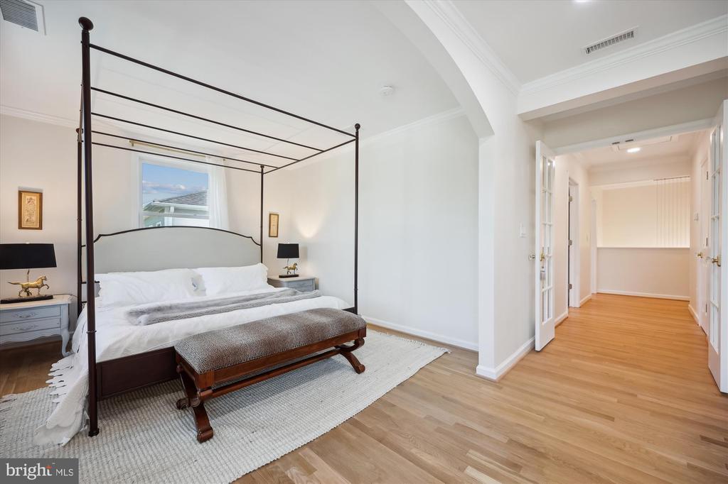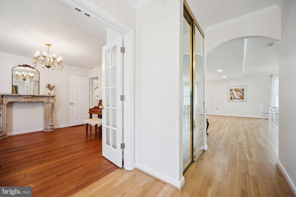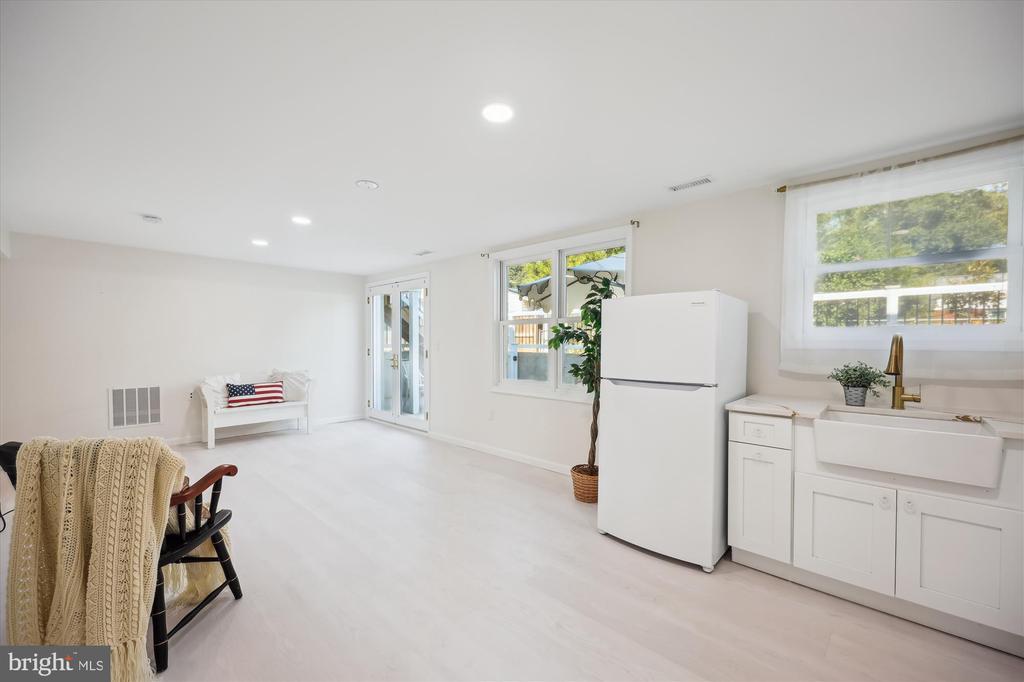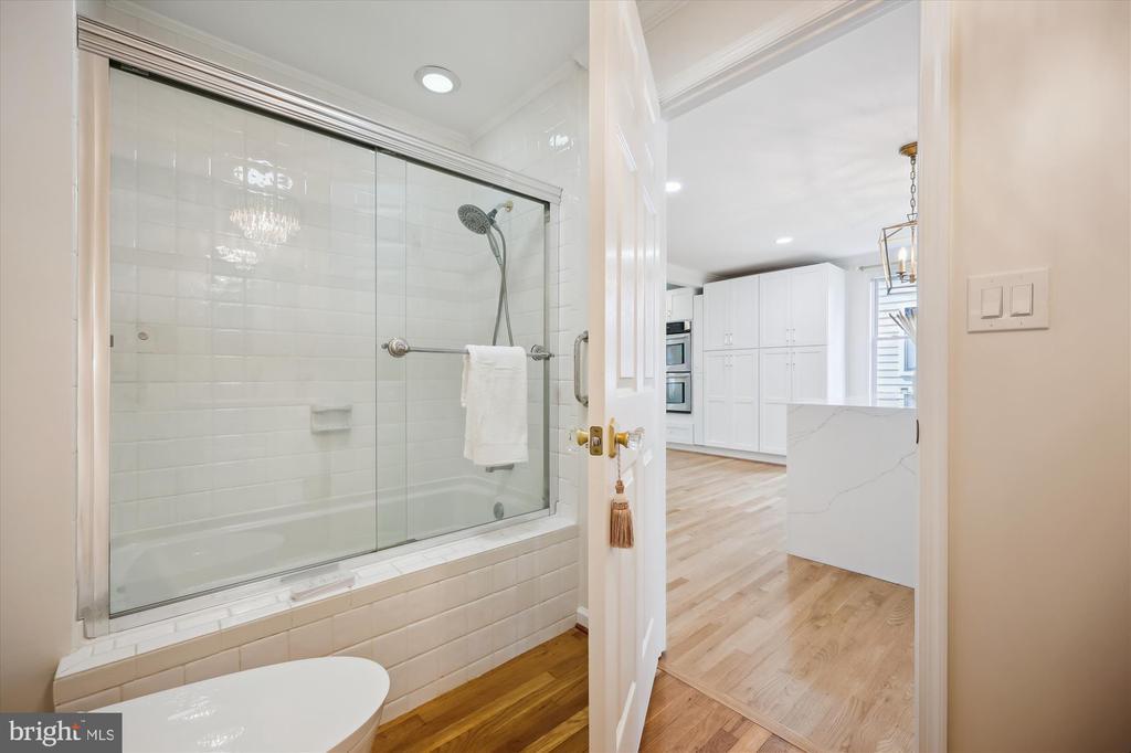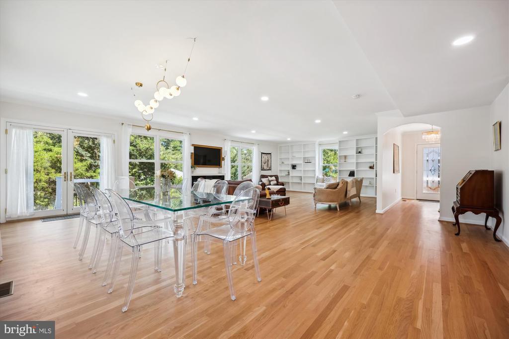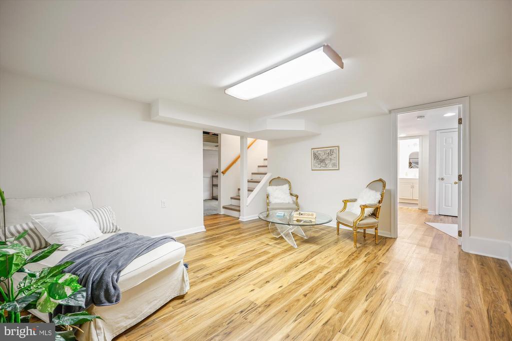 PRICE REDUCED. Storybook transformation into a bright and open 6BR/5BA three-level colonial with old-fashioned front porch and off-street parking in Georgetown Village, only a block away from the elementary school. Following a 2022 expansion/renovation, the home nearly doubled in size, and its floor plan now boasts approximately 4,800 square feet of living area on three levels, including a new in-law/au pair suite on the lower level. Fine craftsmanship, unique design, and quality materials define the showpiece home highlighted by an expansive open kitchen/dining/great room; hardwood flooring throughout the main and upper levels; renovated bathrooms with designer porcelain and ceramic tile; custom painting; upgraded lighting fixtures and recessed lighting; new LVP flooring in the lower level; Andersen windows, new roof and all-new siding.Peaceful outdoor space featuring professional landscape with manicured beds of designer shrubbery, a fenced-in yard with white vinyl picket in the front, and a private sunken patio with access to a storage room. Cobblestone paver walkway and flagstone steps to covered front porch with fieldstone water table, composite decking, beaded ceiling, vinyl railings, and recessed lighting; glass front door with side transoms open to foyer and living room/parlor with wood-burning fireplace and bay window; open concept chef’s kitchen with self-closing white shaker cabinetry with pull-out drawers, quartz countertops, tumbled tile backsplash, white porcelain farm sink with box window ledge, champagne bronze faucet and cabinet hardware, recessed lighting, upgraded appliances, commercial range hood, pantry cabinets and pantry closet; center island breakfast bar with pendant lighting and quartz waterfall countertops opens to informal dining area and great room with tons of windows and rear double French doors; great room with built-in linear electric fireplace, TV above, and a wall of built-in bookshelves; separate exterior side entrance into hallway with coat closet right outside of the main level bedroom/study; renovated main level full bath; solid oak staircase to upper-level hallway with designer chandelier, recessed lighting, and linen closet; glass French door into primary bedroom suite with recessed lighting, separate sitting area with built-in linear electric fireplace, double-door closet and walk-in closet with custom built-in shelving and drawers; primary bathroom renovation in 2025 features 24” x 48” porcelain flooring, double vanity with marble top, clawfoot soaking tub; walk-in shower with designer floor and porcelain tile surround, and separate water closet; three additional upper-level bedrooms with chandeliers and recessed lighting; remodeled hall bath with ceramic tile flooring and tub with porcelain tile wall surround connected to upper-level laundry room with full-size washer & dryer, utility sink, and cabinet storage; finished lower-level of original home with LVP flooring, recreation room and fitness room with full bath; step-down to newly finished in-law/au pair suite with private glass door side entrance; LVP flooring; second laundry hook up for stackable unit; bedroom with recessed lighting and walk-in closet; new porcelain tile full bath with zero-entry curbless walk-in shower; full daylight living room with recessed lighting, linear electric fireplace, full kitchen, and French doors to sunken concrete patio; storage room access from outside patio; three zones of heating and cooling (2018 and 2022), new roof, siding and gutters (2022).