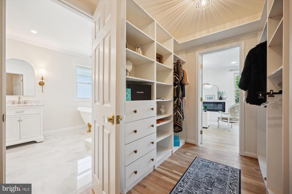 Soaking Tub, Tub Shower, Bathroom - Walk-In Shower, Built-Ins, Crown Molding, Entry Lvl BR, Pantry, Master Bath(s), Recessed Lighting, Upgraded Countertops, Walk-in Closet(s), Shades/Blinds, Wood Floors