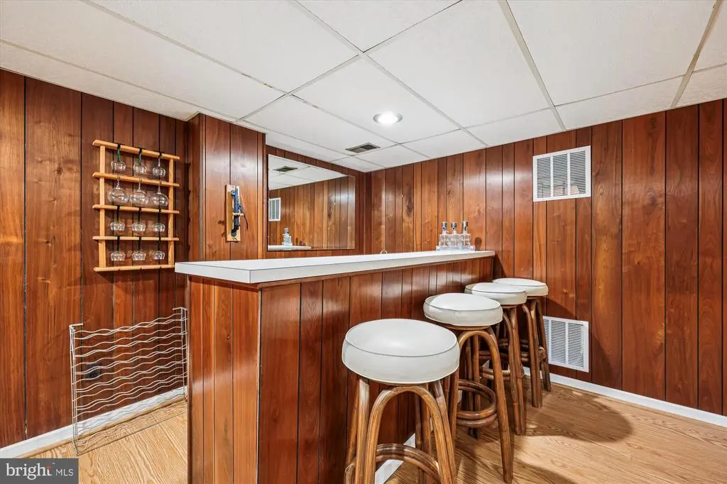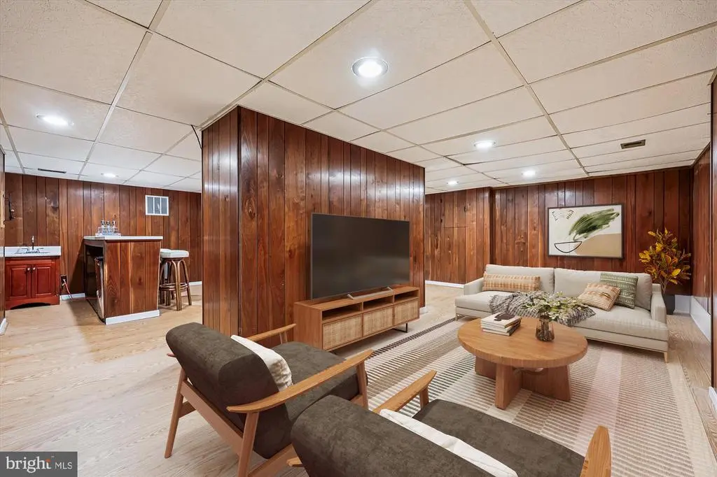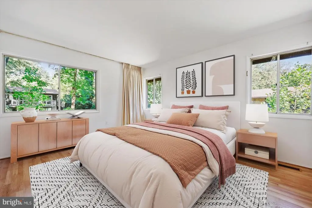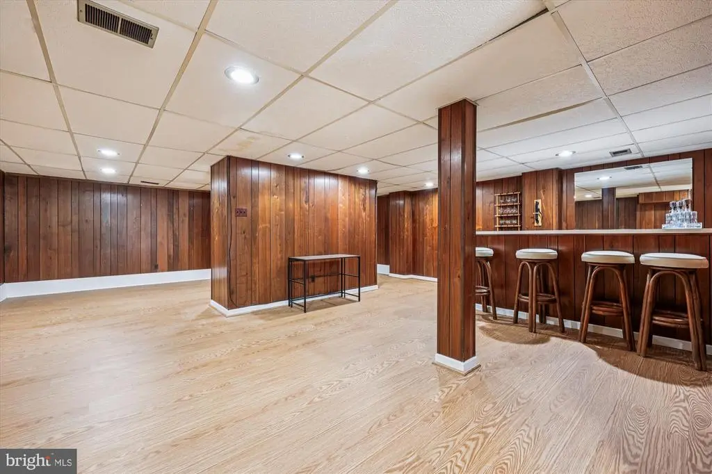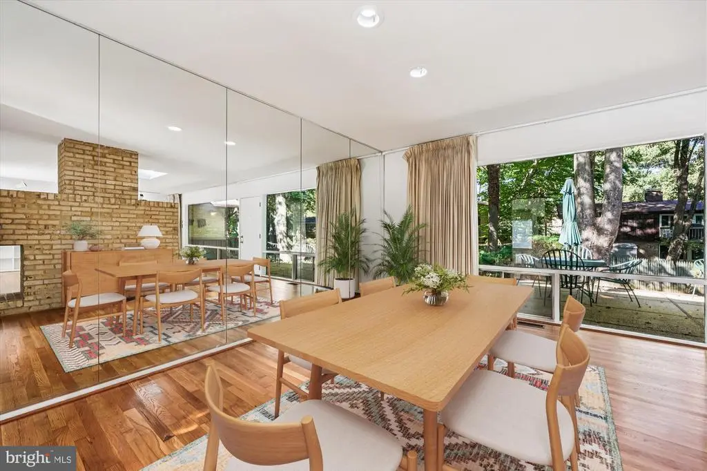 HUGE Price Adjustment! Welcome Home to this Deigert & Yerkes Mid-Century Modern beauty! This home was lovingly designed to harmonize with nature with expertly curated plantings. Its floor-to-ceiling walls of windows lend natural light, perfect for your own stunning art gallery! This property has a fully finished lower level instead of a crawl space. This is unique to the MCM models in this neighborhood and nearly doubles the square footage! Most of the MCMs of this model in this neighborhood only have a crawl space. This property additionally has fully finished bar and media/game rooms in the lower level. FEATURES & AMENITIES • 4 bedrooms, 3 full baths • Expansive tandem garage with garage door opener, keypad and storage area • Welcoming foyer with spacious guest closet and the classic Mid-Century Modern floor-to-ceiling windows • Spacious, sun-filled living room with skylight and custom built-in shelving, white oak hardwood floor, brick wood-burning fireplace, wall of floor- to-ceiling windows with vista views of the scenic rear gardens and access to the rear deck, perfect for relaxing and entertaining • Dining room with hardwood floor banked by a wall-sized mirror to reflect the floor-to-ceiling windows, sun-filled views of the vacation-like rear wooded grounds and patio • Spacious gourmet kitchen features a vaulted ceiling with sun-filled skylight, stainless steel appliances, and today’s popular white cabinets with peninsula to breakfast area with easy-care laminate wood floor • The expansive patio runs right off the living and dining rooms, perfect for entertaining and relaxing • The private primary bedroom suite, and updated en suite marble garden shower bath with sumptuous modern vanity and fixtures, including a privacy door to its own hallway with two large double-door closets with designer organizers and hardwood floor, looks out to the rear gardens and wooded lot, in keeping with the naturally designed peaceful setting • Two additional large upper level bedrooms feature spacious closets, hardwood floor and large sun- filled windows • Updated hall ceramic bath with large ceramic tub, and fully appointed double-door hall linen closet with shelving • Lower level is a suite, perfect for in law/au pair/ AirBnB • Lower level family room boasts new luxury vinyl flooring, lighting, as well as floor-to-ceiling windows and independent access to the side yard • Additional 4th lower level bedroom, new luxury vinyl flooring, and sun-filled windows with en suite ceramic shower bath • 3rd full ceramic shower bath in lower level with door to hall and 4th bedroom • Amazing recreation media game room with bar is perfect for revitalizing, entertaining, and relaxing with family and friends • Separate laundry/utility, workshop/storage rooms with direct outside access to the side yard HOME IMPROVEMENTS: 2025 • Entire interior painted • Solid white oak wood floors refinished • Foundation repaired at front and rear of home • New vanity installed in primary bedroom en suite bath 2024 • New laminate wood kitchen floor installed 2021 • Lower level renovation with new luxury vinyl plank flooring 2019 • New HVAC installed 2018 • New roof installed