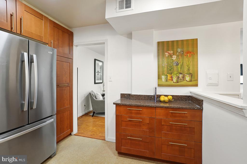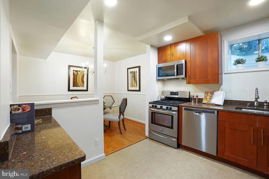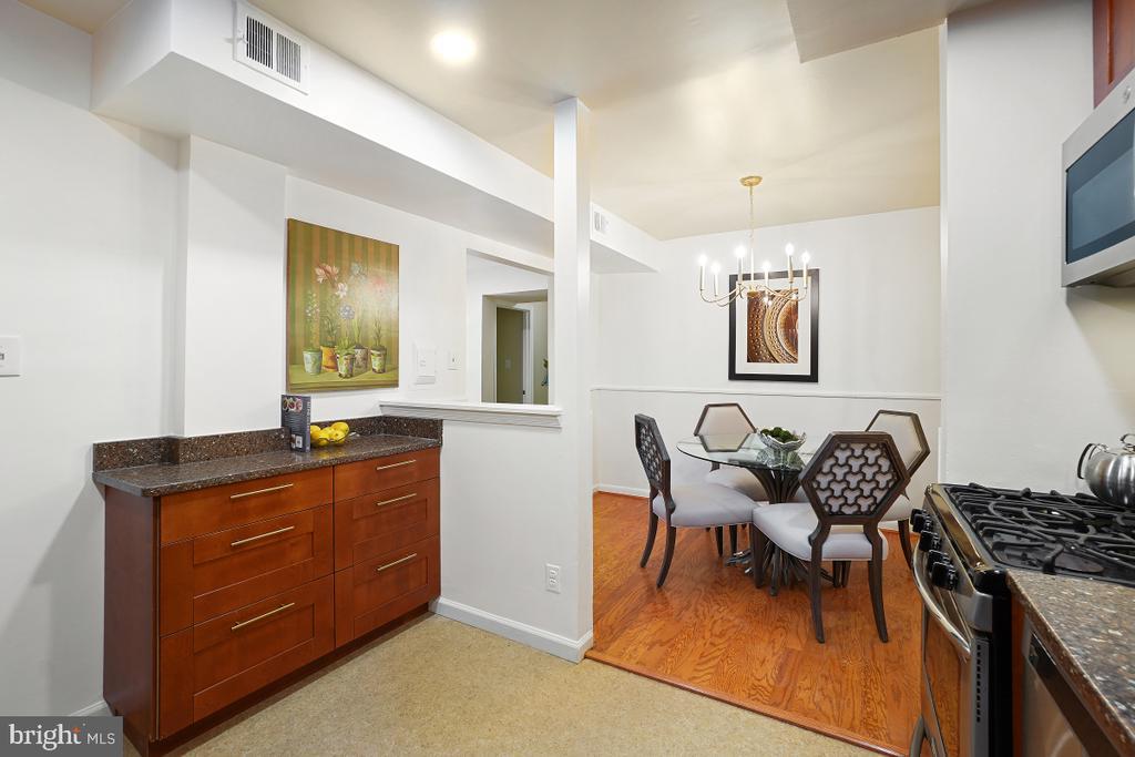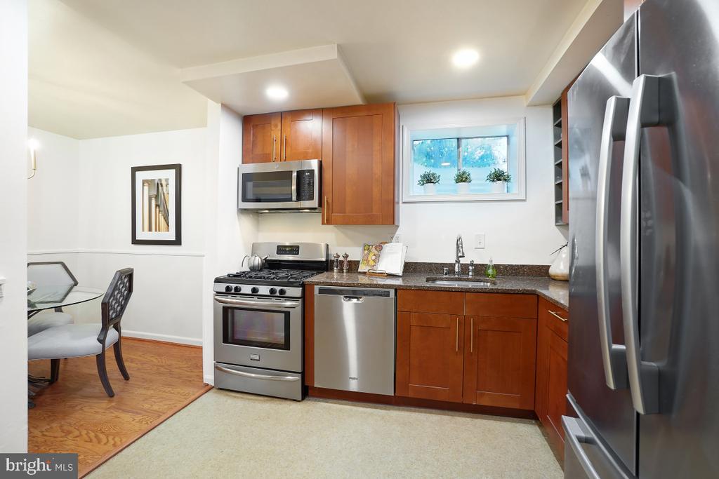$20,000 Price Improvement and Silver Spring was just named among Travel + Leisure's "Best Places to Live on the East Coast."! Nestled in a serene, tree-lined corner of Woodside Village, this delightful and enormous two-bedroom, two-bath garden condo offers over 1,218 square feet of stylish living space. Upon arrival, you’ll be welcomed by a spacious double patio, perfect for enjoying morning coffee or unwinding with an evening glass of wine. Inside, natural light pours in through a stunning wall of windows, illuminating the freshly painted interior and gleaming wood floors throughout, as well as the brand-new recessed lighting and fixtures! The fully updated kitchen is a true showstopper, featuring luxurious granite countertops, sleek stainless steel appliances, and custom cabinetry highlighted by a practical pull-out custom pantry. The expansive primary bedroom suite easily fits a king-sized bed, and boasts a large ensuite bath with dressing area featuring custom closet organizers with a stylish granite vanity with dual sinks, chrome pivot mirrors and a separate glass-enclosed shower. A generous second bedroom and hall bathroom add extra comfort. The laundry room provides ample storage space and includes a washer/dryer for added convenience. This unit also comes with an additional separate storage unit! With LOW CONDO FEES, you'll love the easy commute! - Just minutes from both Silver Spring and Forest Glen Metro stations and conveniently located near the DC line! Don't miss your chance to see this beauty!