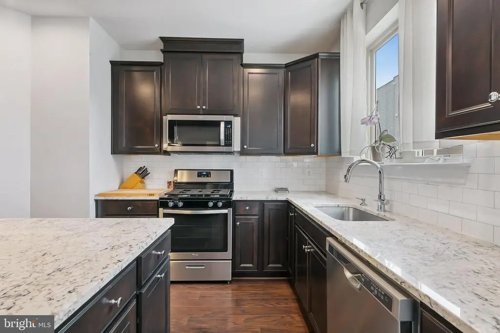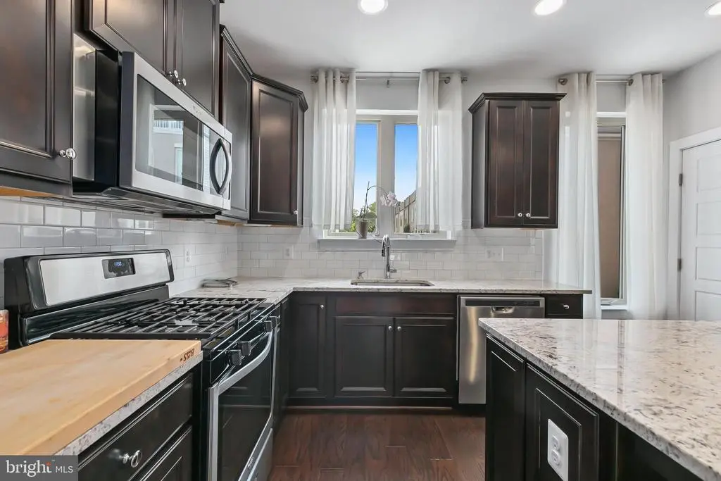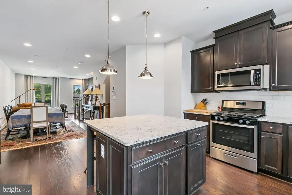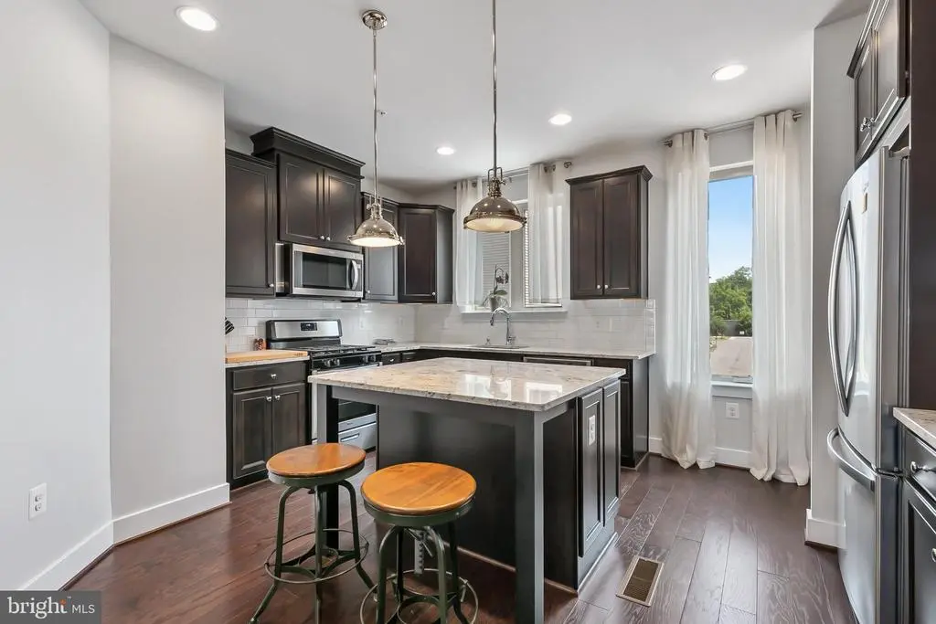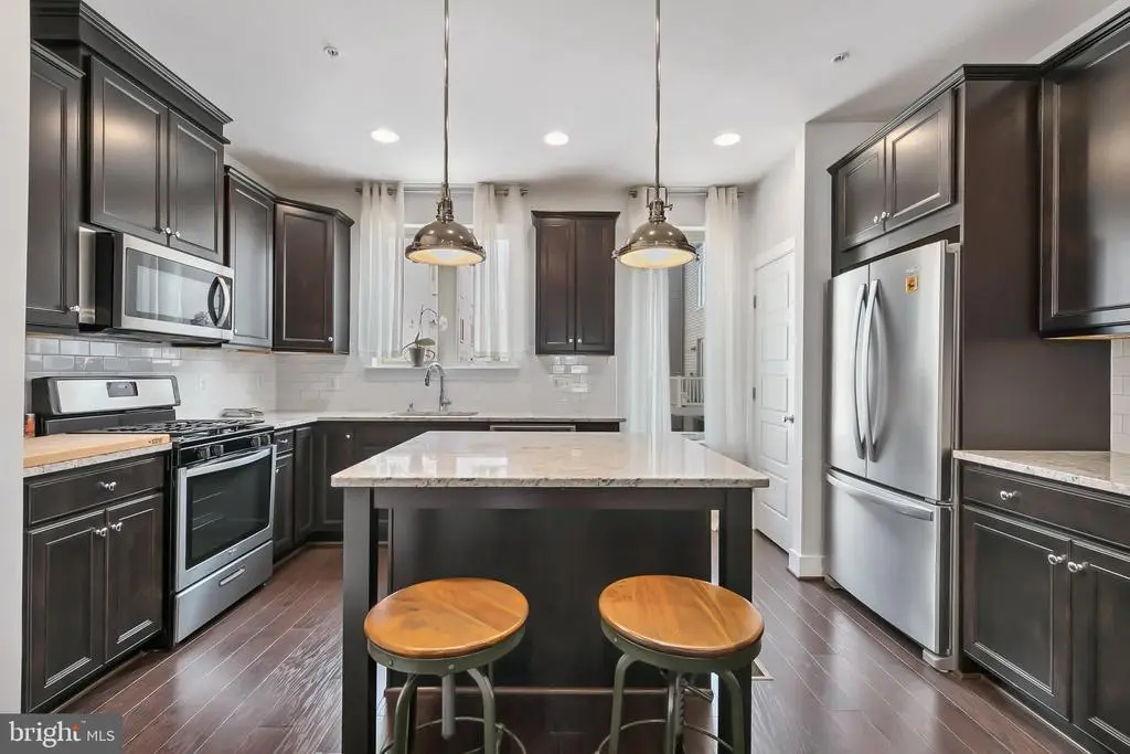 Live Where It All Connects — Suburban Comfort Meets Urban Access! Park in your private driveway and make your way to the welcoming front entrance of this stunning 3 bedroom, 5 bath townhome on four levels, located in the sought-after Chapman Row community. Tucked into a highly connected Rockville location near the brand new Wegmans supermarket, tons of other retail options, dining hotspots, major roads, and the Twinbrook Metro, this home offers the perfect blend of lifestyle and convenience. The entry level welcomes you with a flexible bonus space — ideal for a home office, workout zone, or guest area — complete with a half bath and direct access to the garage. Head upstairs to a bright and airy main living floor, where an open layout combines modern style with everyday function. The upgraded kitchen showcases quartz countertops, stainless steel appliances, under-cabinet lighting, beautiful hardwood flooring, and a central island perfect for gathering. A sliding door leads to a charming deck — great for morning coffee or evening grilling. The beautiful hardwoods also extend into the cozy living area, which includes a sleek gas fireplace, along with an additional powder room for guests. Upstairs, both spacious bedrooms offer gleaming hardwood floors and their own en-suite baths and large closets, while a full-size washer and dryer add everyday convenience. The top level features a sun-filled loft with hardwood flooring — a perfect nook for reading, working, or play — that opens to a rooftop terrace where you can relax or entertain under the stars and this level includes a 3rd bedroom. also with gleaming hardwoods. This home also includes a 1-car garage and a partially covered driveway to accommodate a second vehicle. Plus, water is included in the monthly condo fee and guest parking is available in the community on a first-come/first-serve basis. This townhome shows beautifully and is move-in ready. Don’t miss this rare chance to own in one of Rockville’s most desirable new communities!