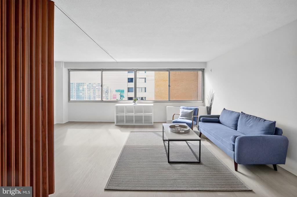 Welcome to Unit 1712N at The Willoughby—one of the largest Junior 1-bedroom layouts in the building. This sun-filled home features expansive windows showcasing beautiful city views and a flexible, open layout perfect for comfortable living. ASSIGNED GARAGE PARKING SPACE INCLUDED IN SALES PRICE! Located on the 17th floor of The Willoughby, this sunny Junior 1-bedroom offers expansive city views, abundant natural light, and a flexible layout perfect for both everyday living and entertaining. The open living and dining space flows into a kitchen, while large windows frame sweeping vistas that bring in a sense of space and calm. Located in the heart of Friendship Heights, The Willoughby offers top-notch amenities including 24/7 concierge, a rooftop deck, fitness center, library, outdoor pool, and on-site market.