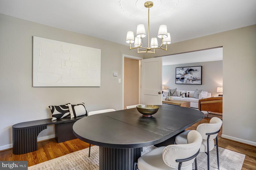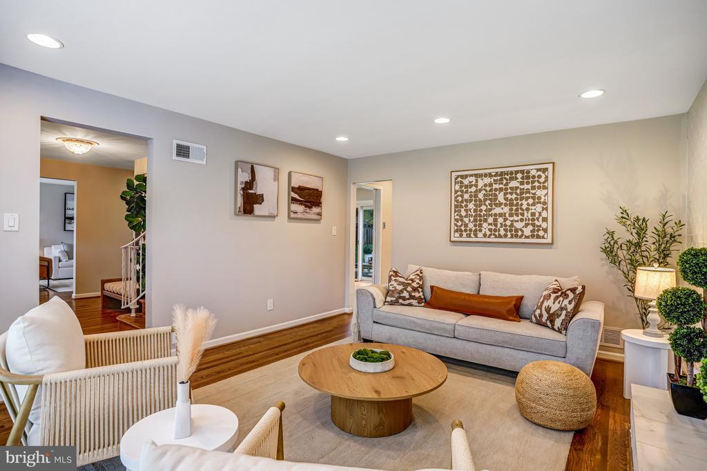 IMPROVED PRICE! The Best Value in Kenwood Park! Welcome to this updated and move-in ready classic Colonial home located in the sought-after Kenwood Park neighborhood of Bethesda. This elegant, stately and sun-drenched home offers comfortable and easy living with its 4 bedrooms (3 brs upstairs, 4th br/den in the lower level), 3.5 bathrooms, large gathering spaces, and secluded backyard perfect for outdoor fun. Step through the carved-wood double entry doors to discover a gracious and welcoming entry foyer, an oversized living room, a freshly updated powder room, an elegant dining room with new lighting and a sliding door to the patio, and a cozy family room with a brick wood burning fireplace. The main floor layout flows perfectly for indoor-to-outdoor entertaining. The updated kitchen features a large island, quartz counters, stainless steel appliances, timeless subway-tiled backsplash, and ample storage. This area will be a favorite gathering spot with its adjoining sunroom/breakfast room that also leads to the back yard. As practical as it is lovely, the kitchen leads to a separate laundry room/mudroom with access to the large one-car garage, making it a perfect drop zone when coming home each day. The upper level features a large primary suite, offering an enviable walk-in closet and an oversized en suite bath with an extra large separate shower, huge soaking tub, a separate water closet, and double vanities. The secondary bedrooms are also large with great closets and share the updated hall bath. Gleaming oak hardwood floors grace both the main and upper levels. The lower level features an expansive recreation/family room with new LVP flooring, new windows, recessed lighting, cedar closets, and a basement door to the exterior. The 4th bedroom and the updated 3rd bath round out this level, along with a spacious utility/storage room. Outside, a large, fully-fenced backyard with a large patio offers a secluded oasis for outdoor activities and al fresco dining. There's plenty of parking with a large one-car garage (with a brand new garage door opener), a carport that runs along the entire side of the house, and parking for 2-3 additional cars. Ideally located in close-in Bethesda, you'll find yourself only moments away from Bethesda's Downtown with its innumerable dining and shopping venues. Commuting is a breeze with quick access to the Beltway and a fast commute to Downtown DC. Located inbounds to (and a short walk away from) Walt Whitman HS and Pyle Middle School. Don't miss this special home! (Note: Photos reflect when home was staged.)