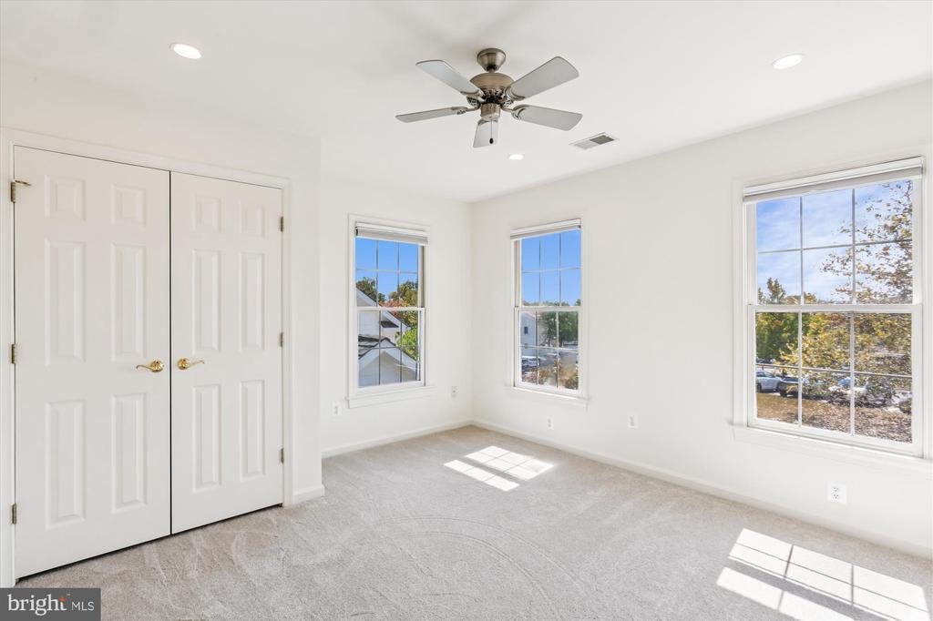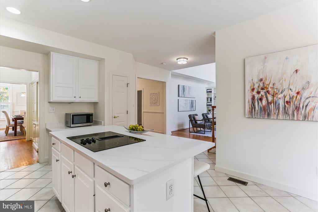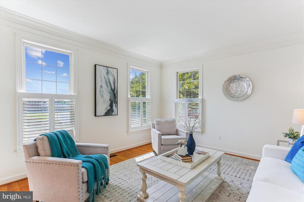This beautifully designed Kentlands home offers spacious living and beautiful updates throughout. Hardwood floors flow through the main level, from the formal living room and elegant dining room—both featuring crown and chair rail moldings, shutters, and decorator lighting and into the inviting family room. Here, a gas-burning fireplace is flanked by custom built-ins, and a dramatic two-story wall of windows offers a view to the deck and upper-level overlook. The kitchen features wood cabinetry, a large central island with cooktop, stainless steel appliances, recessed lighting, and a sunny breakfast area. A double window provides ample light, while a French door leads directly to the deck—perfect for everyday living and entertaining. The adjacent butler’s pantry and breakfast area are finished with tile flooring and elegant moldings. The main level also includes a renovated powder room with a furniture-grade vanity and decorator fixtures, a private office with tray ceiling, and a spacious mudroom/laundry area with built-in cabinetry, shelving, and garage access. The attached garage includes a newer door and pull-down attic access. Upstairs, the expansive primary suite showcases a vaulted ceiling, a generous sitting area, two walk-in closets, and a vestibule with updated lighting. The en-suite bath includes a jetted soaking tub, dual-sink vanity, glass-enclosed shower, and compartmented WC. Three additional large bedrooms offer recessed lighting, double-door closets, and ceiling fans, and share a second full bath with a tub/shower, compartmented WC, and a double-door linen closet. The finished lower level provides exceptional bonus space with a versatile rec/media/game room, a den/bonus room with recessed lighting, and a full bath with updated fixtures. A light-filled bonus room with walk-up access adds additional flexibility, ideal for a craft room or fitness area. The workshop offers even more functionality. Additional features include a 2019 roof, updated HVAC (2022/2023), a newer water heater, and a Nest system. The deck and landscaped outdoor areas enhance the home's appeal, offering comfortable spaces for outdoor living. With abundant daylight even in the basement, this home feels bright and spacious on every level. In a prime location, this home provides quick access to Rachel Carson Elementary School, nearby parks and playgrounds, the exceptional Kentlands recreation facilities, and the vibrant Kentlands Downtown with countless dining, shopping, and entertainment options. Newly updated carpet on second floor.
