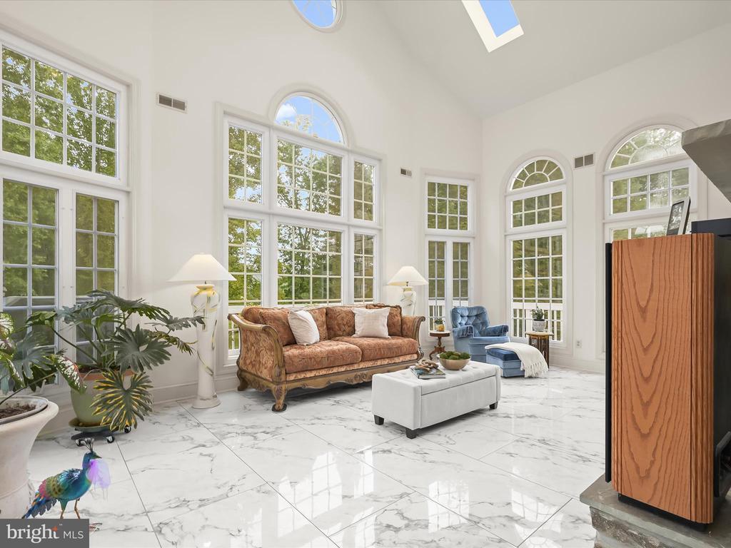 HUGE RECENT UPGRADES-Goshen Valley is a well-kept secret with gorgeous homes 10 mins from the best shops in Montgomery Co at Milestone/Neelsville Center, I- 270, the MARC Train & GREAT Medical Care. The school system is a major draw w/a variety of options, including nearby Montgomery College & was voted #1 Most Diverse City In America. Restaurants, parks & outdoor amenities abound. Goshen Valley Dr is a beautiful street w/overreaching, shading oaks. Children ride bikes on a cul-de-sac & friendly neighbors chat taking walks. At 9117, a magnificent French colonial ivory brick mansion, with $600,000 OF NEW IMPROVEMENTS, incl. NEW KITCHEN, NEW ROOF, SKYLIGHTS, WINDOWS, DOORS, & LENNOX GAS FURNACE & NEWLY INSTALLED 3 TON CARRIER GAS FURNACE, 73 GL WATER HEATER & 2 ELECTRICAL PANELS IN THE GARAGE WITH A CONNECTION FOR A GENERATOR. With 2 large wings, the house sits impressively on the highest hill, from a 3-car garage to the 2-story entrance w/a marbleized porcelain tile floor. To the right, the living room has the 1ST Of 6 Fireplaces & hand-blown sconces lighting wainscoted walls & NEW HARDWOOD FLOORS. To the left is the dining rm & 2ND Fireplace, similar sconces & wainscoting. A curved staircase sees the 3RD Fireplace from above & new family rm w/3 skylights & bar cabinet. The chef’s dream kitchen w/all highly rated GE Monogram appliances has two 8 ft islands lit by 4 Tiffany-style chandeliers & all counters have rare Azul Bahia granite. The prep island w/a sink is conveniently next to the GE Monogram fridge/freezer, three 9 ft x 24” wide x 24” deep Kraft-Maid solid wood pantries & sturdy roll-out drawers. Beyond which are a10 ft mirrored coat closet, & wall cabinets. Across is a mudroom w/one of 3 washer/dryers & 2nd powder room (the first is off the entry hall). The kitchen's second island has a GE Monogram cooktop, retractable downdraft, warming drawer & solid wood Kraft-Maid soft-close drawers & dovetail corners for heavy pots & pans, & 2 two-tiered cutlery drawers. A fan sits in a tray ceiling w/hand stenciling. A whisper-quiet dishwasher & wall microwave/baking oven over a convection oven, also GE Monograms, & 2 Fisher Paykel crystal washers. The main sink & breakfast nook look out at a 27 SF deck. The solarium seen through high windows from the family rm features a 4TH Fireplace, four skylights, & three walls of tall arched windows. Multiple flowering trees & forest beyond provide privacy. The extensive first-floor primary bedroom suite has the 5TH Fireplace & new hardwood flooring; Double doors open to the extensively mirrored primary bathroom w/two 12-foot long sink counters NEWLY REFINISHED WHITE CABINETS & large central jacuzzi. To the right & left are two 10 ft walk-in closets, shower room with a stacking 2ND WASHER/DRYER & a toilet room with a bidet. A library with NEW HARDWOOD FLOORS, built-in bookcases on three walls, on the fourth wall a 7 ft picture window. UPSTAIRS THE FOUR LARGE BEDROOMS ALL HAVE NEW CARPETING, two full baths, All NEWLY REFINISHED WHITE CABINETS, one with a skylight & 3RD WASHER/DRYER. The enormous walkout fully finished lower level offers maximum versatility & functionality, perfect for multi-generational/au pair possibilities, with a sixth bedroom, second kitchen, TV wall with reclining chairs, hardwood floors, wainscoted walls, & the 6TH Fireplace across from the bedroom that looks out a picture window to the backyard. There is a carpeted exercise room or playroom w/a tropical mural, alongside the 4th full bathroom. Two pairs of French doors separate these rooms from a large party room, complete w/full kitchen. Three sets of glass French doors lead out to a "slate patio" & the backyard. Two large storage rooms round out the lower level. House & deck have 2x12 beams/joists, with French drains around the foundation providing maximum water & moisture prevention. All it needs is YOU! Click Documents Tab for All Upgrades