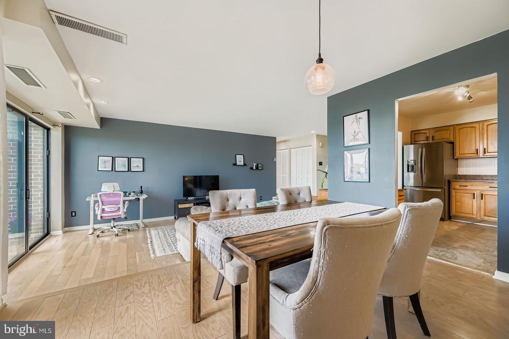 Welcome home to the most updated and best valued condo in Silver Spring! Have you been dreaming of an expansive and stunning turn-key, top floor condo, in a building with an elevator? Want to be close to all of the Silver Spring happenings, metro, DC and more? Then this is the home for you! The moment you arrive, you'll appreciate the expansiveness of this community and ample parking. As you walk through the doors of your new condo, the bright, open and airy feeling will catch your eye. Off of the foyer flows the large sunken living room with beautiful modern wood flooring and never-ending space. It's the perfect place to relax after a long day, or even to use as a flex space for working from home! The over-sized kitchen boasts granite counters, never-ending cabinetry, a coffee bar/built- in desk area, modern lighting, updated appliances & cabinetry and so much more. This is truly the perfect kitchen to prepare meals for yourself and loved ones. The large dining room has plenty of room for your favorite people and favorite dining room set. One of the incredible features of this condo are the priceless views from the dining room, living room, balcony and bedroom! The balcony offers you space to take in the beautiful skyline views, read your favorite book, or to have a glass of coffee or wine. Down the hall a large updated full bathroom awaits. And last yet certainly not the least, the large owner's suite features plush carpeting, beautiful views and an extraordinary walk-in closet. This condo has everything and more you've dreamed of. The community offers a rarely available dog park, large community pool, tennis courts, tot-lots, basketball and more!Laundry facilities are on each floor and free of charge. Tons of parking! Also a great rental opportunity for investors. This condo will not last long. Schedule your showing today.