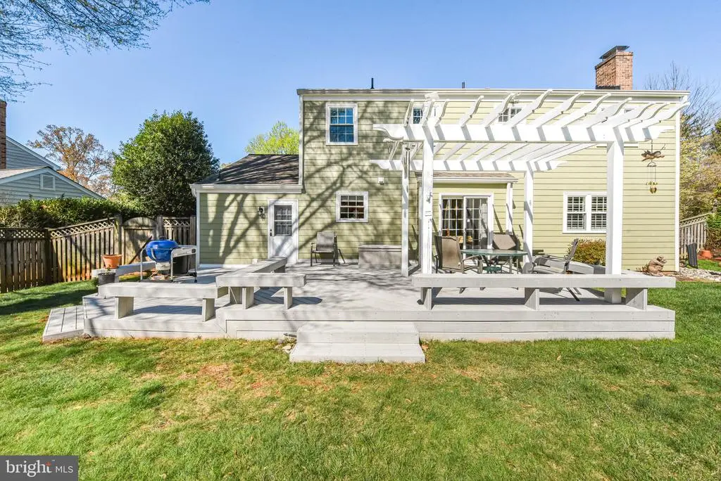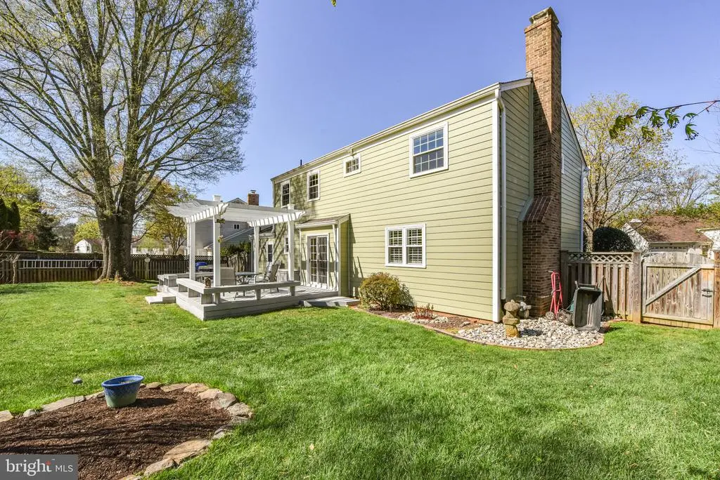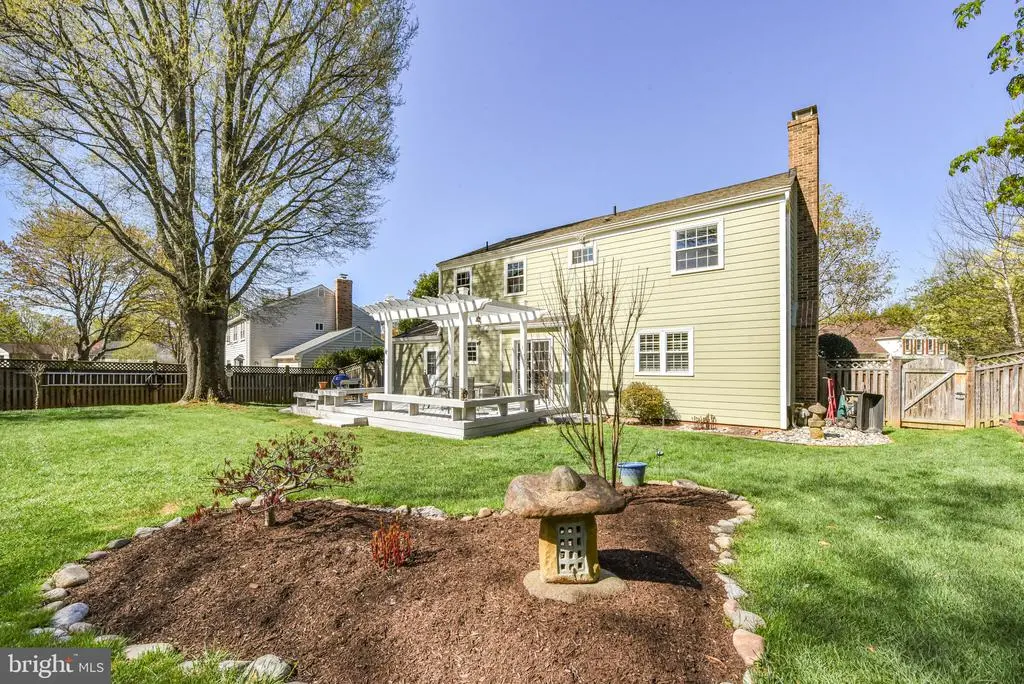 Welcome to this meticulously maintained Center Hall Colonial, where classic elegance meets modern comfort. The main level features stunning wood floors that flow seamlessly throughout. The spacious living room is complemented by oversized Anderson windows with tasteful plantation shutters, which also grace the formal dining room, enhancing its charm. The heart of this home is its beautiful kitchen, boasting Silestone countertops, stainless steel appliances, and custom solid cherry cabinetry, including a stylish glass-front cabinet. The kitchen opens up to a warm and inviting family room with a cozy brick-surround fireplace, built-in shelving, and plantation shutters. Enjoy your morning coffee in the breakfast nook or step through the sliding glass door to the deck and backyard, perfect for entertaining. Conveniently located off the kitchen, the laundry room, equipped with built-in shelving, provides access to both the garage and the backyard. Upstairs, discover four generously sized bedrooms, including a primary suite that offers a walk-in closet with custom organizers and a renovated dressing area. All bedrooms are carpeted, with hardwood flooring beneath the carpet. The en suite bathroom features quartz-topped vanities and marble flooring. The hall bath showcases a shower/tub combination, porcelain tile flooring, and a quartz-topped vanity. The renovated lower level is an entertainer's dream, featuring LVP flooring, a wet bar with granite counters and a wine refrigerator, recessed lighting, and a bonus room with a built-in workbench, currently serving as an office or workspace. Additionally, there is a large walk-in cedar closet for ample storage. Pull-down attics on both the bedroom level and the garage provide additional storage space. Step outside to the crown jewel of this property -- a beautifully landscaped yard with a large deck, complete with built-in bench seating and a pergola, perfect for outdoor gatherings and relaxation. This home is a true gem, offering a blend of sophistication and comfort. Conveniently located just off Falls Road, this home is just a short distance to 270, 495 and Potomac Village. The Country Glen Swim & Tennis Club is less than 1 mile away.