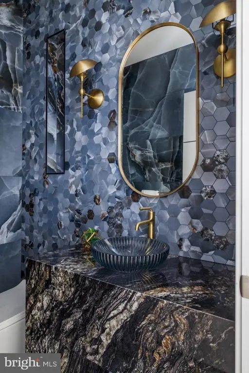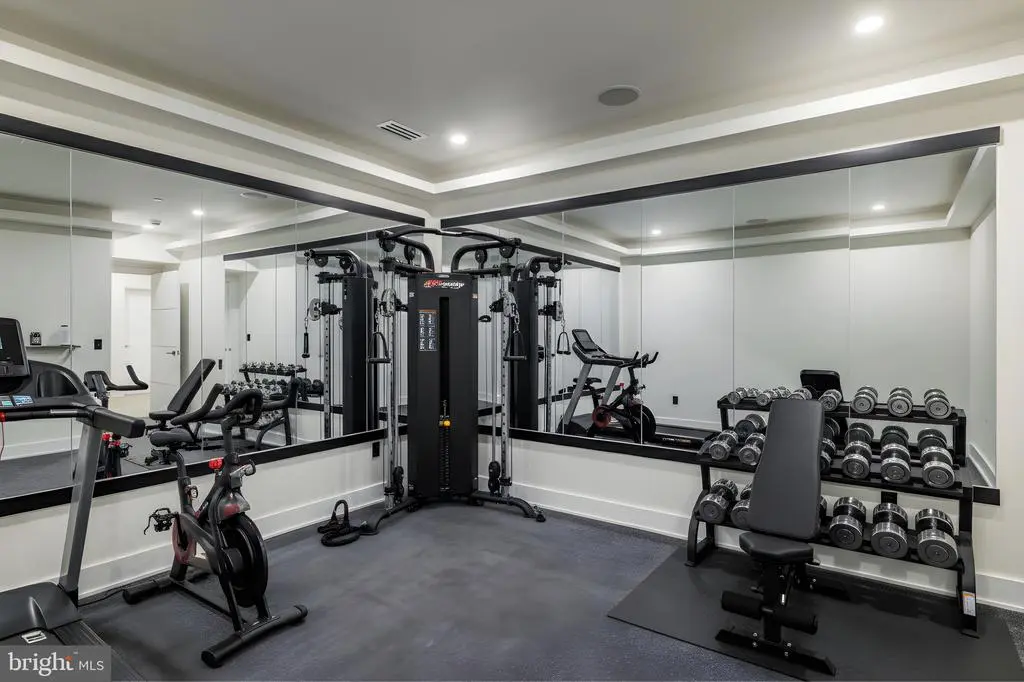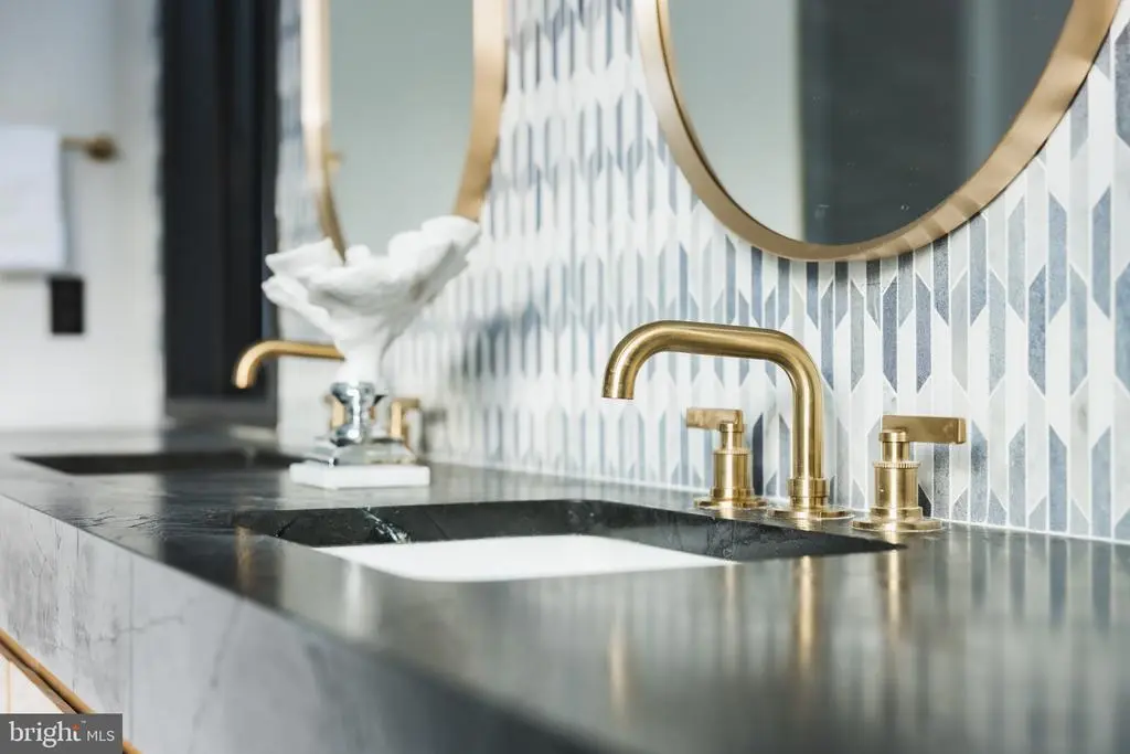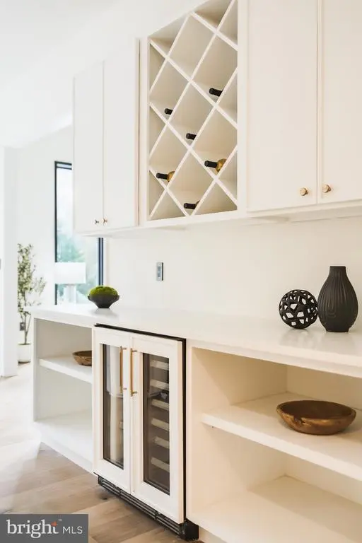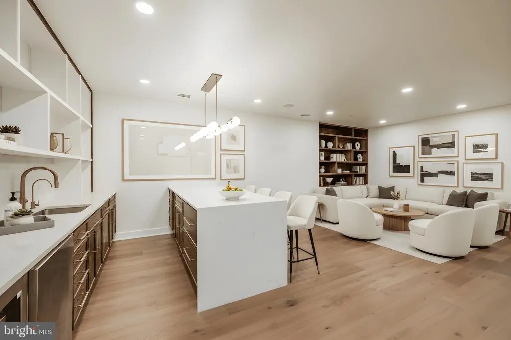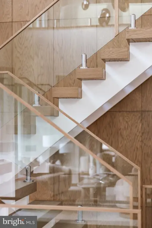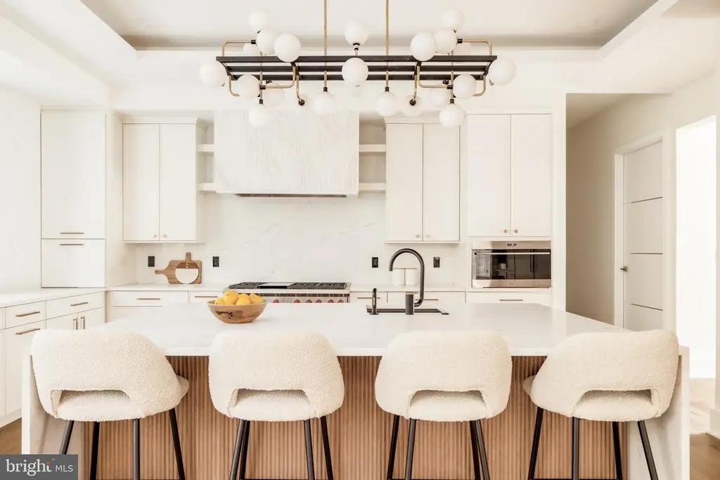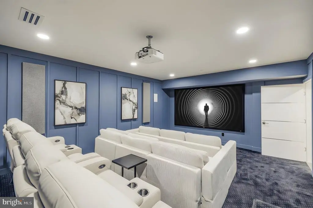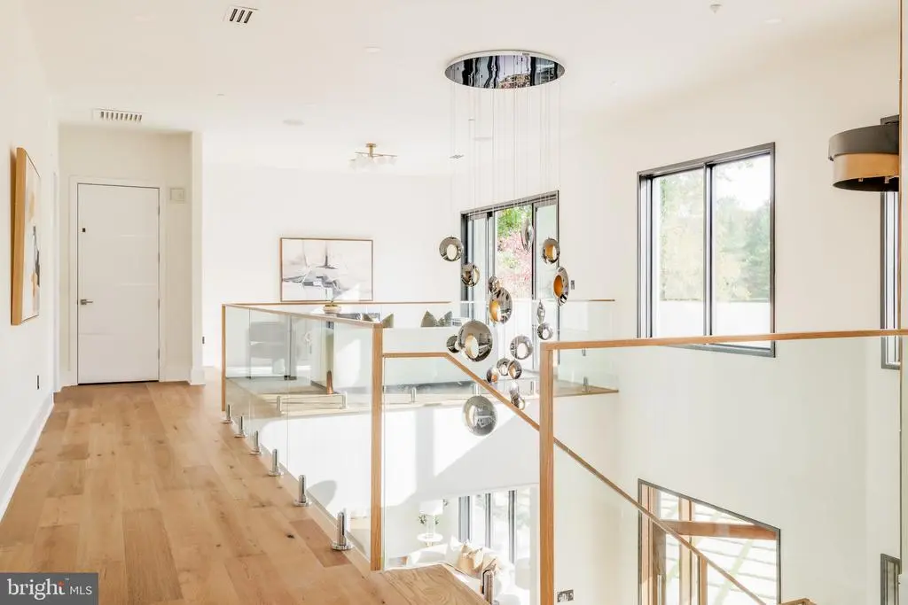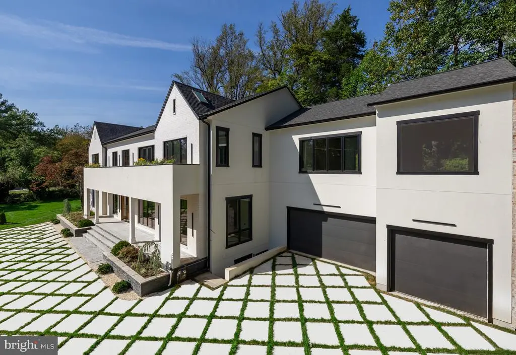 Tucked within a serene cul-de-sac in Bethesda’s coveted Burning Tree neighborhood, 6605 Lybrook Court represents the latest collaboration between renowned builder Dena House and AP Architects. Recently completed on over half an acre, this custom contemporary residence spans more than 9,000 square feet across three thoughtfully designed levels, offering a rare combination of modern sophistication, enduring craftsmanship, and flexible living spaces. Defined by clean geometry and finely curated materials, the home balances sleek modern elegance with lasting comfort. The striking façade, composed of Shouldice dimensional stone and white concrete and accented by black-clad Pella windows, is approached via a custom concrete block driveway with grass in between, providing parking for up to nine cars. A dramatic 25-foot-wide staircase leads to a 300-square-foot covered terrace with a luxury mahogany ceiling, framing the glass pivot front door and soaring double-height foyer. Inside, a floating Viewrail staircase with four-inch treads and glass railings ascends before a 21-foot paneled red oak wall, creating the home’s architectural centerpiece. Expansive sightlines and abundant natural light connect formal and informal spaces seamlessly. The formal living and dining rooms flow effortlessly, while a distinguished study with custom millwork, dual built-in libraries, red oak–paneled walls, and a private exterior entrance provides an elegant and functional space for work or reflection. The informal living area centers on a family room anchored by a striking gas fireplace within a porcelain and marble surround, framed by panoramic views of the rear terrace. Throughout the main level, 7.5-inch white oak floors, Visual Comfort lighting, and Lutron smart controls create a cohesive atmosphere of sophistication. The home is equipped with Bose and Polk sound systems, with 11 speaker pairs delivering immersive audio throughout. The kitchen is both a statement and a sanctuary, featuring two-tone Wood-Mode cabinetry, Calacatta Silver quartzite surfaces, a waterfall island, a custom hood, and a full Wolf/Sub-Zero appliance suite. A butler’s pantry and walk-in secondary pantry provide abundant storage and prep space. A mudroom connects to the three-car garage and family powder room, while a main-level guest suite enhances multigenerational flexibility. Upstairs, the primary suite is a retreat of exceptional comfort, with poplar-beamed ceilings, red oak paneling, dual custom walk-in dressing rooms (one with a Taj Mahal-topped island), and a private sitting room with kitchenette opening to a screened porch with a mahogany ceiling. The spa-inspired bath features a Negresco leather granite double vanity, Tappeti marble, Badeloft soaking tub, and expansive glass shower. Three additional bedrooms, each with ensuite baths and custom walk-in closets, surround a loft sitting area, with a conveniently located laundry room. The lower level is devoted to recreation and relaxation, featuring a home cinema with 6.1 surround sound, glass-enclosed wine room, fully equipped bar and kitchenette, fitness center, and guest suite with full bath. A Savaria Eclipse elevator provides seamless access to all three levels. Outdoors, two metal pergolas define distinct gathering areas, one anchored by a natural gas fire table. Custom concrete hardscaping and lush landscaping create a private, serene setting ideal for intimate dining or larger entertaining. Smart home systems, including Ring security, Nest thermostats, and WiFi-enabled appliances, integrate convenience and efficiency into daily life. With meticulous craftsmanship, modern design, and a premier location blending tranquility with proximity to downtown Bethesda, 6605 Lybrook Court offers a rare opportunity to own a newly built residence of architectural distinction, where every detail reflects comfort, style, and timeless sophistication.