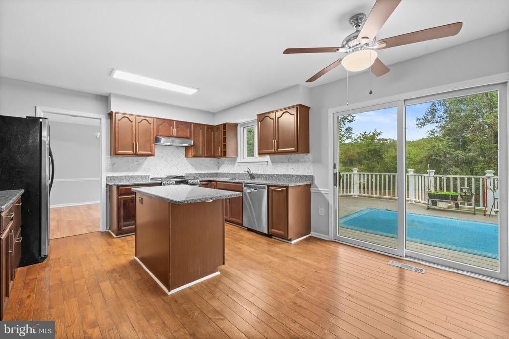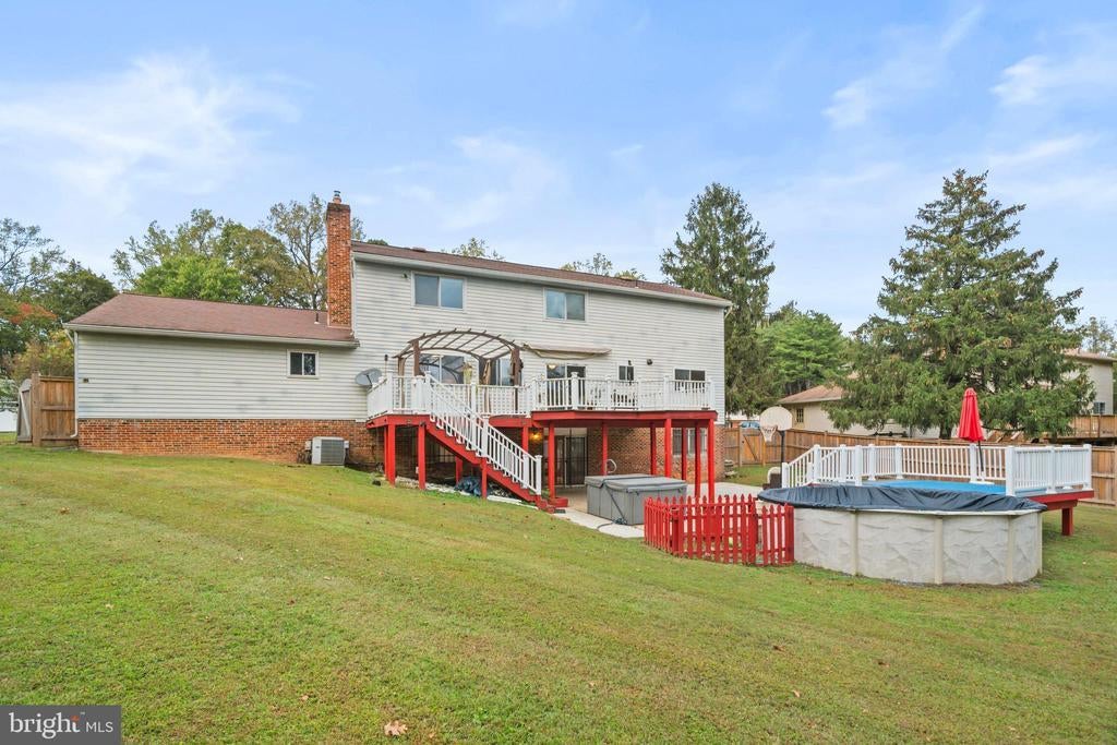 Welcome to your move-in-ready home—just in time for the holidays! This beautifully updated and maintained 3-level home with a fully finished ABOVE-GROUND walkout basement features 6 bedrooms, 3.5 bathrooms, and a spacious two-car garage. Professionally painted, updated LED lighting throughout, brand-new carpeting in the basement, and 2 bedrooms. HVAC, HEAT PUMP, and ROOF are approximately less than 11 years old. Enjoy the fully fenced, flat backyard complete with an above-ground pool and deck—perfect for entertaining or relaxing outdoors. The main level welcomes you with a bright foyer, a large living room, and a formal dining room. The updated kitchen boasts granite countertops, two islands, and an open layout connecting to the family room with a wood-burning fireplace. There’s also a flex room that can serve as an office or additional bedroom, a half bath, and a laundry room with access to the garage. Step outside from the kitchen to a huge composite deck with stairs leading down to the pool and basement area. Upstairs, the primary suite offers a spacious bedroom, a sitting or office room, two walk-in closets, and an en suite bathroom with a double vanity, soaking tub, separate shower, and ample natural light. Three additional generously sized bedrooms and a shared full bathroom complete the upper level. The fully finished walkout basement provides a large recreation room with a wet bar and kitchenette, a bedroom with full-size windows, and a full bathroom—ideal for guests or an in-law suite. This home truly has it all—space, functionality, and style—ready for you to make lasting memories.