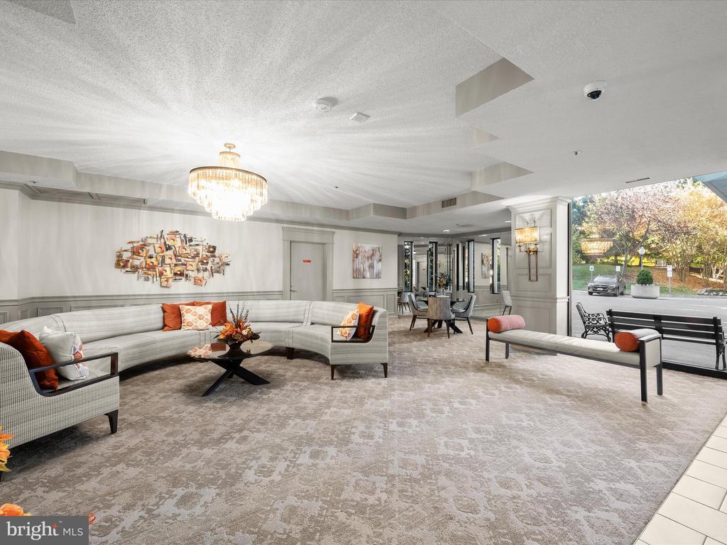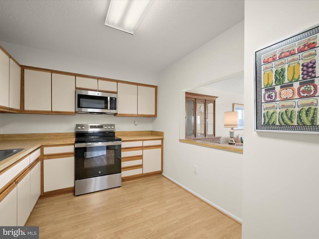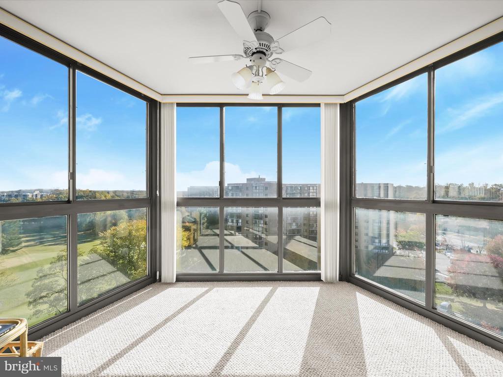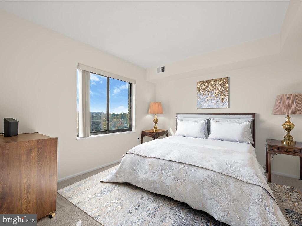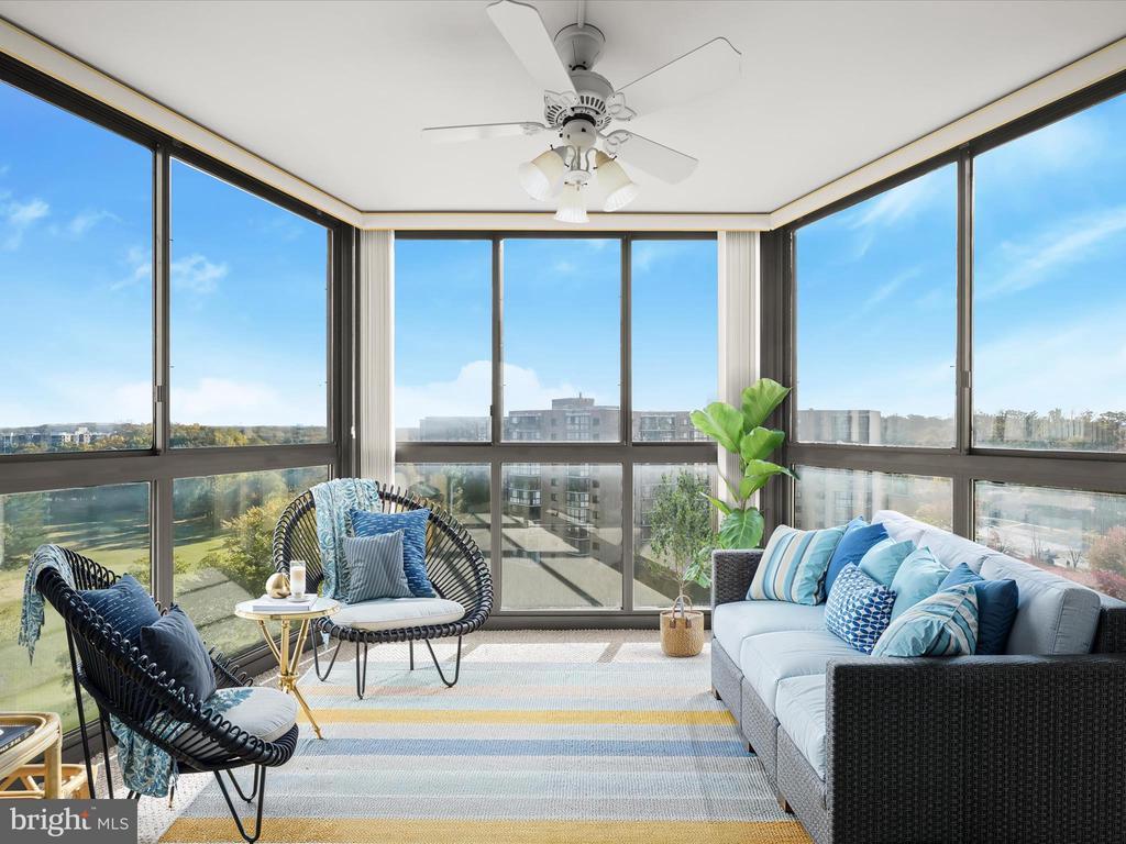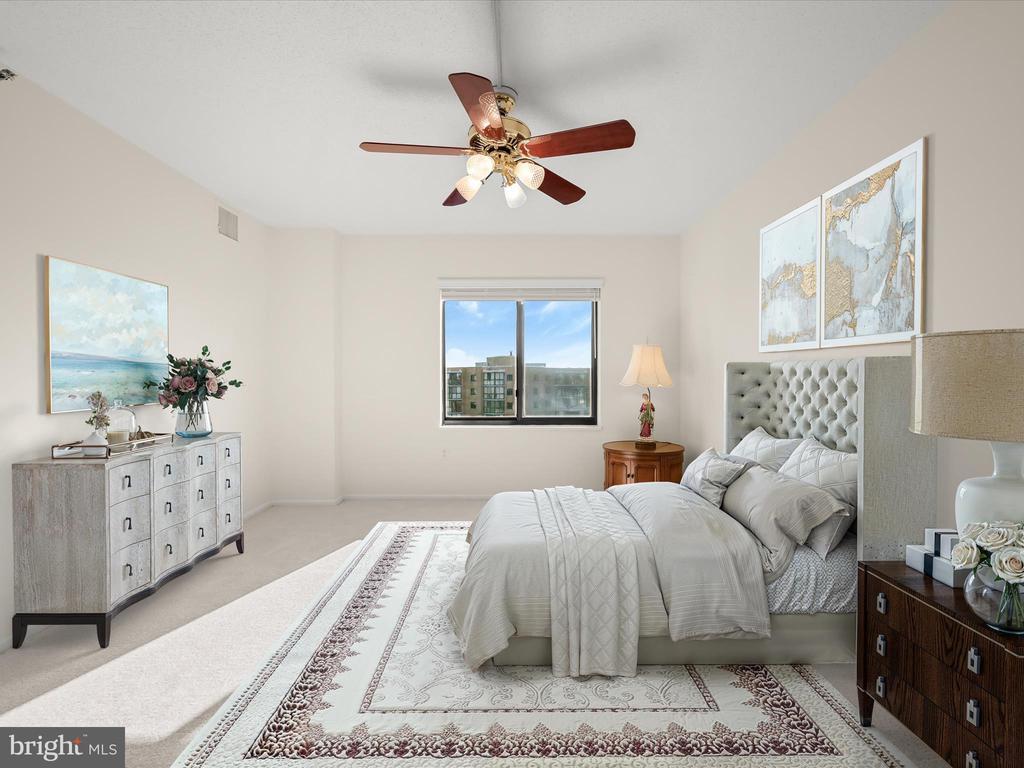 Perched on the 9th floor of a well-managed, secure elevator building, in sought-after Leisure World, this residence combines carefree, low-maintenance living with access to a vibrant lifestyle. Residents are welcomed through a beautifully remodeled lobby and boutique-style hallways into a home defined by comfort and style. Unit #908 is bright and inviting offering sweeping panoramic views of the golf course and the changing leaves of the surrounding trees. Fresh neutral paint sets the tone for the open-concept living and dining room, where natural light pours in from the enclosed balcony, creating a serene backdrop for relaxing or entertaining. The kitchen, located just off the foyer, features a new stainless steel range and microwave, a pantry, and an opening overlooking the living and dining spaces, seamlessly combining functionality with connection. The primary bedroom is privately situated at the end of the hallway and offers new carpet, a dual-entry walk-in closet, a built-in vanity, and an en-suite bath. A second bedroom also enjoys its own private en-suite bath, while a dedicated laundry room adds convenience to everyday living. Additional features include a storage unit that conveys with the sale and ample parking for residents and guests. Beyond the comforts of the home, the building itself provides an array of amenities, including a resident library, party room, and a calendar of activities such as dinners, movies, and social events. Leisure World is a gated, security-conscious community offering clubhouses, two restaurants, a golf course, tennis and pickleball courts, shuffleboard, indoor and outdoor pools, an on-site post office, medical center, and more. The clubhouse with its indoor pool is nearby, making it easy to enjoy the wealth of amenities at your doorstep. This unit presents a rare opportunity to enjoy elevated living, remarkable views, and a welcoming community all in one exceptional home. Please note: some photos have utilized virtual staging.