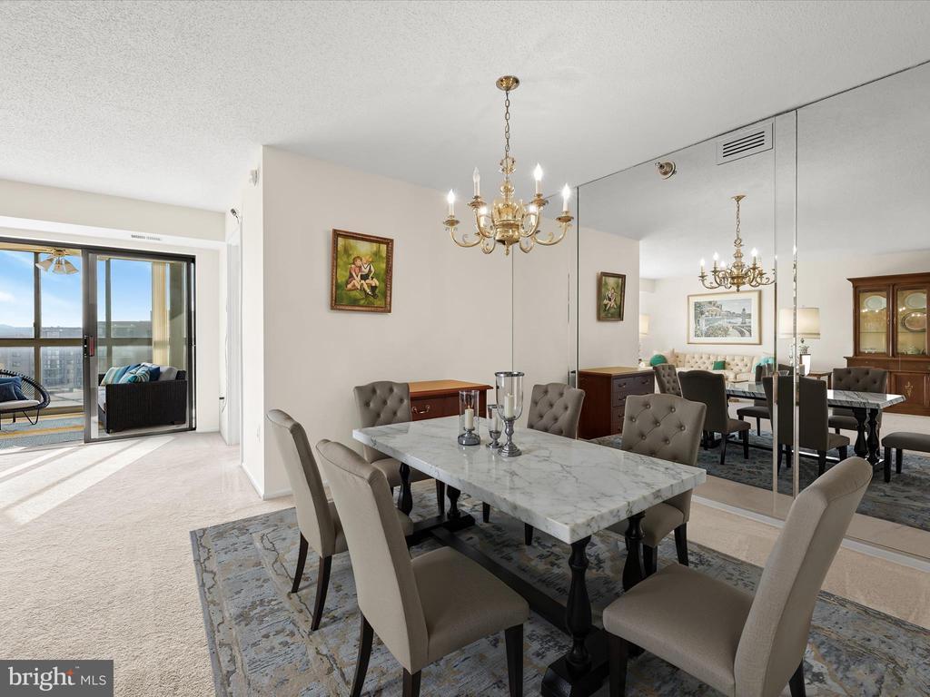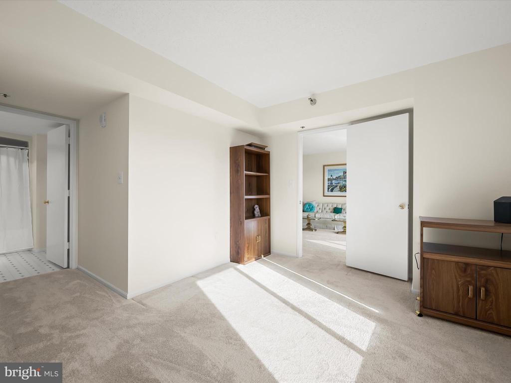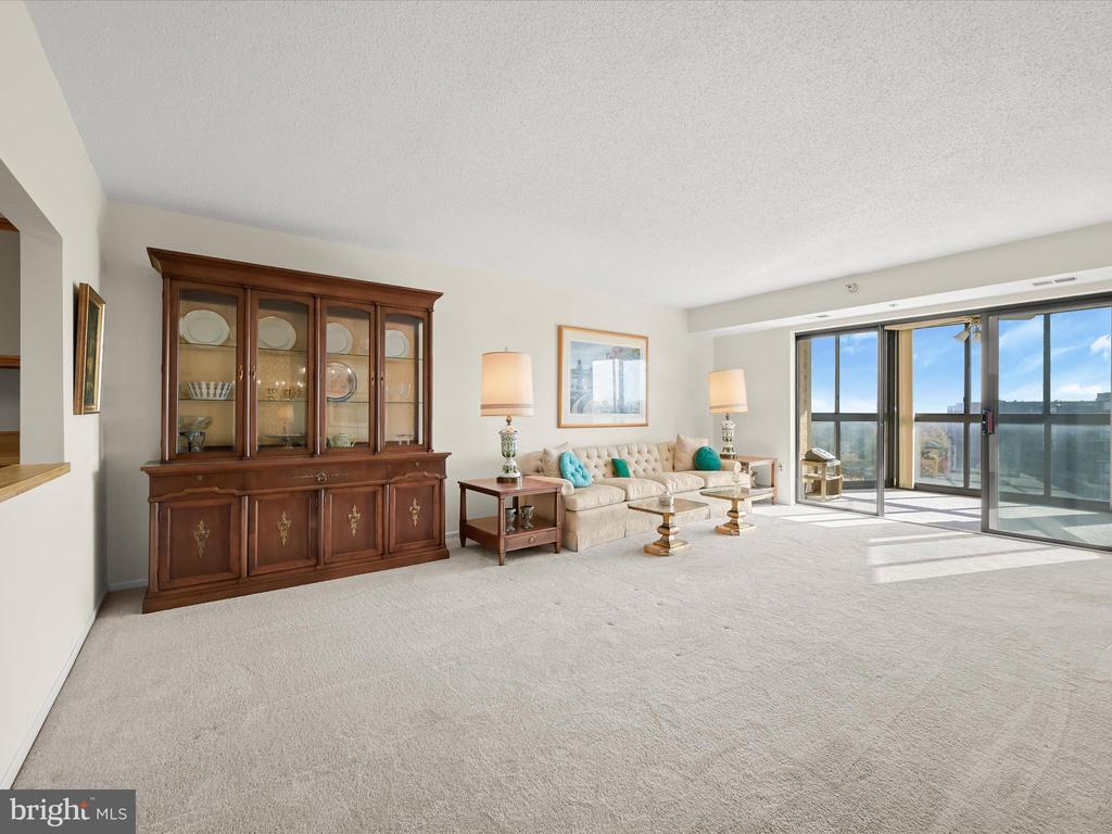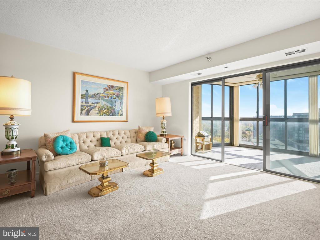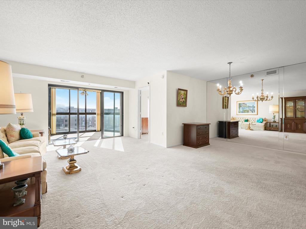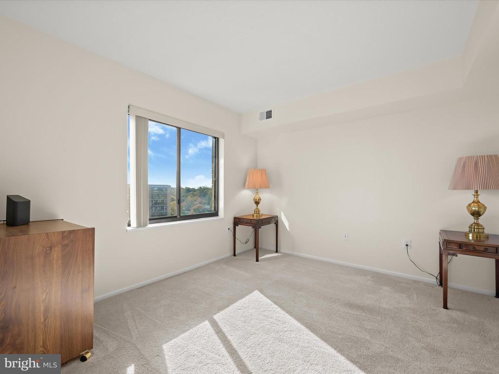 Perched on the 9th floor of a well-managed, secure elevator building, in sought-after Leisure World, this residence combines carefree, low-maintenance living with access to a vibrant lifestyle. Residents are welcomed through a beautifully remodeled lobby and boutique-style hallways into a home defined by comfort and style. Unit #908 is bright and inviting offering sweeping panoramic views of the golf course and the changing leaves of the surrounding trees. Fresh neutral paint sets the tone for the open-concept living and dining room, where natural light pours in from the enclosed balcony, creating a serene backdrop for relaxing or entertaining. The kitchen, located just off the foyer, features a new stainless steel range and microwave, a pantry, and an opening overlooking the living and dining spaces, seamlessly combining functionality with connection. The primary bedroom is privately situated at the end of the hallway and offers new carpet, a dual-entry walk-in closet, a built-in vanity, and an en-suite bath. A second bedroom also enjoys its own private en-suite bath, while a dedicated laundry room adds convenience to everyday living. Additional features include a storage unit that conveys with the sale and ample parking for residents and guests. Beyond the comforts of the home, the building itself provides an array of amenities, including a resident library, party room, and a calendar of activities such as dinners, movies, and social events. Leisure World is a gated, security-conscious community offering clubhouses, two restaurants, a golf course, tennis and pickleball courts, shuffleboard, indoor and outdoor pools, an on-site post office, medical center, and more. The clubhouse with its indoor pool is nearby, making it easy to enjoy the wealth of amenities at your doorstep. This unit presents a rare opportunity to enjoy elevated living, remarkable views, and a welcoming community all in one exceptional home. Please note: some photos have utilized virtual staging.