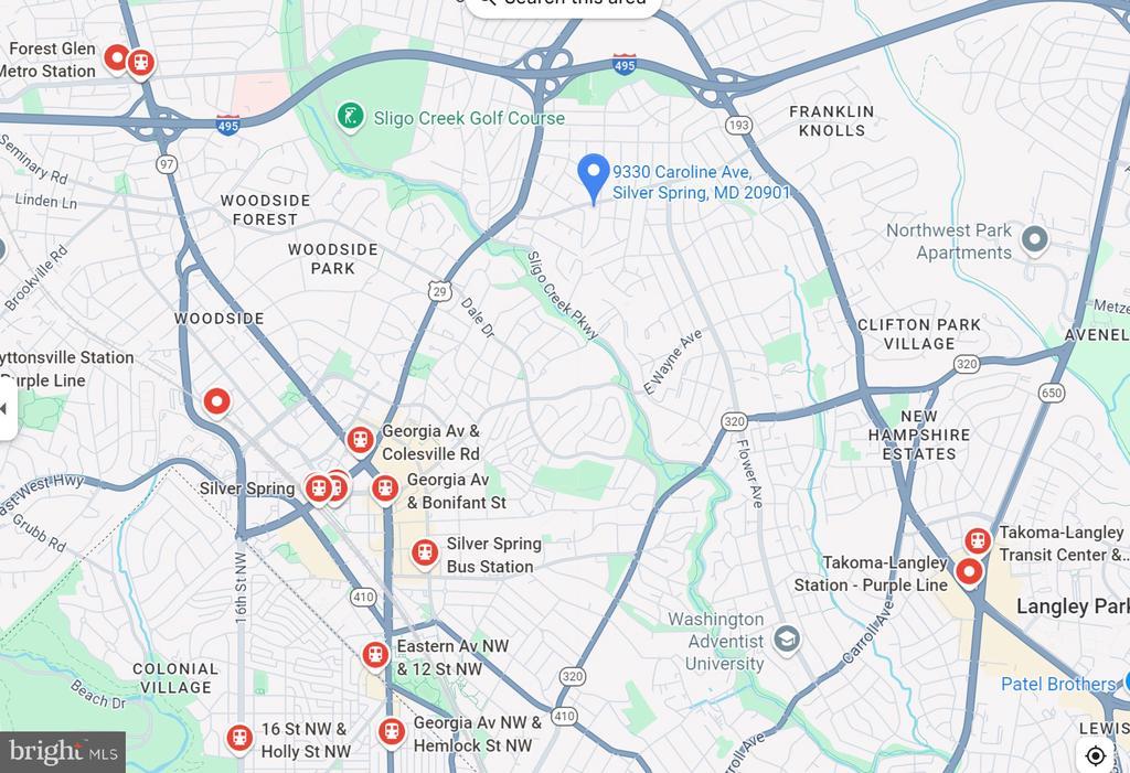 This 3-bedroom, 1-bathroom single family home offers 1,080 sq ft of one-level living with no HOA. It is nestled in the quiet, tree-lined, Seven Oaks neighborhood with a direct path to the Seven Oaks neighborhood park connecting to Sligo Creek Park. Large, 8,095 sq ft lot allows room for carport/garage addition, outdoor storage solutions and lifestyle space for gardening and outdoor patio for those who love being outdoors. Radiator heat provides efficiency, comfort and reliability, while 2 window A/C units can easily be upgraded to mini-split heat pumps with high-efficiency cooling and supplemental heating and no ductwork is required. Feel as though you are surrounded by nature but still close to all the important amenities including: Bus stops along Franklin Ave (multiple routes), Forest Glen & Silver Spring Metro (Red Line), Giant Food, ALDI, Whole Foods, Downtown Silver Spring shopping & Ellsworth Place, Dining & cafés along Georgia Ave and Ellsworth Dr, Sligo Creek Park & Trail, playgrounds, bike paths, AFI Silver Theatre, The Fillmore, Silver Spring Library, Quick access to I-495, Route 29, and Colesville Road. Access to the new Purple Line Metro (December 2027) from New Carrollton to Bethesda (east to west) connecting Prince George's and Montgomery County with direct connections to Metrorail, AMTRAK, MARC commuter rail, and bus networks, Major companies with a significant presence in or around Silver Spring include: NOAA, FDA, United Therapeutics, ANA, Discovery, Curiosity Stream and Urban One. Third-party ‘Flood Factor’ models differ from FEMA. Not in a FEMA Special Flood Hazard Area. See FEMA map in photos.