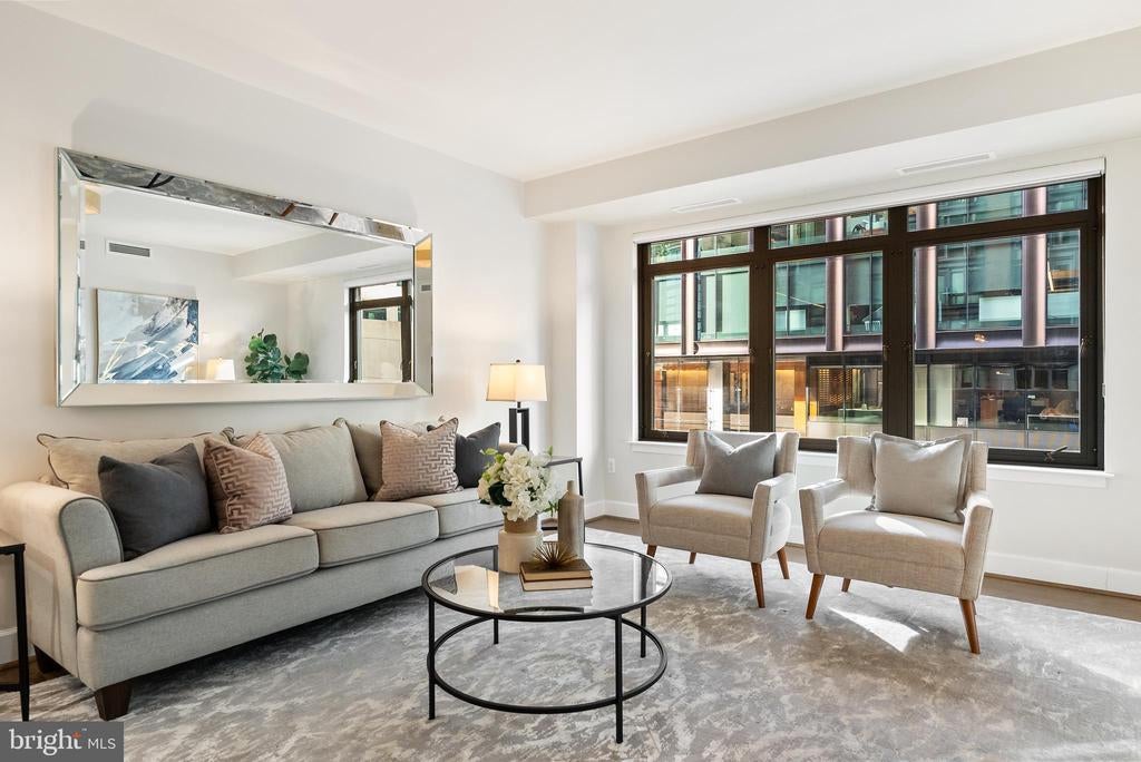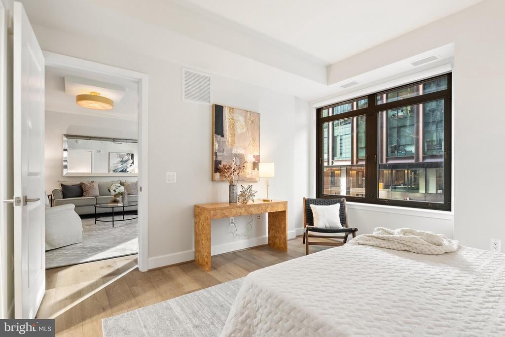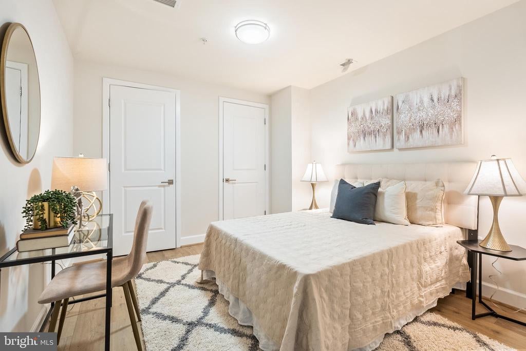 Updated! Fantastic value and amazing location- the building is in the heart of Bethesda and this unit is just across the hall from an open floor plan community space living room/balcony, kitchen and work space- all of which is perfect for entertaining! UNIT 206: Spacious primary bedroom with ensuite bath (separate tub and shower and dual sinks), a VERY generous walk in closet (by California Closets). The second bedroom works well as a den/office as well, with 2 closets and a second full bathroom adjacent. Laundry in unit. Bosch appliances. Please see floor plans. THE BUILDING: You'll love the beautiful full-service Darcy building in the heart of downtown Bethesda. Friendly front desk attendants and gracious amenities throughout. Unit 206 has the following special features: California Closets (primary closet is a generous walk-in) Stacked laundry in the unit Bosch stainless appliances Wide plank engineered wood floors Grohe faucets + instant hot water in the kitchen Assigned garage parking spot (1 assigned space is included in price & other spots avail for rent) Plenty of additional underground covered paid parking for your guests Assigned storage unit included G2-531 #5 Unit 206 has an open floor plan and is conveniently located outside the common area living room (with balcony), workroom, and full kitchen - so convenient! About The Darcy: The complex includes 24 hour concierge, a spacious gym/fitness room, a business center, club room, 2 guest suites (about $200/night) on the 4th floor, and access across the street to a shared rooftop deck with a gas grill, fire pit, lounge, and bar seating. Other perks can be added including a laundry delivery service, housekeeping, deliveries for a separate pay as you go fee. Note- pets are allowed and welcomed. Seller improvements: Grasscloth wallpaper, sconces & mirrors in the entryway + custom wool rugs/mirror can convey Carpet in the bedrooms replaced with wide engineered wood floors Additional recessed ceiling lighting and fixtures Freshly painted including kitchen cabinets and island + 2 brand-new toilets (6/2025) Unit is VACANT and ready for the new owner(s) - Thank you for reaching out with any questions and to make an easy showing appt.
