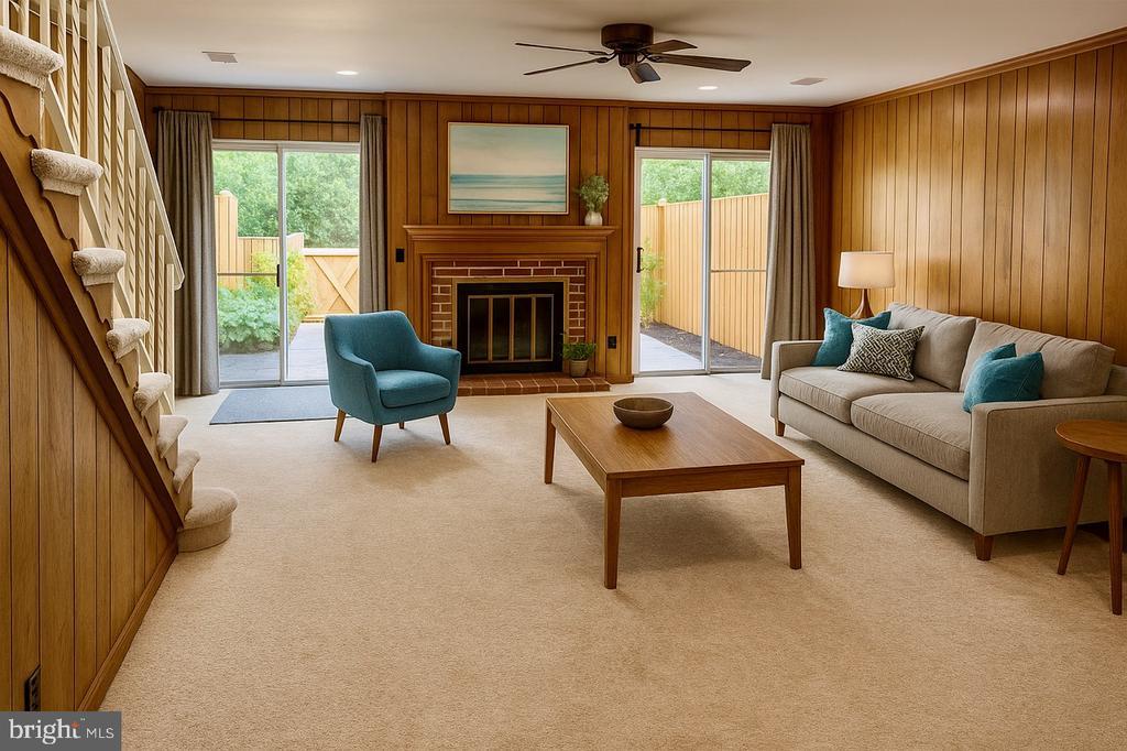 Brick, Fireplace - Glass Doors, Mantel(s), Wood