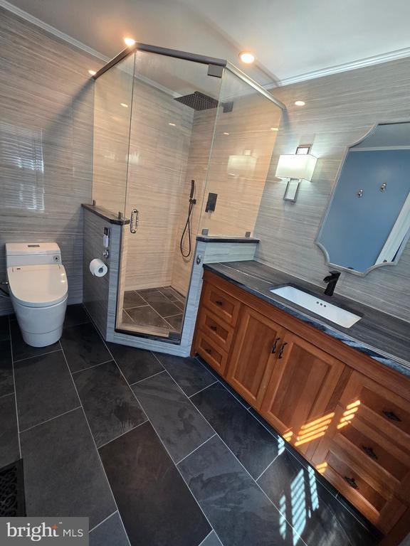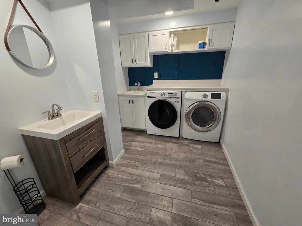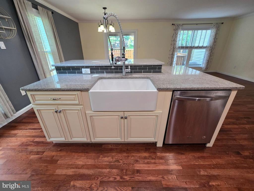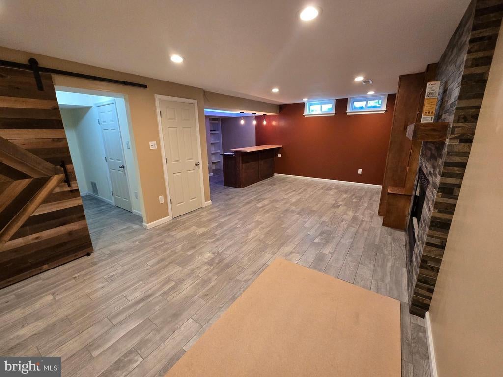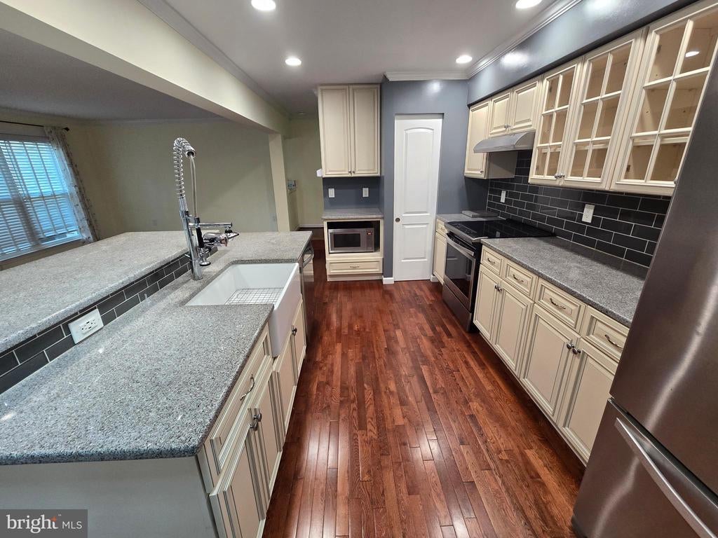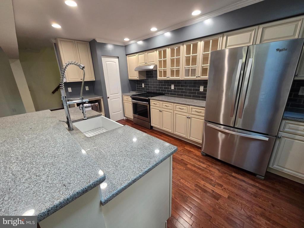 Style and luxury come together in this fully renovated spacious end unit townhome located in the quiet and friendly Longmead Crossing neighborhood. Step into this hidden gem and discover your new updated and upgraded home which has 3BD/2FB and two 1/2 bath. Beautiful cherry hardwood floors throughout. The first floor is an open-concept kitchen/living room layout with a custom multi-level kitchen island with built-in farmhouse sink, wine cooler, granite counters, subway tile backsplash, and new stainless appliances. Bright light filters through the kitchen skylight. The second floor includes a large primary bedroom with ensuite luxury custom bathroom with waterfall shower, heated slate floors, and extra large walk-in closet. The two additional large bedrooms include spacious closets. The hall bath includes a deep soaking tub for relaxing baths. The finished basement is a great entertaining space with a working wood fireplace, tile floor, custom entertainment center, bar, and large multipurpose area enclosed by a custom modern chevron barn door. The separate laundry room has high efficiency washer and dryer, countertop, and utility sink. The basement has two separate built-in storage areas. The west-facing fenced in backyard has a lush grassy area perfect for a garden and an oversize deck perfect for grilling. Parking is included with a 1-car garage with an EV charger and built-in extra storage and extended driveway. The area includes plenty of neighborhood parking for visitors. Community amenities include a clubhouse, multiple swimming pools, tennis courts, playgrounds, multipurpose fields, and walking and biking path. Quick access to the ICC, Glenmont metro and transit access, restaurants and shopping conveniently nearby MOCO parks with hiking and nature trails.
