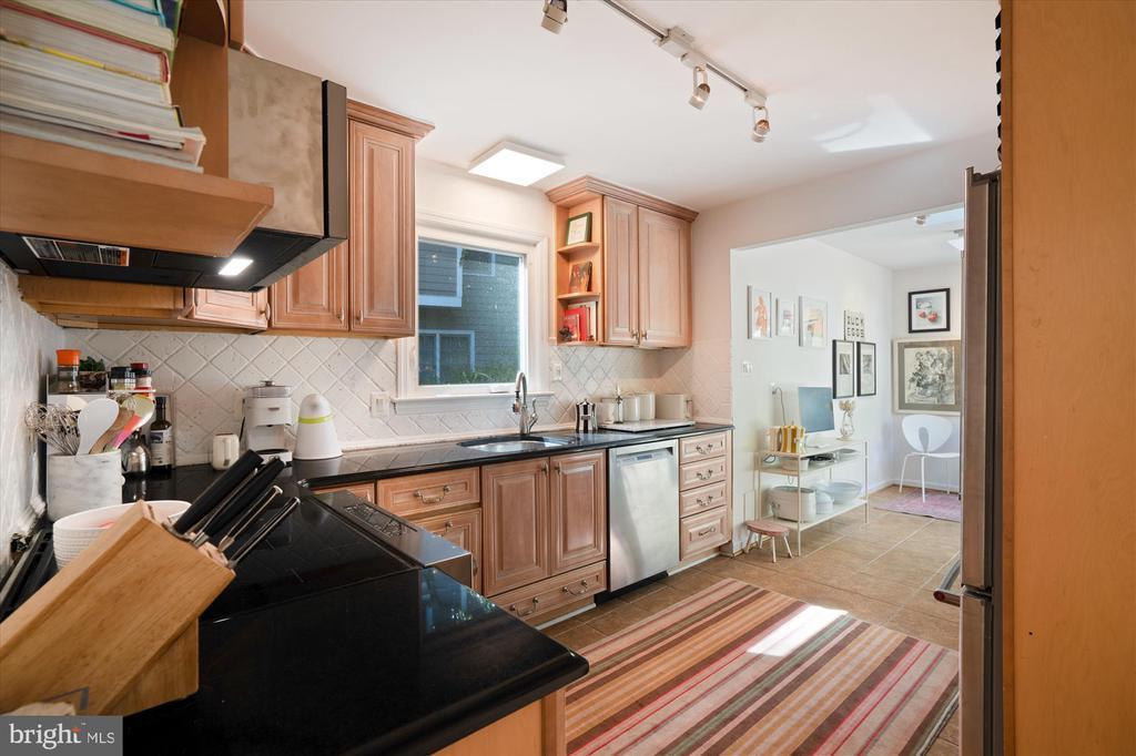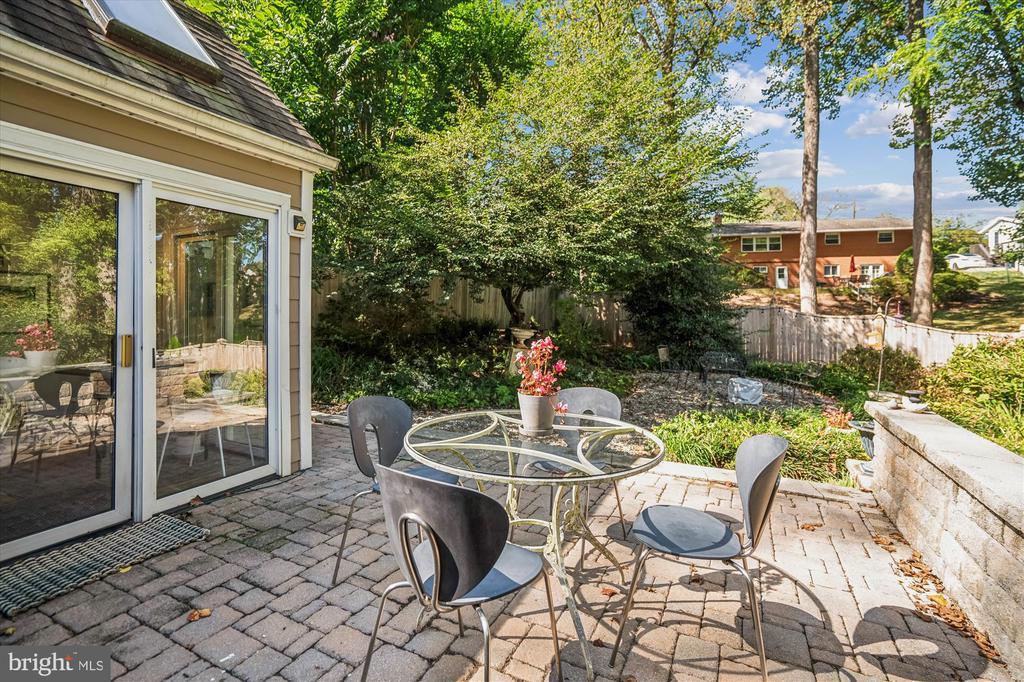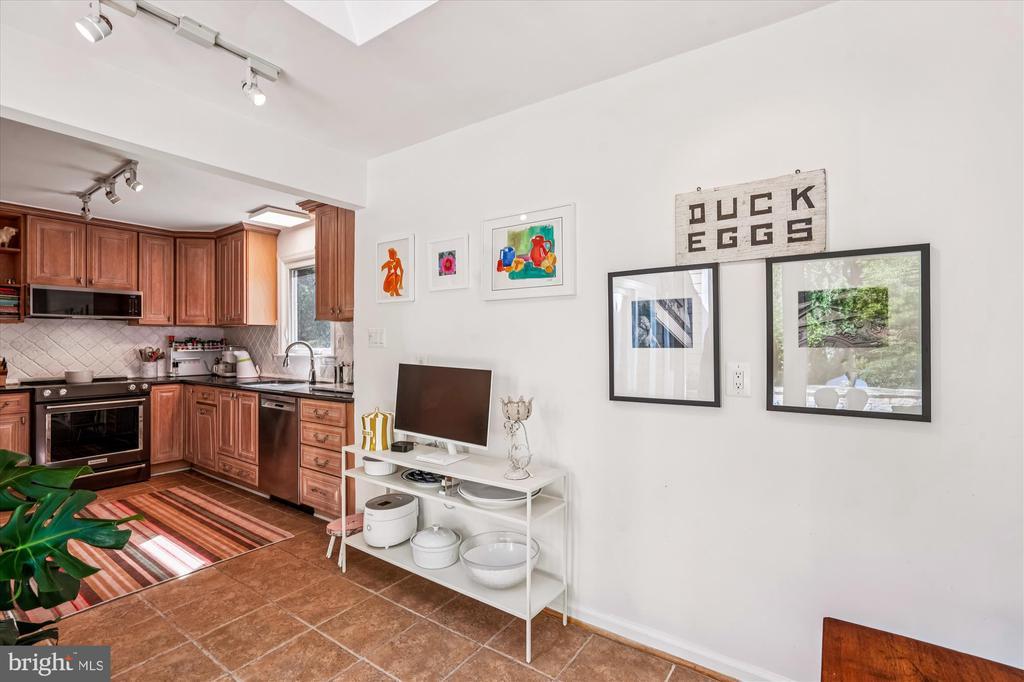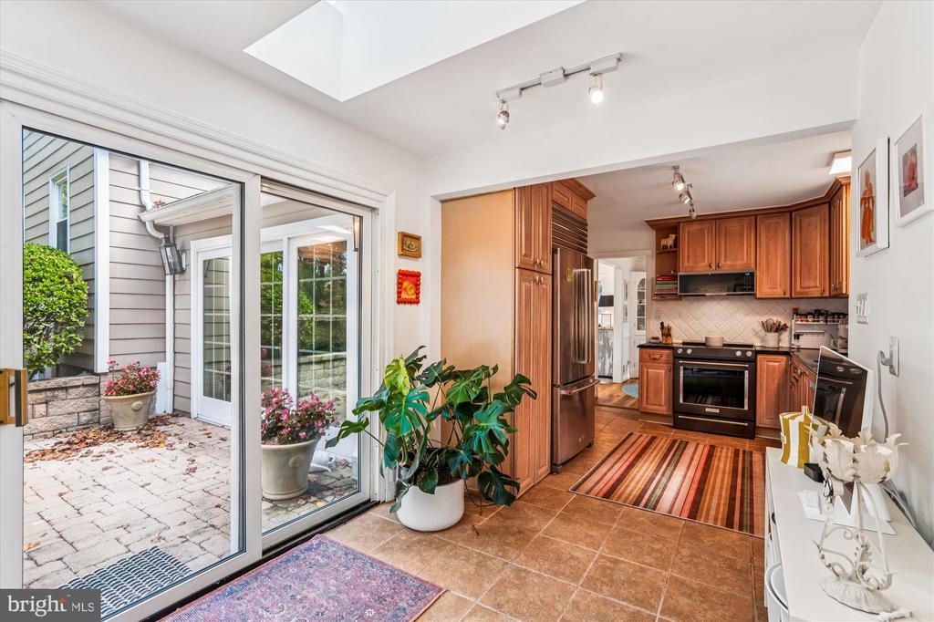 Welcome to 11300 Kenilworth Avenue, a charming and beautifully updated 4 bedroom, 2 bathroom, 3 level home perfectly situated on a quiet street in historic Garrett Park. Freshly painted in neutral tones, this inviting residence features a welcoming ceramic tile foyer on the entry level, where you’ll find a comfortable bedroom, a laundry room with storage, and convenient access to the attached garage. The main level showcases refinished solid hardwood floors and a bright, open layout. Enjoy a spacious family room with skylights, a cozy wood-burning brick fireplace with mantel, and elegant built-in corner cabinets in the dining room. The thoughtfully designed kitchen offers ceramic tile flooring, granite countertops, a stylish tile backsplash, and brand new stainless steel appliances. An inviting and a sunny breakfast area beneath skylights opens to a stone patio, perfect for morning coffee or outdoor dining. Upstairs, the third level features a serene primary suite with hardwood floors and a brand-new (2025) modern primary bathroom. Two additional bedrooms and an updated full bathroom complete the upper level, providing comfortable accommodations for family or guests. Outside, the property boasts an attached garage, an updated driveway, tasteful hardscaping and landscaping, a graded front yard, durable Hardiplank siding, and three flagstone patios- two in the backyard and one on the side. The fully fenced yard is ideal for play, pets, or entertaining. This beautifully maintained home blends classic charm with modern updates and offers comfort, style, and convenience in one of Garrett Park’s most desirable settings. Recent upgrades include a new HVAC (2024), patio doors (2025), kitchen appliances (2024), driveway and landscaping (2023) dryer, light fixtures, electrical box and switches.