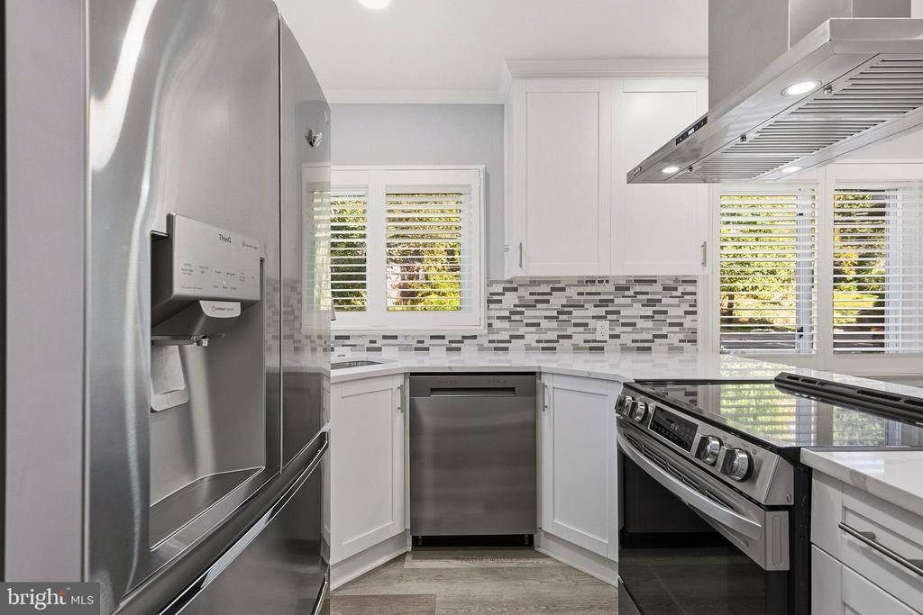 *** HUGE PRICE ADJUSTMENT! MOTIVATED SELLER! *** Welcome to this charming all-brick home tucked away in the tranquil, leafy Highland View Park community. This hidden gem sits on a beautifully landscaped lot with a long driveway for up to four cars, a detached garage, dual side entrances, newer roof (2021), and an inviting covered porch. Inside, you’ll find stylish LVP flooring and a warm family room with a cozy fireplace. The centerpiece is the open gourmet kitchen, featuring stainless steel appliances, white cabinetry, upgraded countertops, a custom lighted canopy hood, mosaic backsplash, and open shelving. New shutters in the living room and kitchen (2024). Main level bedrooms are bright and airy. Every floor is thoughtfully designed with its own luxurious full bath and oversized sink. The primary upper-level suite offers vaulted ceilings, a large dormer window and built-in shelving. The deceptively spacious lower level includes two bonus rooms—perfect for TV, play, or office space—plus a kitchenette, beverage cooler, utility sink, and laundry corner, ideal for guests or extended living. Outdoors, enjoy a fenced backyard shaded by mature trees, perfect for entertaining or unwinding. Newer furnace (2020) and water heater (2018). With an unbeatable location minutes from Downtown Silver Spring, its Metro Station, Holy Cross Hospital, and major commuter routes, this home truly is move-in ready. Make it yours today!