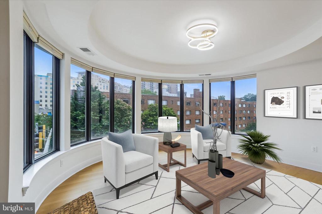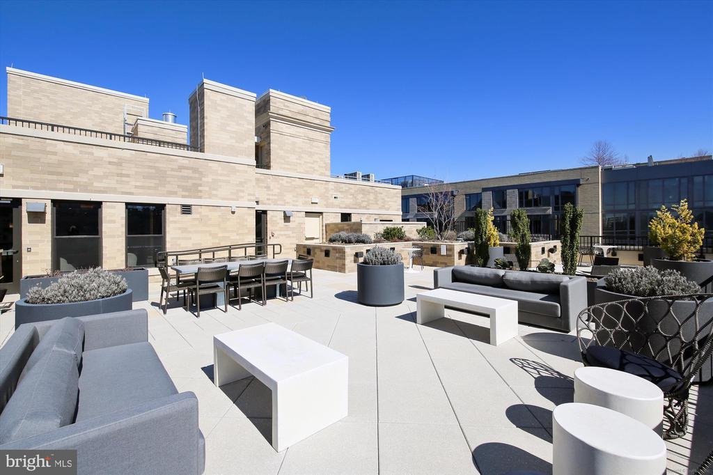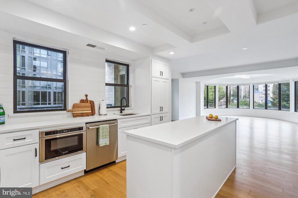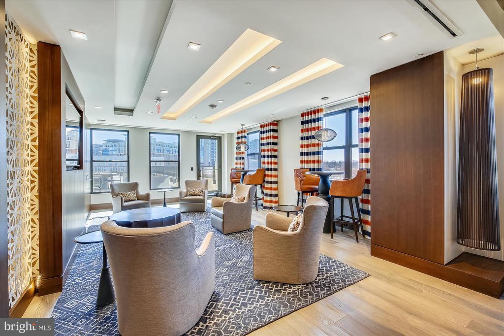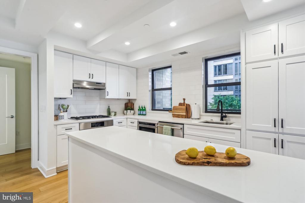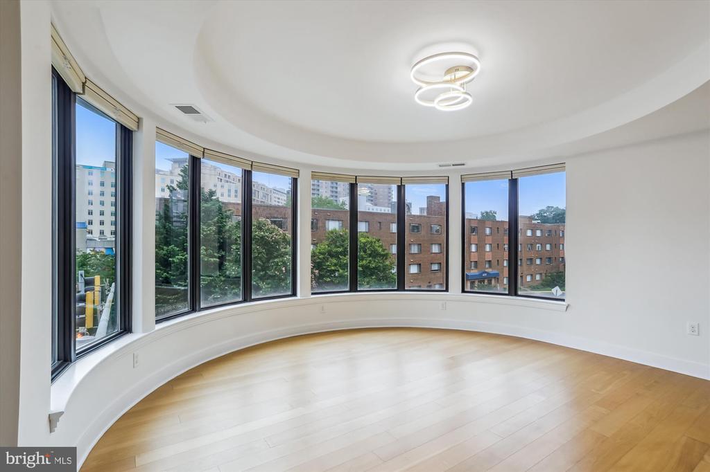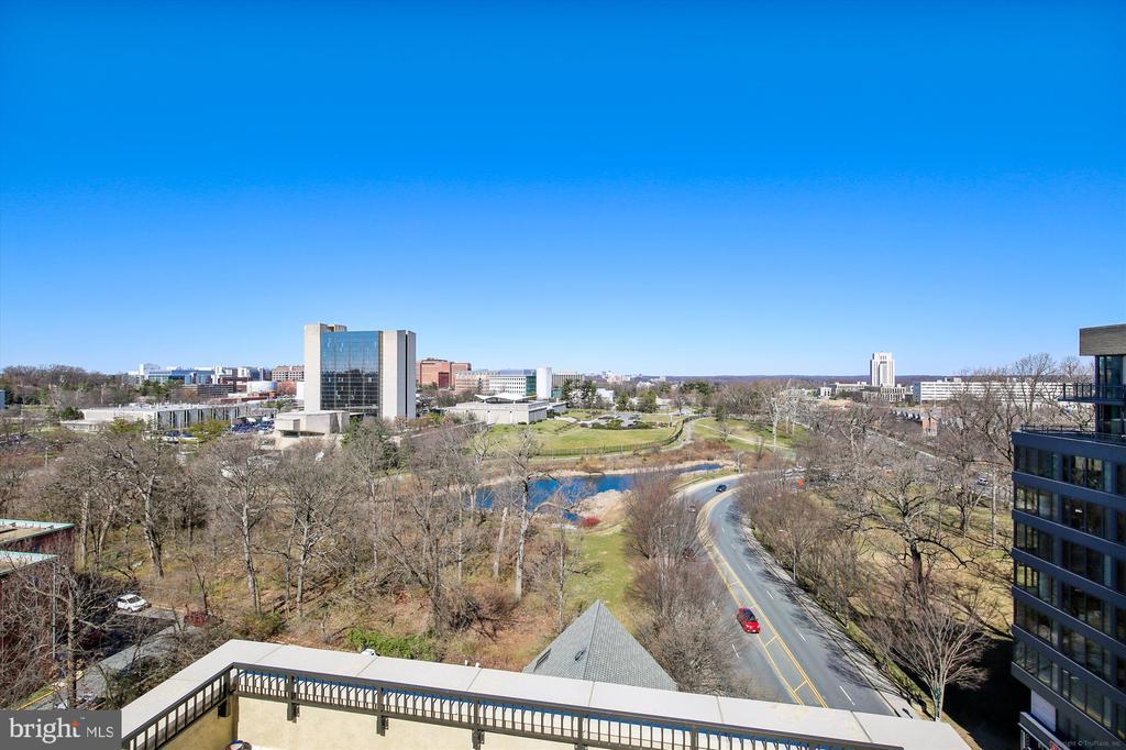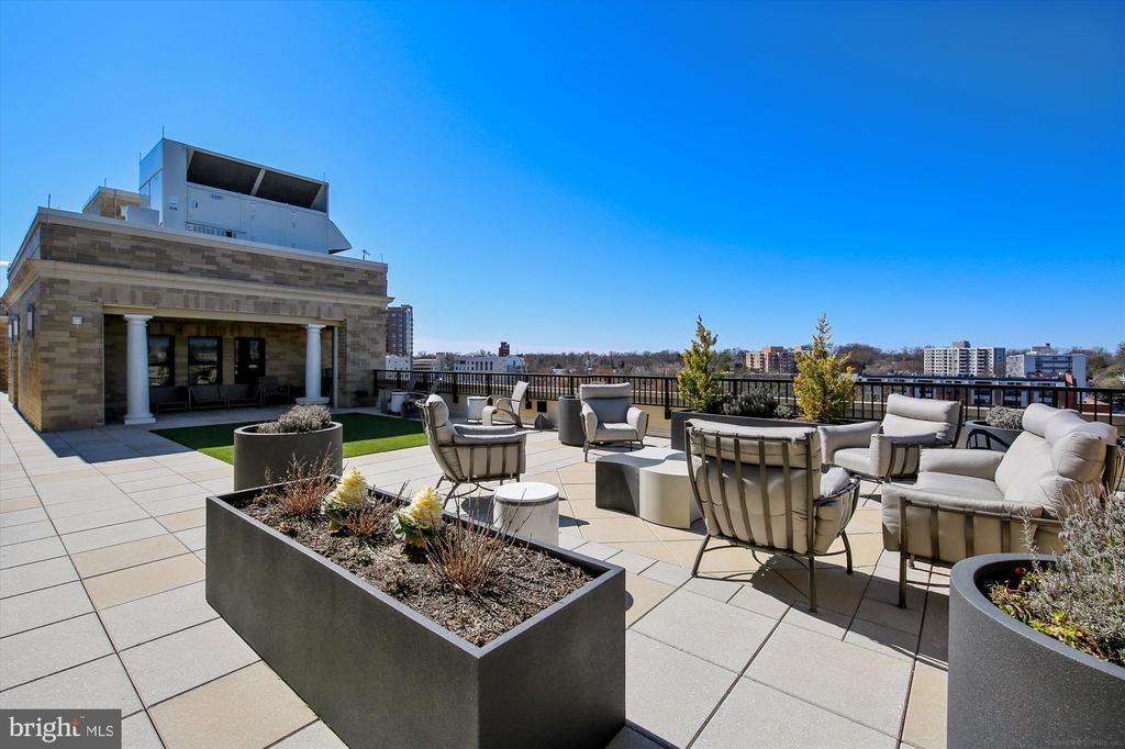 This stunning corner unit in the highly sought-after Stonehall features a dramatic curved window wall that is flooded with sunlight. The home is turnkey, showcasing freshly painted walls, new recessed lighting and fixtures, and brand-new kitchen cabinets. The beautiful floors complement the space perfectly. Enjoy top-of-the-line Bosch stainless steel appliances, gas cooking, quartz countertops, and brand new cabinets in the kitchen. The spacious owner's suite includes a cozy sitting area that can also serve as an office space, an oversized walk-in closet, and a luxurious spa bath. This unit also has a washer and dryer, and a lovely balcony. Pets are welcome! The amenity-rich building offers a front desk/concierge service, a state-of-the-art fitness center on the 2nd floor, and a party/meeting room with a terrace on the 9th floor. The expansive rooftop space, perfect for entertaining, features beautiful sunset views from the 10th floor. The luxurious lobby adds to the elegant atmosphere. EV chargers are possible to be installed, at building approval and owners expense. There is a community herb/vegetable/flower garden on the roof terrace- need basil for your sauce- snip a little from upstairs! Located in the heart of Bethesda, the building is conveniently close to the Metro and NIH. Harris Teeter is just across the street, and the Bethesda Trolley Trail for walking and biking is only a block away. The property is also on the Bethesda Circulator route, providing free hop-on, hop-off access to all of downtown Bethesda's best spots!