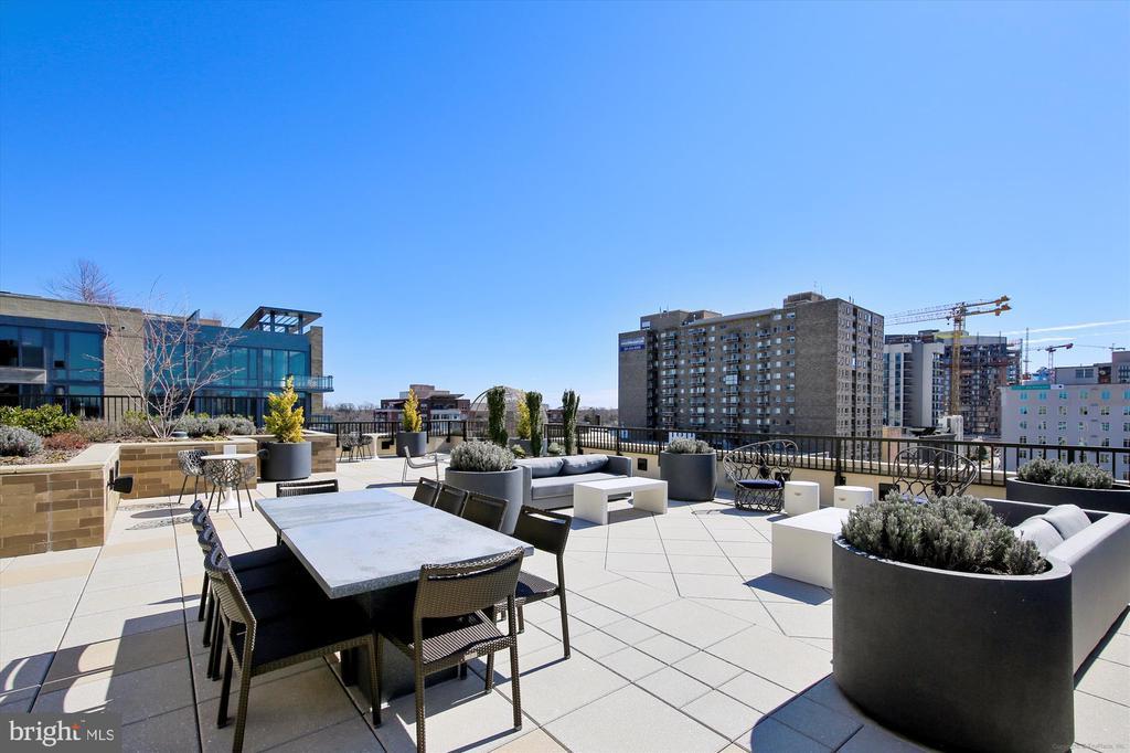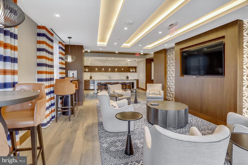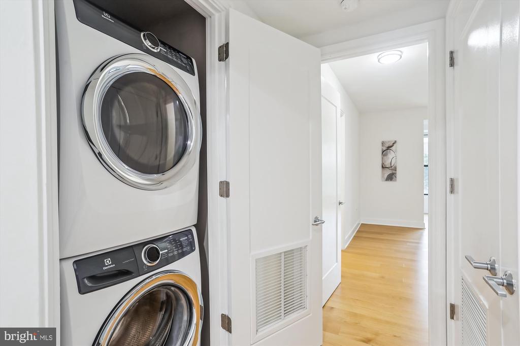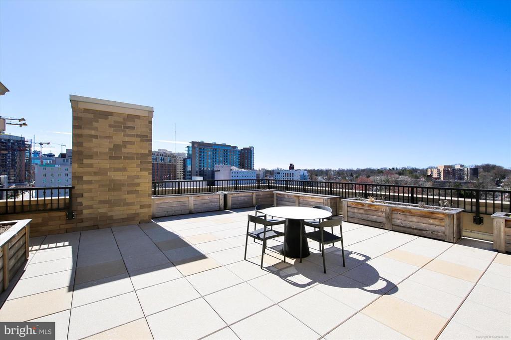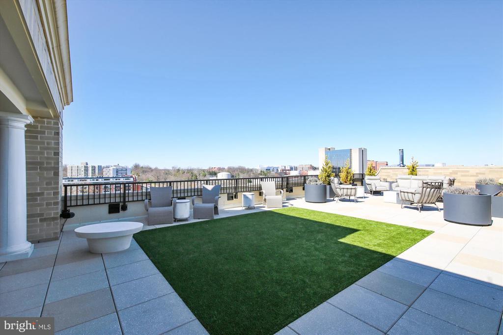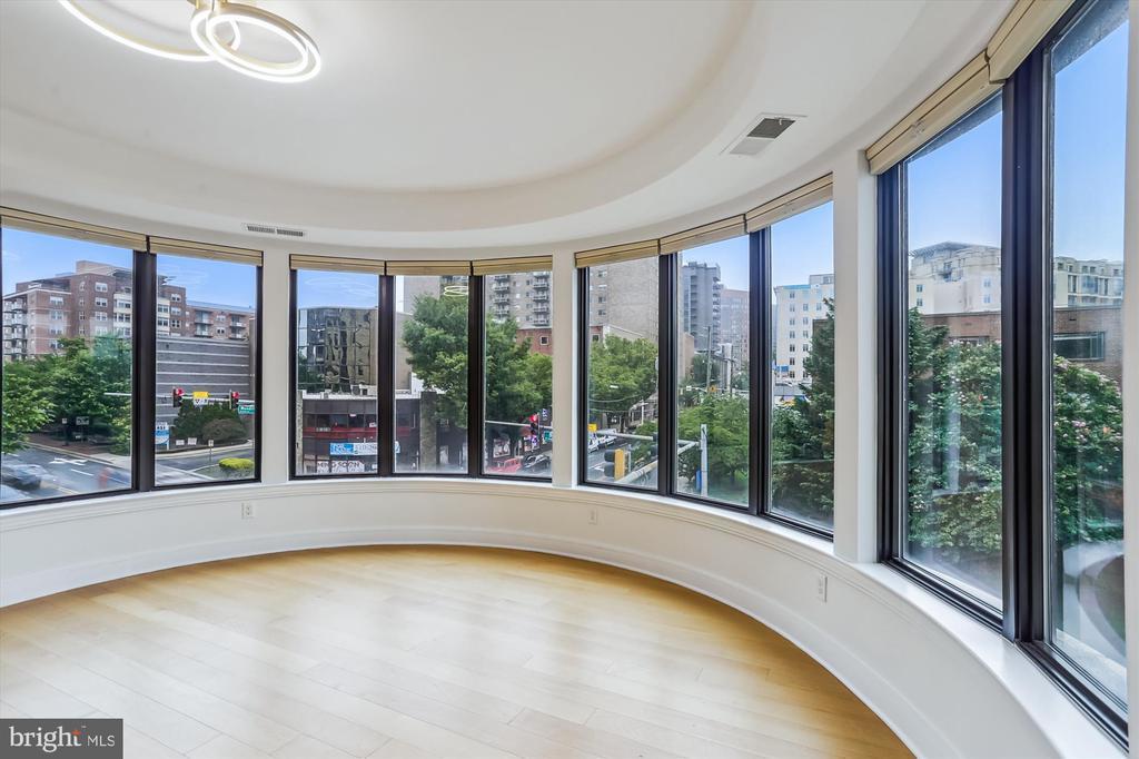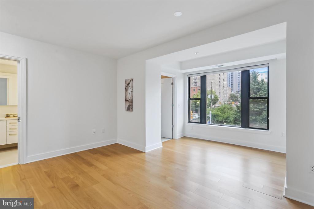 This stunning corner unit in the highly sought-after Stonehall features a dramatic curved window wall that is flooded with sunlight. The home is turnkey, showcasing freshly painted walls, new recessed lighting and fixtures, and brand-new kitchen cabinets. The beautiful floors complement the space perfectly. Enjoy top-of-the-line Bosch stainless steel appliances, gas cooking, quartz countertops, and brand new cabinets in the kitchen. The spacious owner's suite includes a cozy sitting area that can also serve as an office space, an oversized walk-in closet, and a luxurious spa bath. This unit also has a washer and dryer, and a lovely balcony. Pets are welcome! The amenity-rich building offers a front desk/concierge service, a state-of-the-art fitness center on the 2nd floor, and a party/meeting room with a terrace on the 9th floor. The expansive rooftop space, perfect for entertaining, features beautiful sunset views from the 10th floor. The luxurious lobby adds to the elegant atmosphere. EV chargers are possible to be installed, at building approval and owners expense. There is a community herb/vegetable/flower garden on the roof terrace- need basil for your sauce- snip a little from upstairs! Located in the heart of Bethesda, the building is conveniently close to the Metro and NIH. Harris Teeter is just across the street, and the Bethesda Trolley Trail for walking and biking is only a block away. The property is also on the Bethesda Circulator route, providing free hop-on, hop-off access to all of downtown Bethesda's best spots!