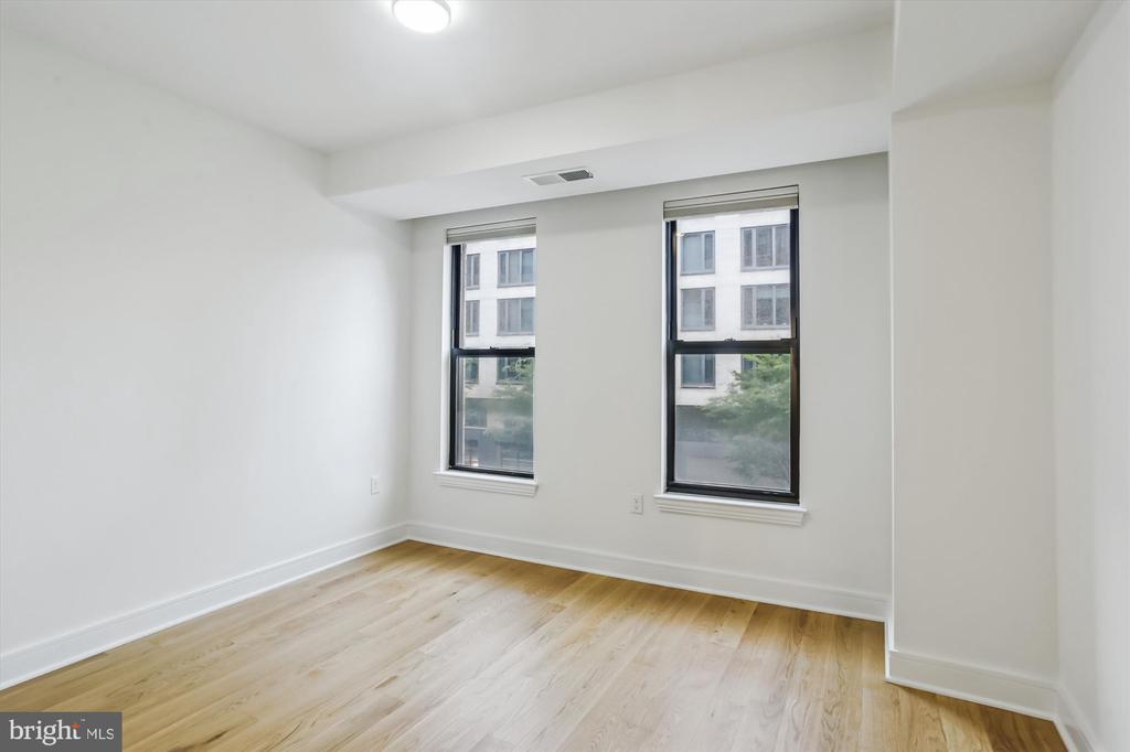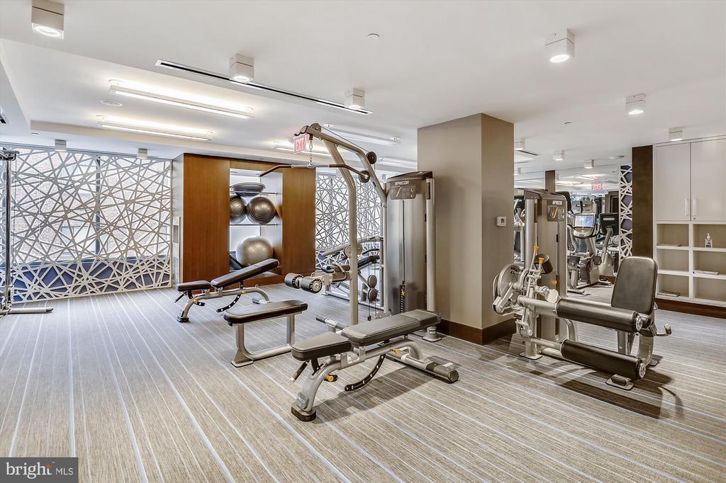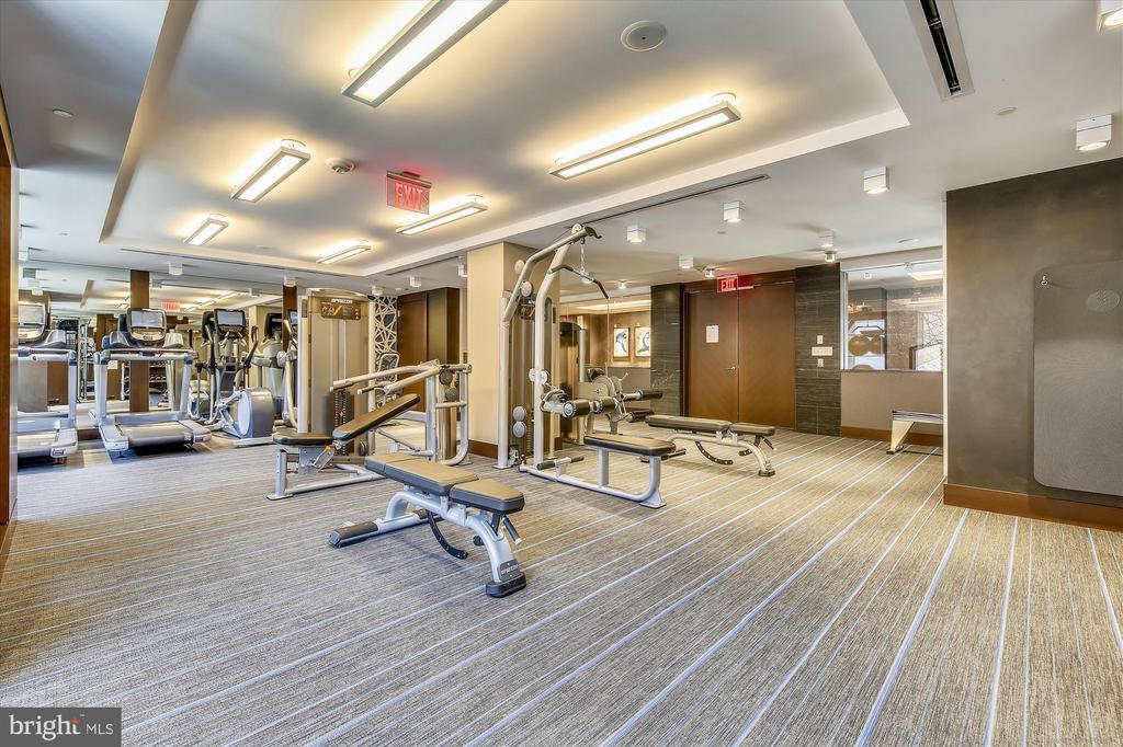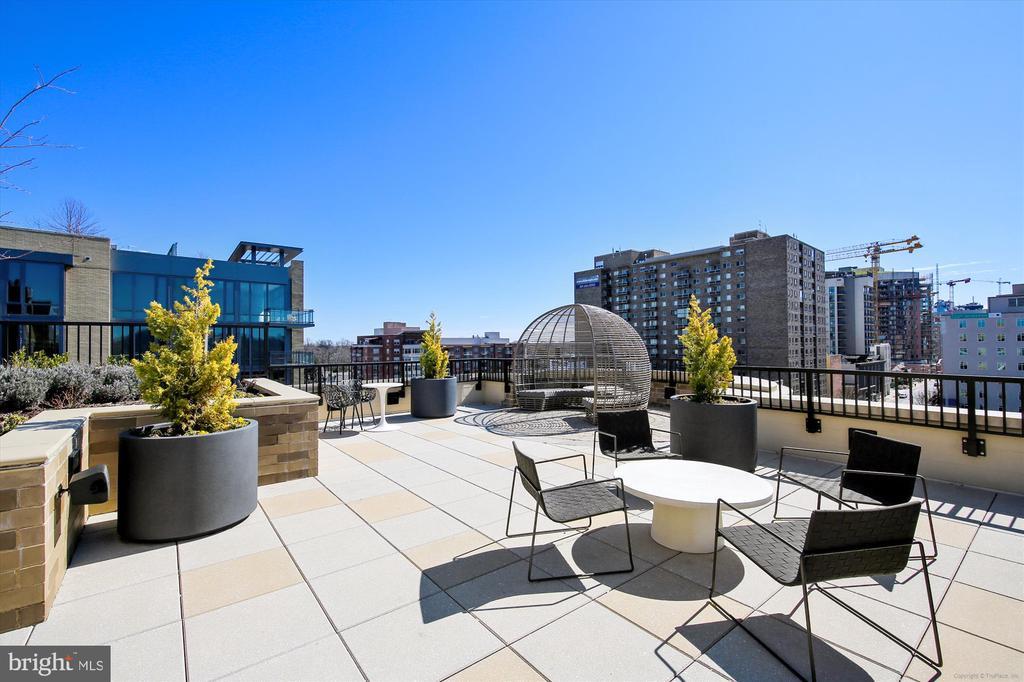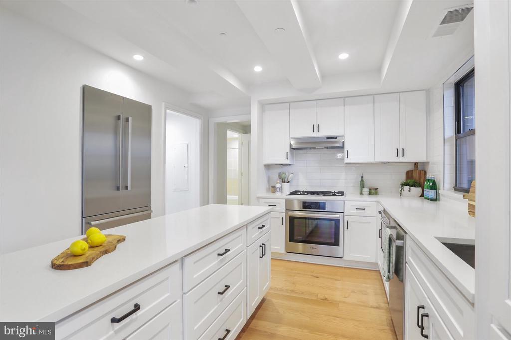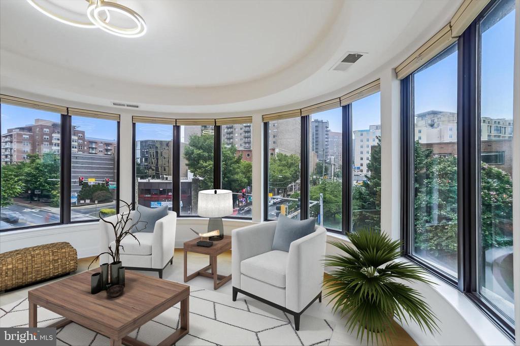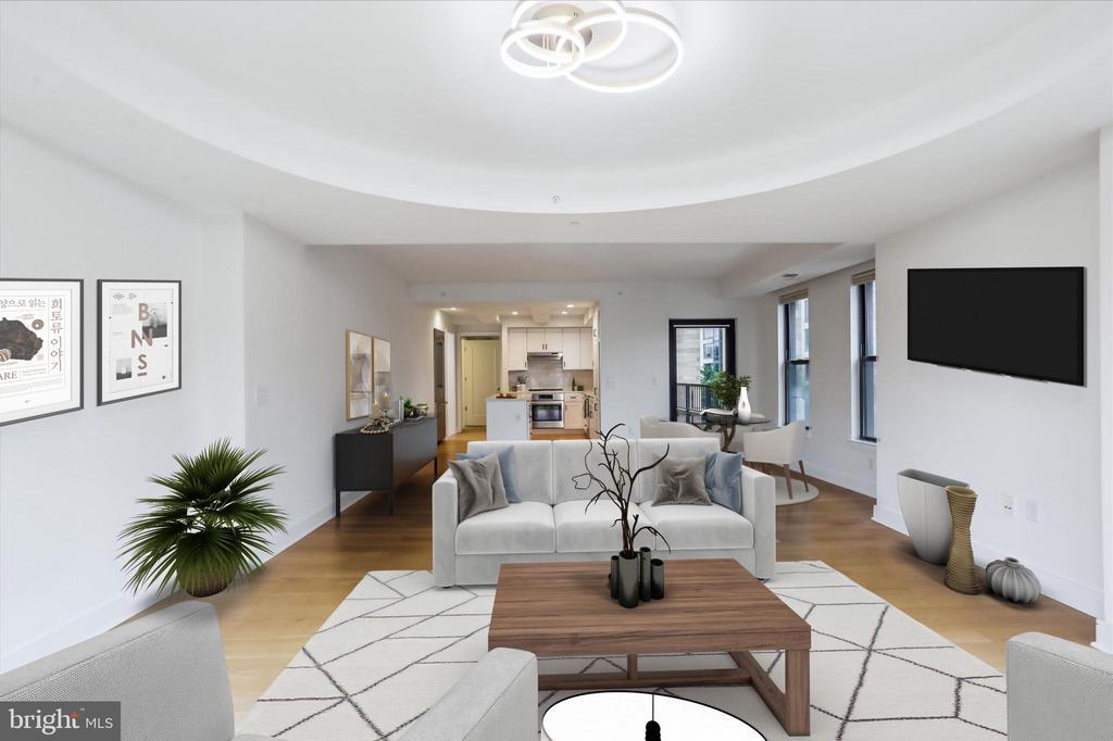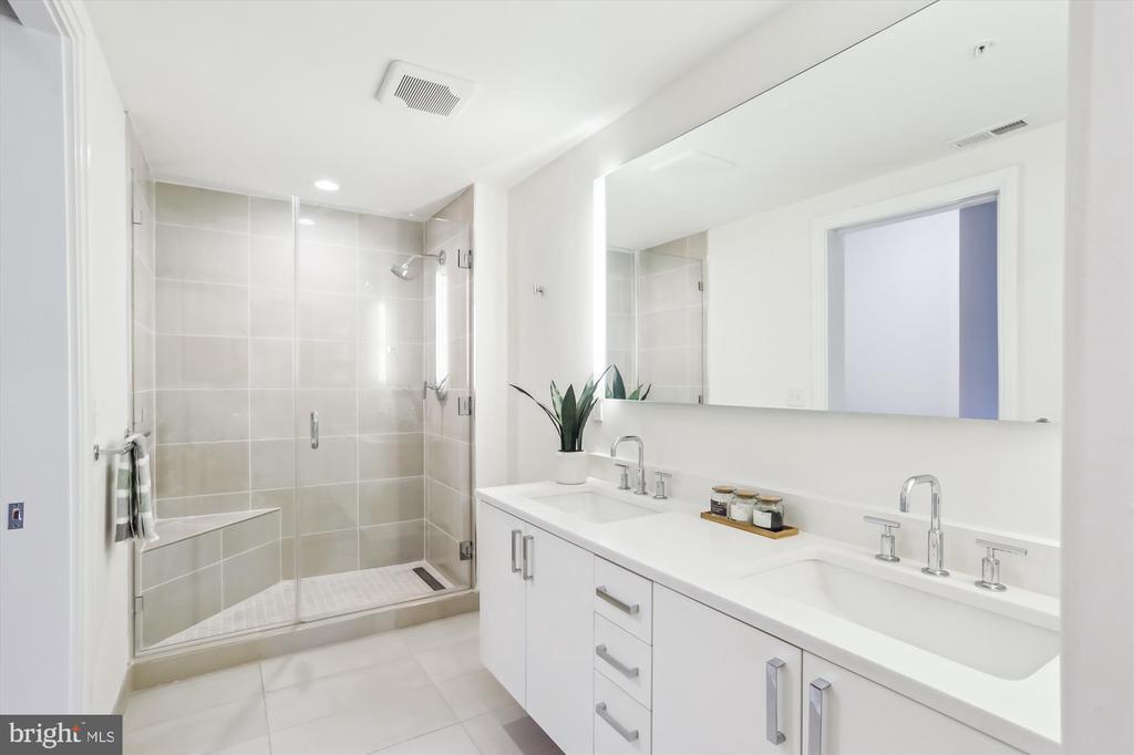 This stunning corner unit in the highly sought-after Stonehall features a dramatic curved window wall that is flooded with sunlight. The home is turnkey, showcasing freshly painted walls, new recessed lighting and fixtures, and brand-new kitchen cabinets. The beautiful floors complement the space perfectly. Enjoy top-of-the-line Bosch stainless steel appliances, gas cooking, quartz countertops, and brand new cabinets in the kitchen. The spacious owner's suite includes a cozy sitting area that can also serve as an office space, an oversized walk-in closet, and a luxurious spa bath. This unit also has a washer and dryer, and a lovely balcony. Pets are welcome! The amenity-rich building offers a front desk/concierge service, a state-of-the-art fitness center on the 2nd floor, and a party/meeting room with a terrace on the 9th floor. The expansive rooftop space, perfect for entertaining, features beautiful sunset views from the 10th floor. The luxurious lobby adds to the elegant atmosphere. EV chargers are possible to be installed, at building approval and owners expense. There is a community herb/vegetable/flower garden on the roof terrace- need basil for your sauce- snip a little from upstairs! Located in the heart of Bethesda, the building is conveniently close to the Metro and NIH. Harris Teeter is just across the street, and the Bethesda Trolley Trail for walking and biking is only a block away. The property is also on the Bethesda Circulator route, providing free hop-on, hop-off access to all of downtown Bethesda's best spots!