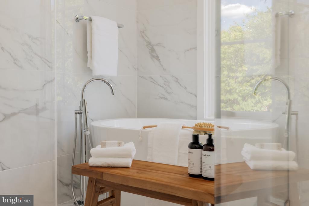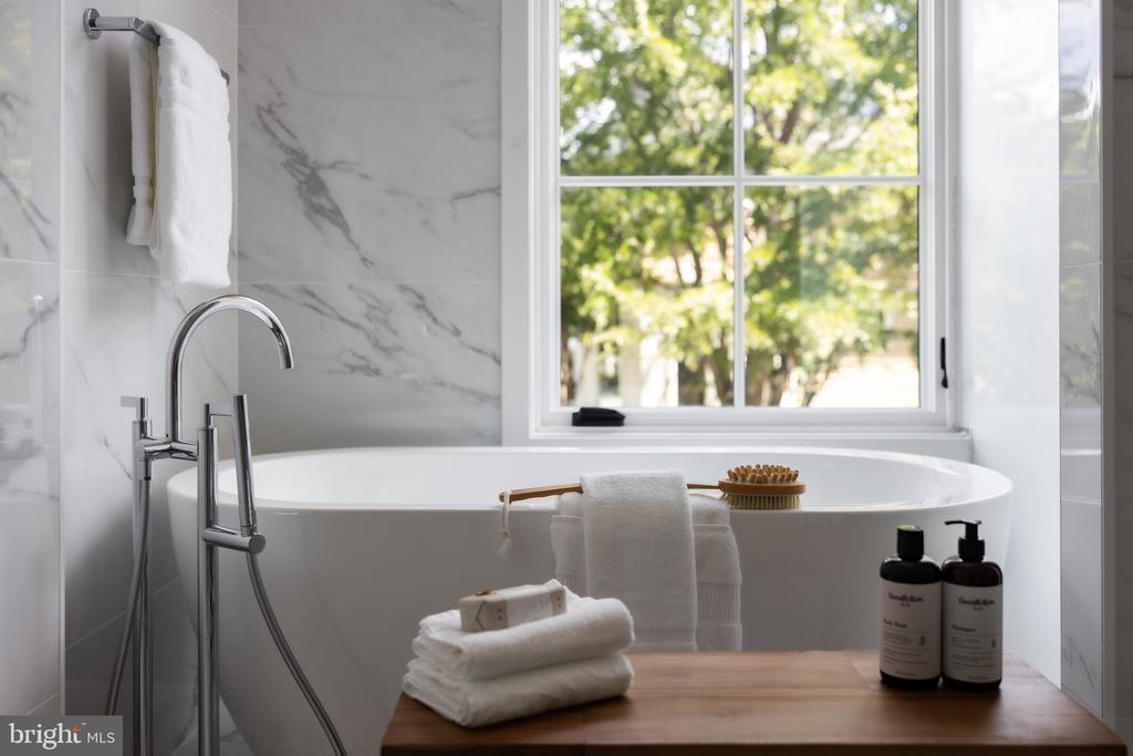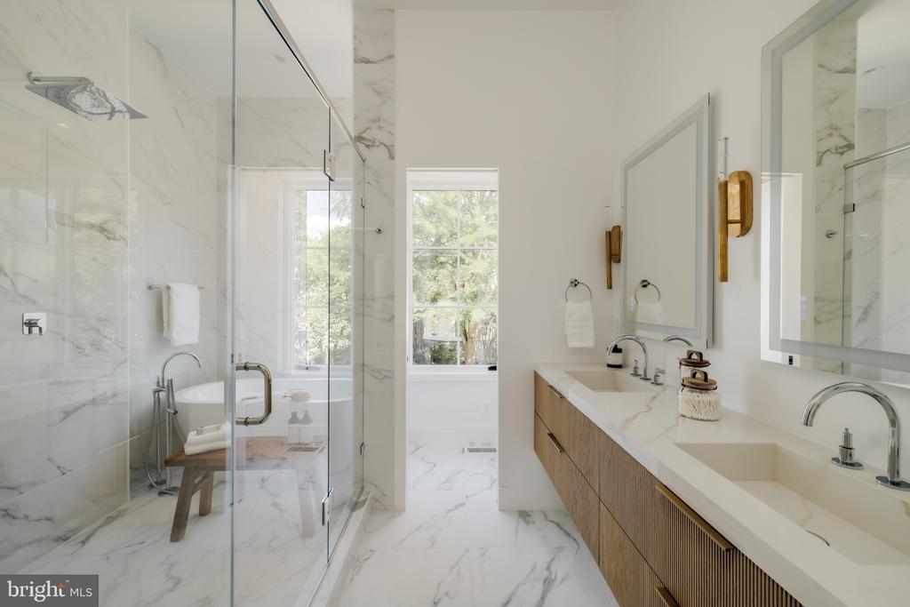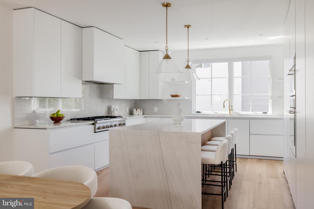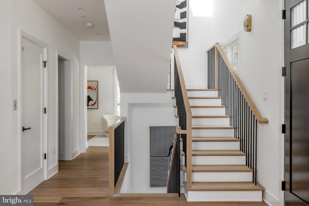 Designed with flexibility and high-end comfort in mind, this stunning residence offers over 3,000 square feet of thoughtfully crafted living space to suit a variety of lifestyles. Located just one block east of Wisconsin Avenue and a half block from Trader Joe’s, you’ll enjoy unbeatable walkability to all the dining, shopping, and entertainment options downtown Bethesda has to offer. Inside, the home features 4 spacious bedrooms, 4 full baths, and 1 elegant powder room. The open-concept layout is enhanced by wide-plank white oak flooring, soaring ceilings, and expansive windows that fill the home with natural light. The gourmet kitchen is outfitted with top-of-the-line Thermador appliances, custom Italian cabinetry, and stunning quartzite countertops with a waterfall edge. The luxurious primary suite includes a spa-like bathroom with heated floors for ultimate comfort. A large private terrace provides an ideal space for outdoor entertaining or relaxation, while the two-car garage offers added convenience. The lower level is perfect for hosting guests, offering a separate entrance for added privacy and flexibility. With customizable finishes and thoughtful design throughout, this home delivers a rare blend of sophistication, comfort, and location.