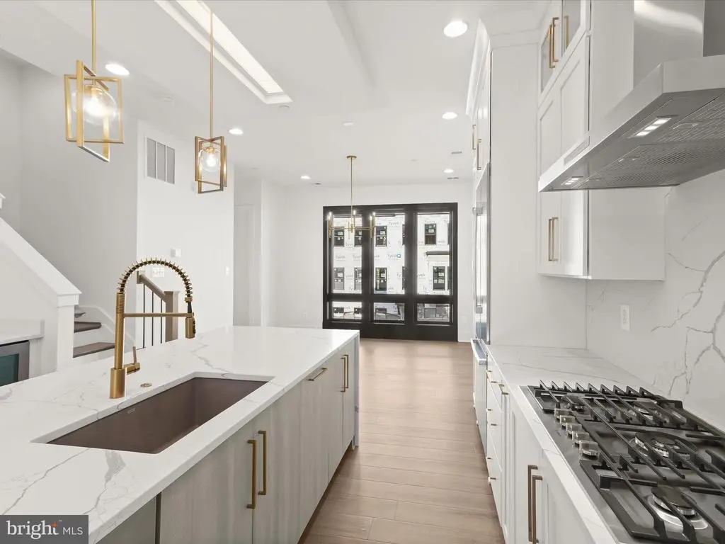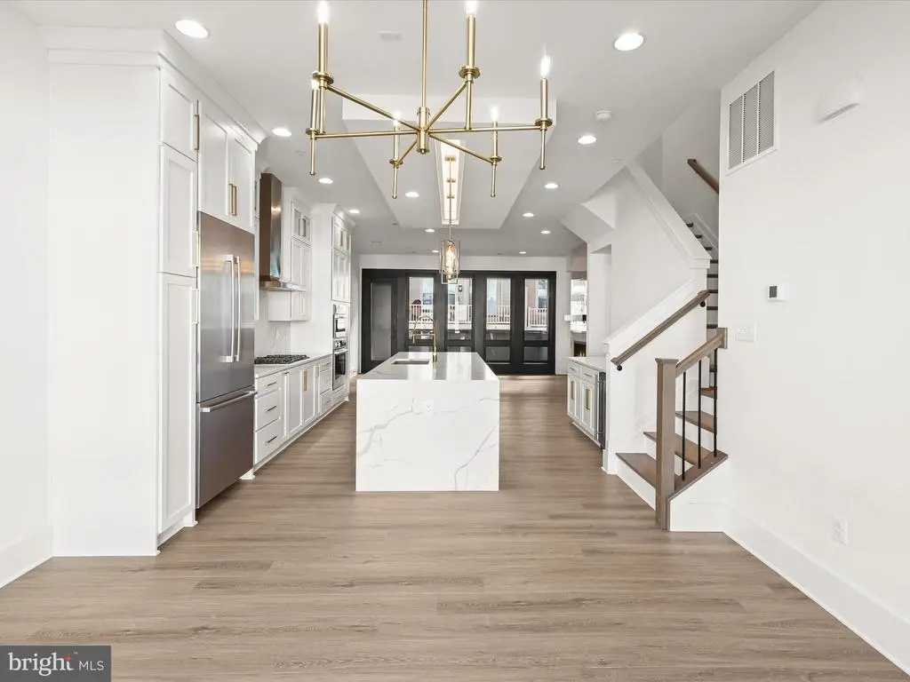 AWARD-WINNING NEW LUXURY TOWN H OME & ATTACHED RESIDENCE Welcome to this stunning four-level contemporary residence in The Grove, where uncompromised taste and unrivaled luxury set the tone for everyday living. A beautiful covered front porch with a genuine bluestone walkway and steps greets you, offering plenty of space for that special chair or two. Inside, over 2,800 square feet of thoughtfully designed living space unfolds, highlighted by soaring 10-foot ceilings on the main level and striking 7-foot black interior windows that flood the home with natural light. The heart of the home is the chef’s kitchen, a true masterpiece with custom cabinetry, quartz countertops, and a dramatic 10-foot island that becomes the perfect gathering place for family and friends. The adjoining great room seamlessly extends outdoors to a covered lanai, a relaxing spot for dining alfresco, morning coffee or entertaining guests. Upstairs, the owner’s suite offers a serene retreat with generous proportions, complemented by two additional bedrooms and a hall bath, while the entry-level studio suite and half bath provides versatility for guests, work, or hobbies. The crown jewel of this home is its extraordinary fourth level, designed as an award-winning four seasons retreat. Two sky terraces, complete with outdoor porcelain tile create an unmatched setting for entertaining or enjoying peaceful evenings under the stars. In total, the home features four levels, three bedrooms, two full baths, and two powder rooms, along with a rear-loading two-car garage. The Grove community enhances the lifestyle further with incredible amenities, including a clubhouse, fitness center, pool, walking trails, and ballpark. Ideally located in Rockville near major retailers, grocers, and commuter routes, this home represents the epitome of convenience, sophistication, and modern luxury. Come home to The Grove, and an unforgettable lifestyle experience and a new luxury town home and attached residence.
