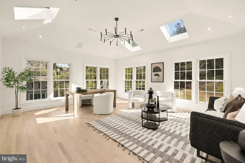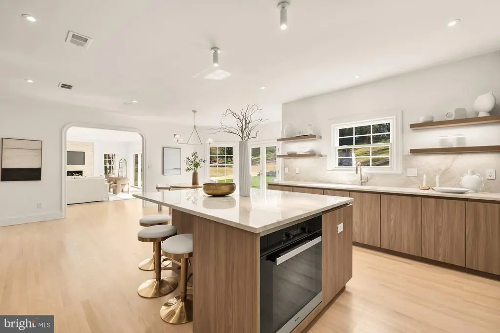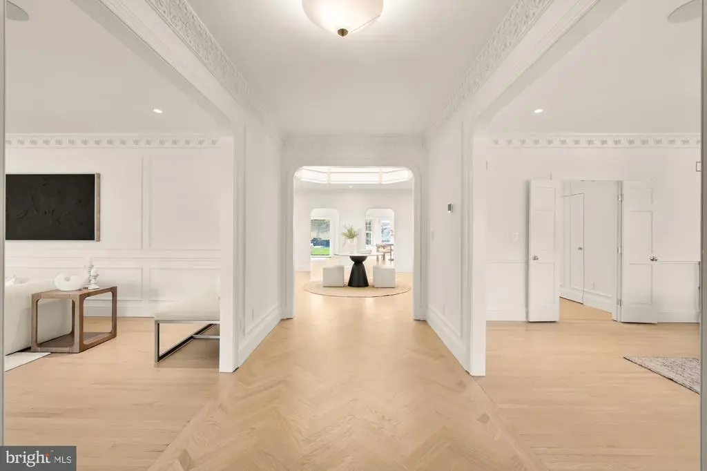 Set on two acres of landscaped grounds—masterfully designed by an award-winning landscape architect—this 9,000+ sq. ft. Georgian mansion seamlessly blends classic architecture with contemporary elegance. Originally built in 1985 and completely renovated in 2025, this estate offers a rare combination of historical grandeur and modern luxury, with cutting-edge smart-home features integrated throughout. The expansive outdoor setting includes a grand front lawn with a long circular driveway lined with trees, a stone fireplace and patio surrounded by flowering plants that sit as the centerpiece for the rear yard, and an additional inviting fire pit getaway perched up above the roof line for fantastic views. The expansive rear yard is thoughtfully designed to accommodate a future pool—an entertainer's dream. Inside, the home is all about details and amenities, with every room thoughtfully curated for a discerning buyer. It exemplifies class and elegance with ornate moldings, handpicked imported lighting fixtures, and a functional layout. The estate features 6 bedrooms, 5 full bathrooms, 1 powder room, and 5 wood-burning fireplaces, creating an atmosphere of warmth and timeless charm. The fully reimagined kitchen is a showpiece, boasting custom German-imported cabinetry complemented by Taj Mahal quartzite countertops, a butler’s pantry, and a separate back-of-house kitchen ideal for entertaining at scale. A stunning main-level study is wrapped in rich navy Farrow & Ball paint and includes a custom wet bar with handmade brass/glass shelving and a unique one-of-a-kind colorful quartzite top—equally suited for work, leisure, or entertaining. The luxurious 1,500-sq.-ft. primary suite includes a private sitting room or office, a fireplace, dual walk-in closets, and a spa-quality bath with radiant heat floors and an oversized steam shower. The walk-out lower level is filled with natural light and offers a large rec room with a fireplace, a guest bedroom with separate entrance and patio, a home gym, and a wine cellar with room for over 1,000 bottles. Conveniently located within walking distance to Potomac Village, top-ranked public and private schools, and just minutes from downtown Bethesda and D.C., this timeless estate is ready for its next chapter.