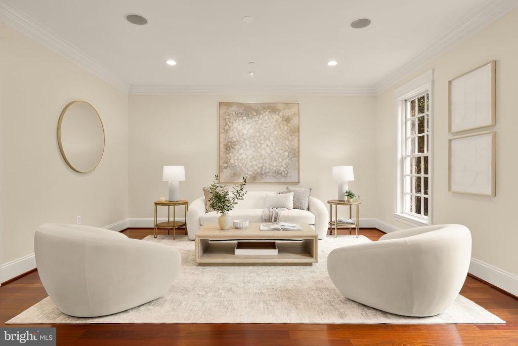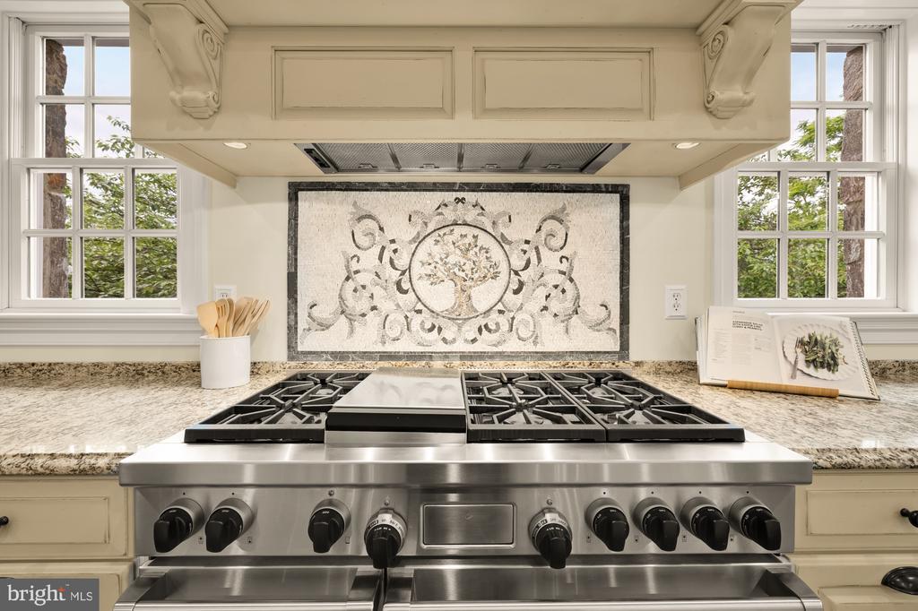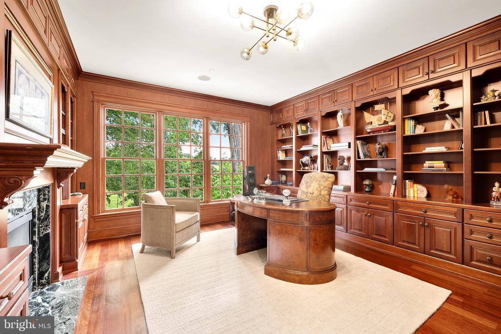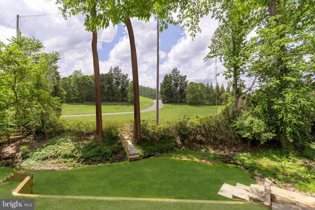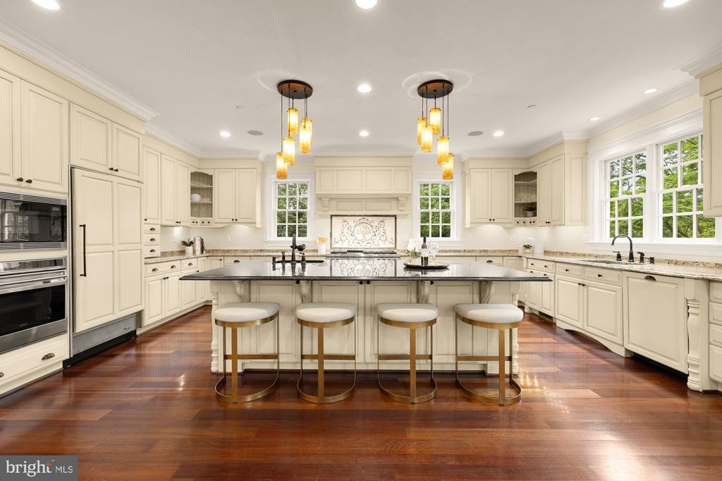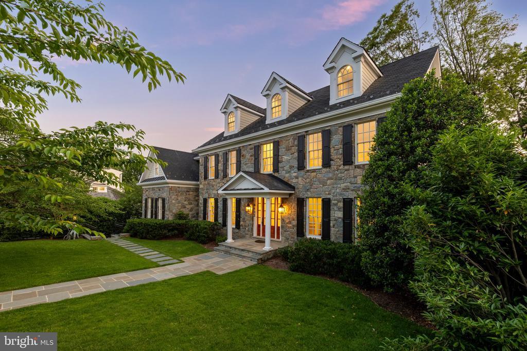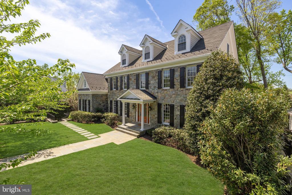 A stunning grand fieldstone colonial in a one-of-a-kind Kenwood location, 6412 Garnett Drive is a peerless example of exacting craftsmanship and luxury living. Belonging to arguably the most sought-after enclave in the Capital Region, famous for its whimsical annual display of cherry blossoms, this exquisitely renovated estate is one of only 4 homes in its rarified air to relish in sweeping, unbroken golf course views of the adjacent Kenwood Country Club. Occupying a premier lot encompassing a third of an acre, the manicured front lawn is bisected by a central flagstone walkway. Introduced by a portico and elegant glass and mahogany door, the deep foyer serves as a dignified reception area, introducing a generous 7,730 square foot floor plan equally unflappable accommodating lavish receptions as it does casual living. Formal living and dining rooms flank the entryway in a timeless center hall layout, enabling seamless entertaining flow between the two embassy-sized spaces. Central to the main level is the breathtaking great room. A soaring double-height space, a wall of Palladian windows sits above French doors to the rear deck, capturing every ounce of the verdant expanse beyond, as well as radiant sunsets that bathe the void in a warm amber glow. Within the formal wing is a stately library, surrounded by rich custom mahogany built-ins and warmed by a roaring fireplace set against panoramic views. Informal areas adhere to the most contemporary standards of true open concept living. The aspirational chef’s kitchen features a 48” Wolf commercial range, stand-alone Sub Zero refrigerator and freezer, Wolf wall oven, and 2 Miele dishwashers embedded within furniture-grade cabinets, surrounding an oversized center island with integrated seating. The butler’s pantry features upper glass cabinetry and a Sub Zero under counter refrigerator. The adjacent breakfast area is expansive and opens onto the deck to enable an indoor/outdoor connection. A comprehensive mudroom area with direct side access as well as a practical, tucked away bedroom with ensuite bath completes the main level. The broad upper level gallery overlooks the great room below and the views beyond in a spectacular fashion. Occupying an entire wing of the home, the lavish primary suite boasts a roaring fireplace and wall of rear-facing windows. A vestibule introduces the smaller of two walk-in closets and leads into the primary natural stone bath – a spa-inspired space with dual vanities, Kohler Castia plumbing fixtures, walk-in shower, jetted corner tub, heated floors and water closet. It introduces the bedroom-sized second walk-in closet with humidity control. Both primary closets feature custom built-in organizers. A princess suite and two additional bedrooms sharing a Jack-and-Jill bath and an expansive laundry room complete the upper level. A large sitting room and bedroom suite are found on the top level, featuring the roofline’s three endearing dormers and ideal for a private home office, yoga studio, or recreation space. The extra wide three-and-a-half car garage has an L-shaped workbench and upper cabinetry and accesses the home via the lower level. A second comprehensive mudroom and laundry room area bridges the transition. The central recreation room sits above grade, walking out onto the covered terrace beneath the deck and features a luxury kitchenette with custom cabinetry, wine fridge, under counter fridge and microwave and handsome fireplace. Rich in amenities, the lower level boasts a fitness room, tiered home cinema, and seventh bedroom with ensuite bathroom and walk-in-closet.An artful combination of landscaping and hardscaping cascades down from the rear deck, culminating in a custom bridge that spans over the creek and leads to the Kenwood Club. Truly exceptional to the square inch, 6412 Garnett Drive is undoubtedly one of Kenwood’s finest showcases and a one-of-a-kind opportunity.