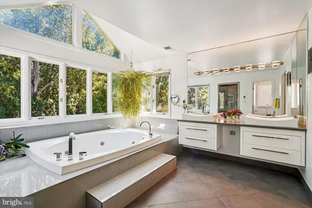 OPEN SUNDAY 11/9, 1-3PM! An Exceptional Contemporary Masterpiece On Private Cul-de-Sac! Perfectly situated at the end of a quiet cul-de-sac, backing to a tranquil wooded creek, this stunning 5-bedroom, 4.5-bathroom Contemporary Colonial offers an unparalleled blend of nature, luxury, and location. With thoughtful renovations throughout, including a brand-new roof & new skylights(2024), fully renovated gourmet kitchen (2019) , stylishly remodeled powder room (2018), and primary bath(2009), upgraded Thompson Creek windows (including new updates in 2025), and a new attic fan (2024), this home is truly move-in ready. And best of all—there's no HOA! A charming flagstone walkway leads into a striking, modern foyer where soaring ceilings and skylights welcome you into the sun-drenched, showstopper living room. Floor-to-ceiling windows flood the space with natural light and showcase wooded views, while a commanding stone fireplace anchors the room with style and warmth. Just off the foyer is a renovated powder room with a sleek vanity and oversized mirror, while a hallway leads to the oversized two-car garage and a sunlit laundry room with a storage closet, and built-in shelving. The formal dining room, enhanced by large replacement windows overlooking lush greenery, sets the stage for elegant gatherings. The fully renovated modern gourmet kitchen is a chef’s dream, boasting a picturesque breakfast nook surrounded by an oversized scenic window, top-of-the-line stainless steel appliances, and a sleek quartz center island with a cooktop and breakfast bar. Craftmade cabinetry, a deep sink, and abundant storage (including pantry closet, pull-out drawers, spice racks, and an appliance garage) ensure effortless organization. Open to the kitchen, the family room offers a cozy atmosphere with access to the private deck—an ideal space for relaxing or al fresco entertaining surrounded by a peaceful wooded setting. Upstairs, a dramatic open hallway overlooking the striking living room and foyer below adds an architectural wow-factor—creating a light-filled, gallery-like feel that is both airy and grand. The spacious primary suite features vaulted ceilings, and multiple windows. A custom dressing area leads to the bedroom and includes several walk-in closets, built-in drawers, custom shelving, and wall closets for an abundance of storage. The renovated primary bath is a true standout, with a vaulted ceiling, heated floors, and wide windows overlooking the backyard. A heated ceramic tile floor, Jacuzzi tub, dual vanities with vessel sinks, a walk-in shower, and private water closet bring spa-like comfort to everyday living. Three additional bedrooms and two full baths are situated at the other end, offering flexible living for guests or family members while maintaining the seclusion of the primary suite. Each bedroom offers double-door closets, ceiling fans, and large windows. The updated bathrooms include features such as a double vanity, new toilet (2024), and a brand-new window (2025). The finished walk-out lower level features a large recreation room with built-in bookshelves, a wet bar, a beverage fridge, and a pool table, which conveys with the home. Additional features include a spacious fifth bedroom with large window views, a dedicated exercise room, a full bath, a large storage/utility room, and a door leading directly to the backyard for convenient access. Whether you're hosting friends, hiking scenic trails at nearby Cabin John Regional Park, or commuting easily into the city, this home offers the best of all worlds. Enjoy access to miles of trails, ball fields, playgrounds, and recreational amenities just minutes away. A multitude of premium shopping and dining options just minutes away make errands and evenings out a breeze, while close proximity to I-270 and the Capital Beltway ensures easy access to Bethesda, Rockville, and Washington, D.C. Don’t miss out!
