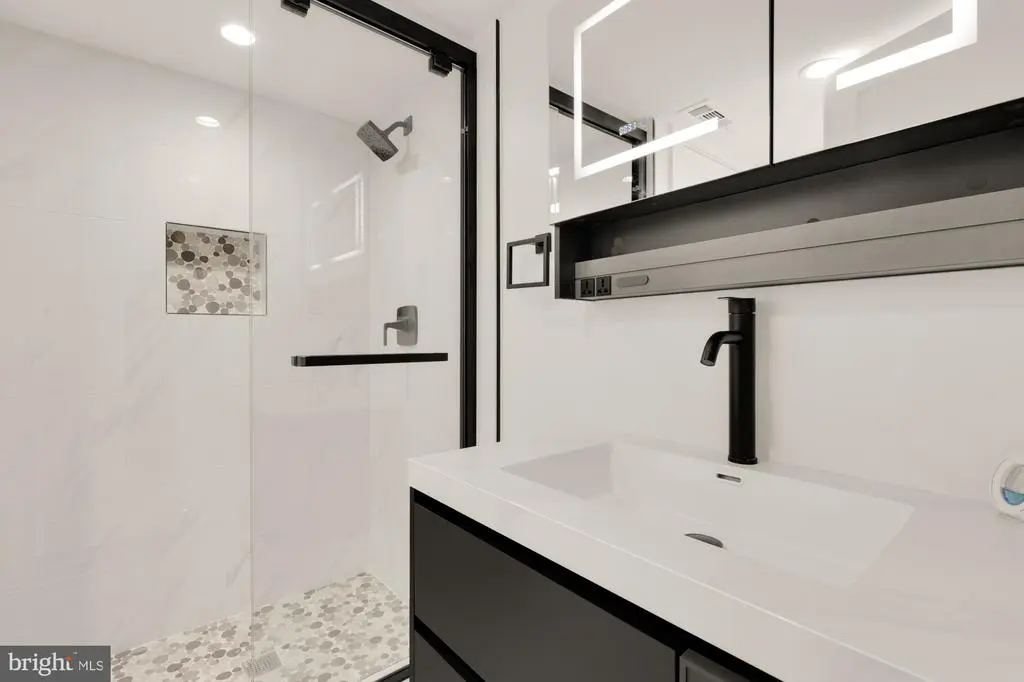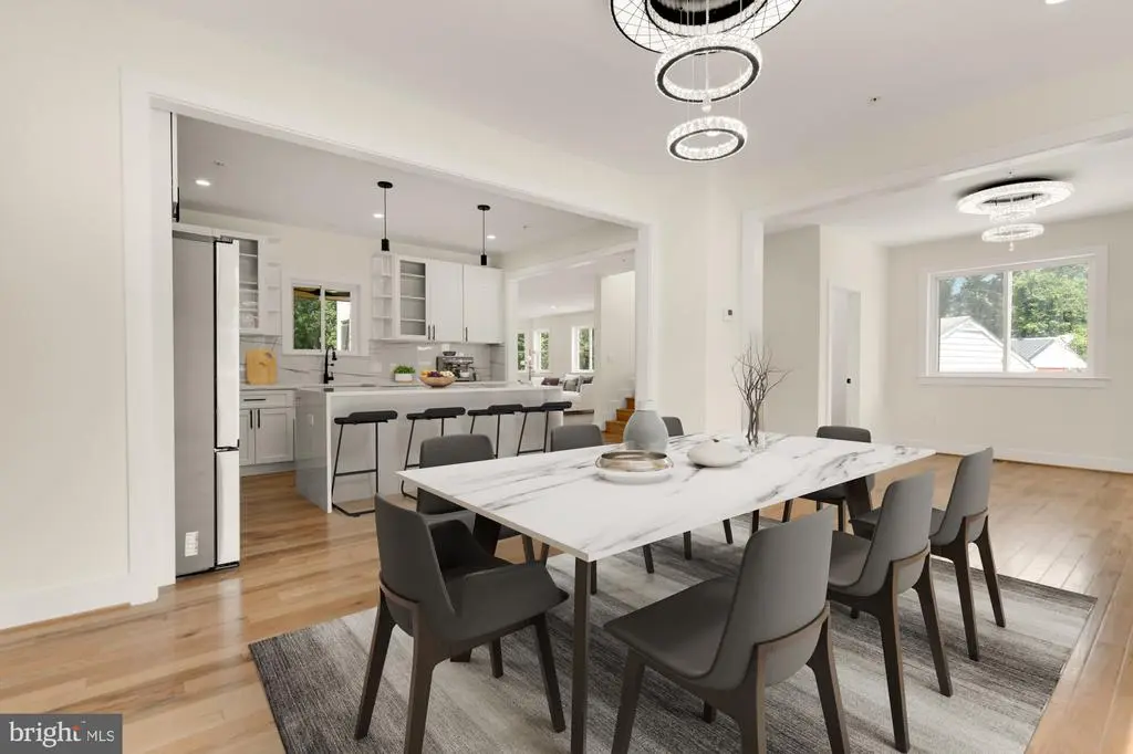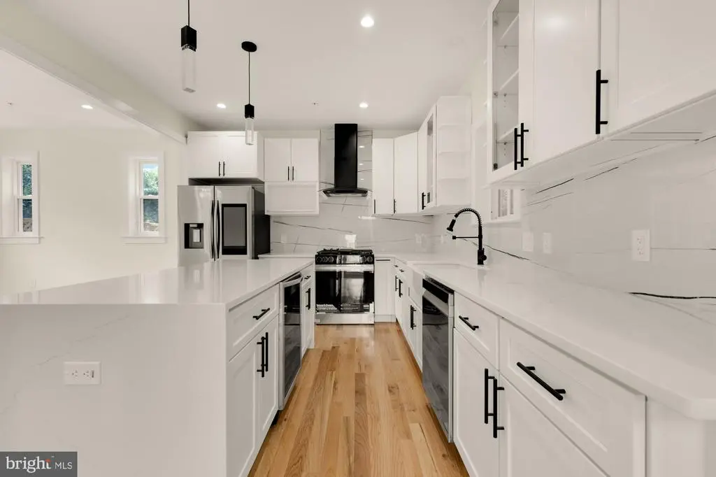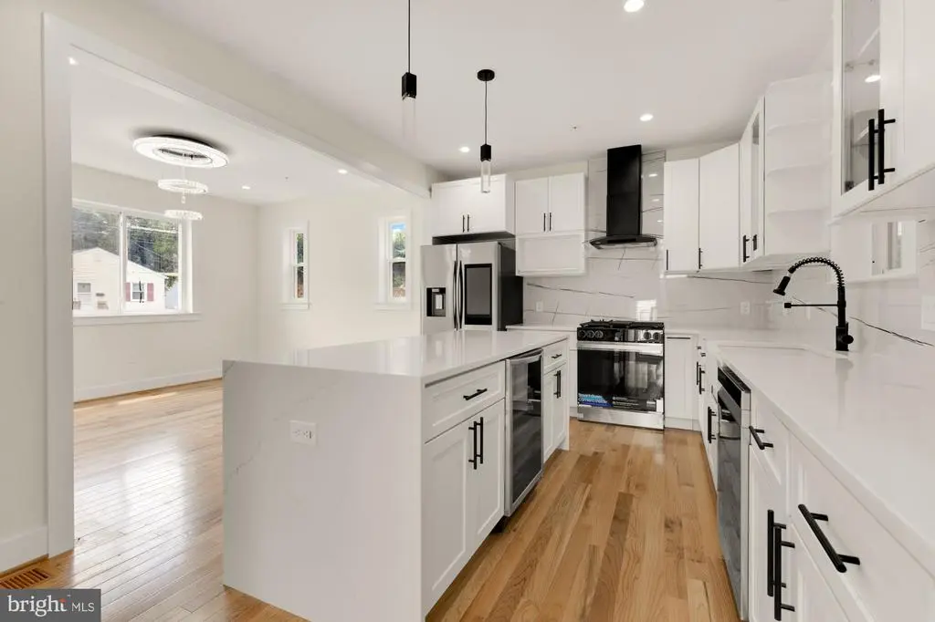 Clean & Contemporary: New Construction. Timeless Location. Exceptional Living. Condition, Components, and Community come together in this 5-bedroom, 4.5-bath new-construction contemporary home offering over 4,200 square feet across four finished levels. Ideally located in Rockville’s historic West End, this rare opportunity places you just steps from parks, the Rockville Swim & Fitness Center, and Rockville Town Center. A private driveway and welcoming front portico lead into a spacious Entry Foyer and an open-concept Main Level featuring: Expansive Living/Great Room with gas fireplace Elegant Dining Room Chef’s Kitchen with quartz countertops, eat-in island, quality cabinetry, and high-end appliances Powder Room Covered rear Patio — perfect for entertaining or relaxing Oversized windows on every level fill the home with abundant natural light. The Second Level offers: Three Bedrooms and two full Bathrooms Laundry & Storage Room Large rear Balcony accessed from both the Primary and Second Bedrooms Wide front hallway leading to a second front Balcony, perfect as a reading nook or gallery space The Primary Suite impresses with: Double closets Gas fireplace Luxe En-Suite Bathroom with soaking tub, glass-enclosed walk-in shower, and dual vanities Bedroom #2 also enjoys semi-private en-suite access to the second full Bathroom. The Top Level is a flexible and private space with its own full Bathroom — ideal for a 4th Bedroom, Home Office, Gym, or Playroom. The Fully Finished Lower Level features: Separate rear entrance Spacious Rec/Family Room with Wet Bar (sink, wine/beverage fridge, and cabinetry). Could also serve as an In-Law Suite. 5th Bedroom 4th full Bathroom Second Laundry Closet Additional Storage and Mechanical Room Step outside to enjoy a large, level, fenced-in backyard. Combined with the covered patio and upper-level balconies, this home offers multiple outdoor spaces for relaxing and entertaining. Situated just off Martin’s Lane and Washington Street, 512 Bickford Avenue offers the charm and convenience of an urban village lifestyle. One of the only opportunities for brand-new construction in the historic West End, the home is just around the corner from Welsh Park (playgrounds, green space, skate park) and within walking distance to Rockville Town Center’s restaurants, shops, and entertainment. Metro, MARC, and the Courthouse are less than a mile away, with Trader Joe’s just a half-mile down the road.