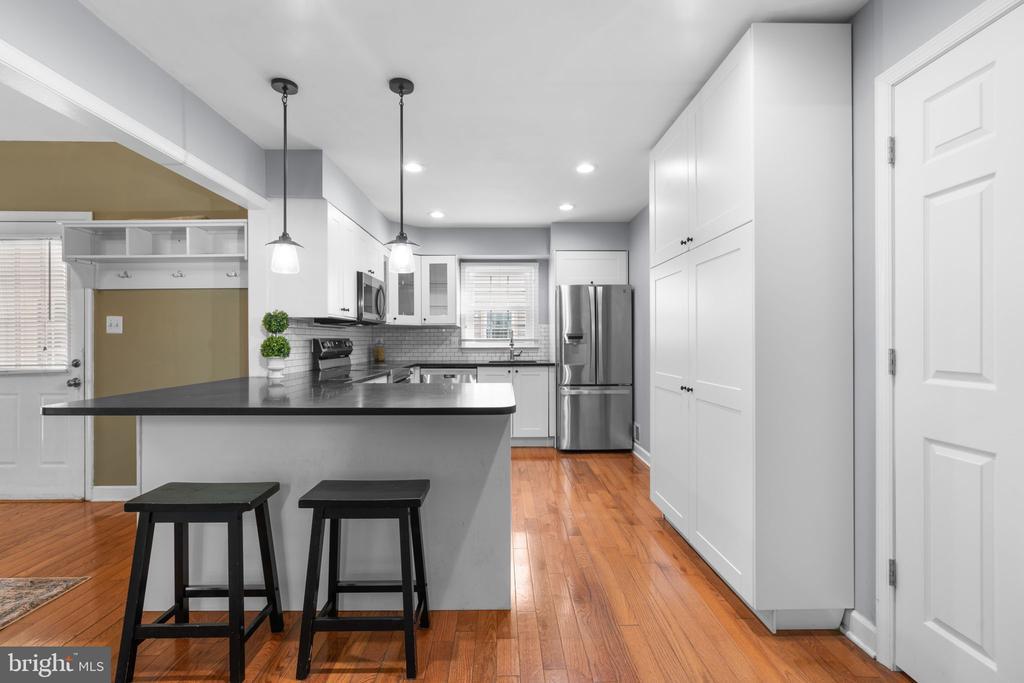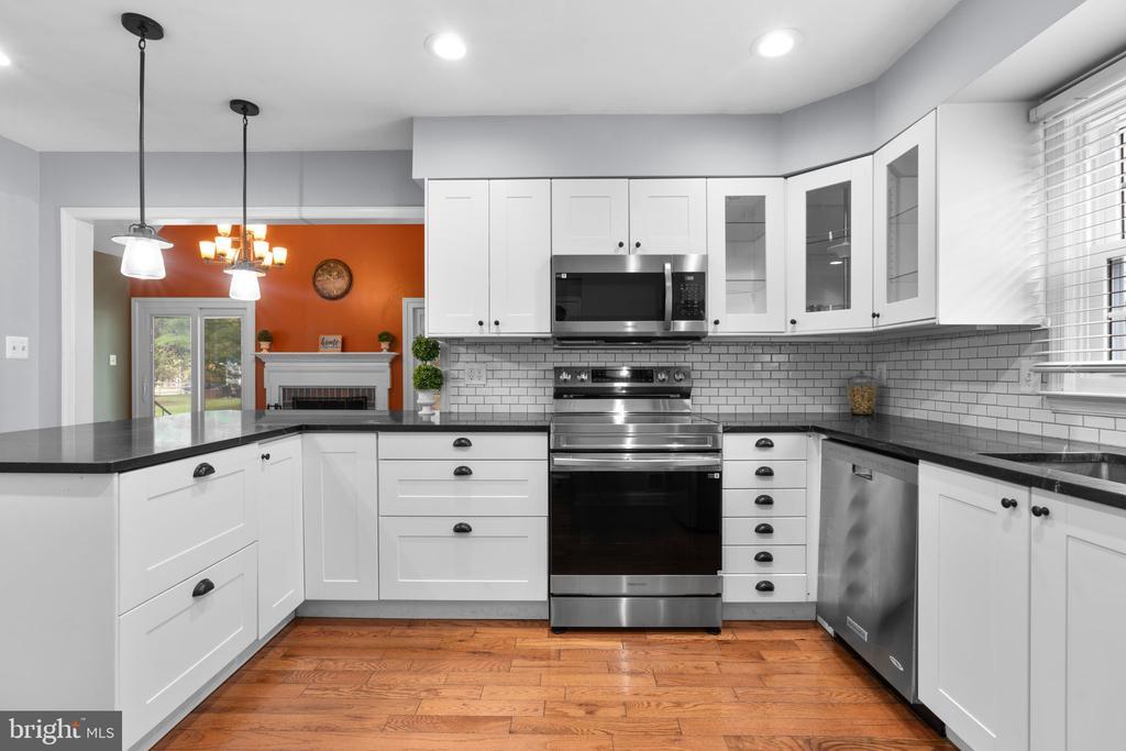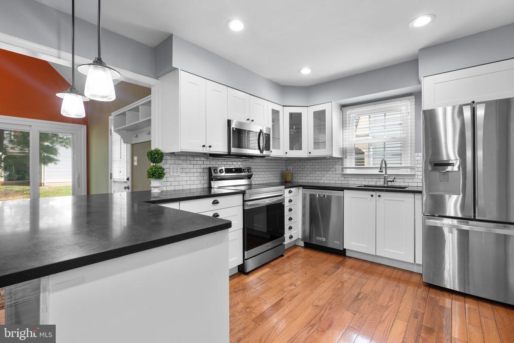 Lovely Colonial with Shaker roof in the Heart of Gaithersburg. Move right into this charming home! New carpet, neutral paint, updated kitchen, updated windows and more. Hardwood floors in living and dining rooms. The family room has vaulted ceilings, a brick fireplace and two sliding doors to access the low maintenance backyard & patio. Updated kitchen with white cabinets, stainless steel appliances, Quartz countertops, and a separate pantry. Great layout in the kitchen with a large breakfast bar, and it flows right into the dining and living room areas. This gorgeouskitchen is sure to be a gathering place! Covered access to the garage off of the family room. Large primary bedroom with en-suite offering double sink vanity and walk-in closet with built in storage. Two additional bedrooms plus a hallway bathroom. The finished lower level has new LVP, and rec room. There is ample space for a home gym. 1 car garage plus driveway that can fit 2 additional cars, and more off street parking available. Enjoy everything the community has to offer like walking trails, green space, playground, tennis courts and a pool. Conveniently located-minutes from Shady Grove Metro, with easy access to the ICC, 370, 270, grocery stores and shopping . This home has it all!