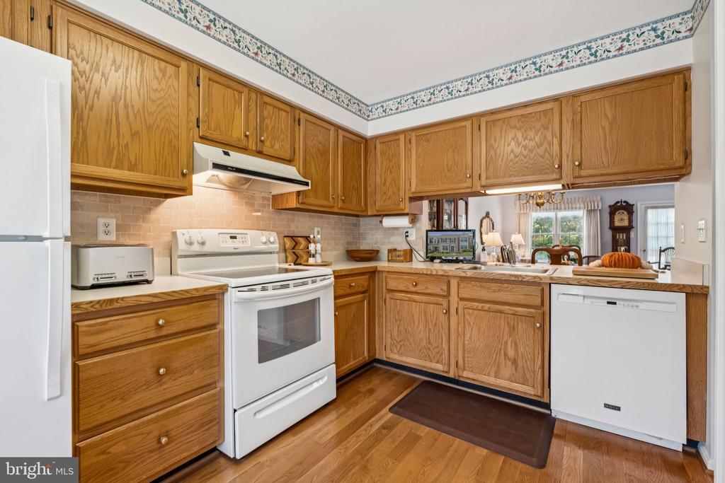 Welcome to Holly Pointe! This well-priced 3 bedroom, 2 full and 2 half bath townhome offers comfort, convenience, and has been lovingly cared for by it's owner. The main level features a spacious kitchen with solid wood cabinetry, white appliances, tile backsplash, pantry, and a cozy eat-in area. Beautiful hardwood floors flow through the kitchen and foyer. The open living/dining area is spacious and anchored by a wood burning fireplace with large windows overlooking the private stone patio and fully fenced backyard. Upstairs, the primary suite includes two large closets and an ensuite bath. Two additional bedrooms share a second full hall bath, providing plenty of space for family or guests. The finished lower level adds great flexibility with a large recreation room, half bath, huge storage area, and closet. Major updates to the home include a newer roof, windows, HVAC system, and French doors leading to the backyard. With tree views, plenty of storage, and a sought-after Montgomery Village location, this home is move-in ready and waiting for its next chapter!