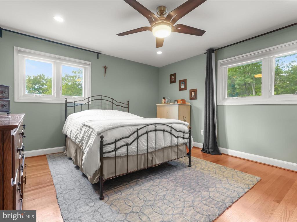 Tub Shower, Stall Shower, CeilngFan(s), Chair Railing, Entry Lvl BR, Master Bath(s), Recessed Lighting, Upgraded Countertops, Wood Floors