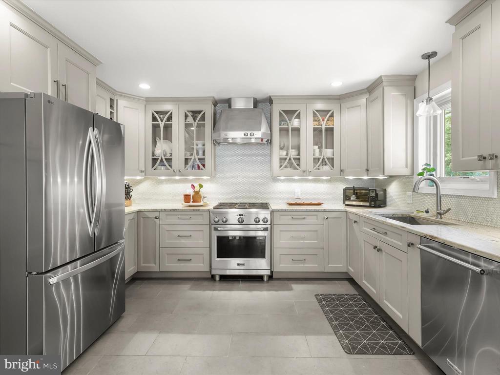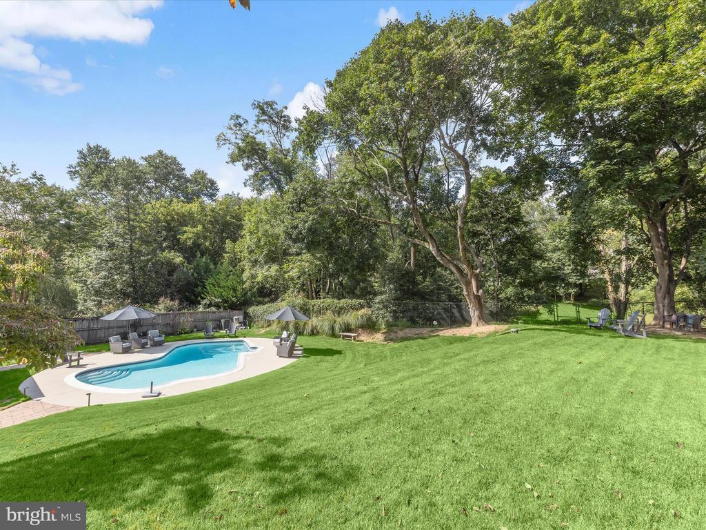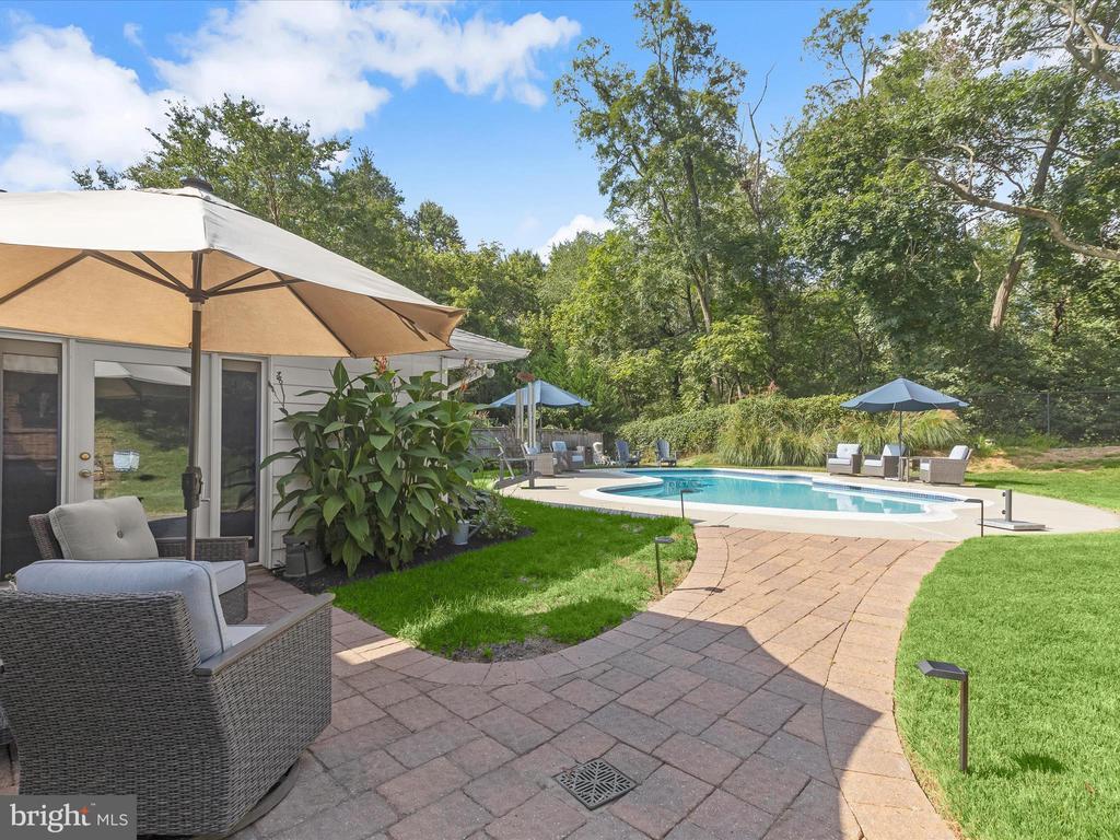 Beautiful brick rancher in the Valleybrook community offers a rare combination of thoughtful updates, spacious living, and a nearly half-acre lot with a resort-style backyard that backs to a serene conservation area. The home’s well-maintained exterior and inviting curb appeal set the stage for what lies inside. Step into the living room, where hardwood flooring flows seamlessly through much of the main level. Three large windows frame views of the lush front yard, while a cozy fireplace anchors the space. The living room opens to a dining room and renovated kitchen, complete with granite counters, to-ceiling cabinetry with display cabinets, stainless steel appliances including a gas range, and a window above the sink that overlooks the backyard and pool- a truly idyllic setting. Between the living room and kitchen, the dining room is accented with chair railing and an updated light fixture, flowing naturally into the sunroom, perfect for relaxation or quiet reading. The main level includes three bedrooms, highlighted by a primary suite with a renovated bath featuring a marble tile wall surround and marble shower. Two additional bedrooms share a full hall bath with a stylish new vanity, and many closets throughout the home include built-in organizers for convenience and efficiency. The expansive lower-level family room offers direct access to the backyard and is accompanied by a fourth bedroom and half bath with an updated vanity. From here, the garage, laundry room, and driveway are easily accessible, providing functional everyday living. Outdoors, the backyard is a private oasis with a sparkling pool, paver walkways and patios, and ample green space shaded by mature trees, including a blooming dogwood, creating a sense of tranquility and retreat. The location combines suburban comfort with convenient access to Silver Spring’s amenities. Residents enjoy nearby shopping centers, while outdoor enthusiasts can explore Brookside Gardens and Wheaton Regional Park with walking trails, sports facilities, and open green spaces. Commuters benefit from easy access to major thoroughfares including New Hampshire Avenue (MD 650), Colesville Road (US 29), I-495, and I-95, connecting quickly to downtown Silver Spring, Washington, D.C., Baltimore, and beyond.