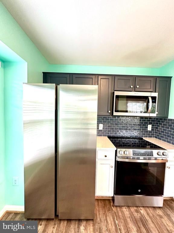 Welcome home to this spacious Penthouse in the Kentlands! Featuring bright, natural lighting, hardwood floors, and vaulted ceilings. Enter into the spacious living room, featuring a wood burning corner fireplace with hearth, and an extra wide sliding glass door leading to the balcony, the perfect place to enjoy a warm cup of coffee every morning! Enjoy family dinners in the dining room featuring hardwood floors and track lighting. Escape to the main bedroom suite that features plush carpeting, cooling ceiling fan, and a large walk in closet with custom, built in shelving! Also includes an in-suite bathroom with dual sink vanity and a soaking tub with shower combo. Enjoy easy access to the balcony from the additional balcony door in your bedroom. Take the stairs to the upper level loft with a balcony overlooking the main living area. Featuring plush carpeting, skylights, ceiling fan, and access to the washer and dryer, this is the perfect space for an additional living area or home office! The Kentlands offers many amenities including an outdoor pool, tennis courts, basketball courts, pickleball, gym, and a clubhouse! There is one assigned parking spot with the unit and plenty of visitor parking. Conveniently located near multiple shopping and dining destinations - do not miss this one!
