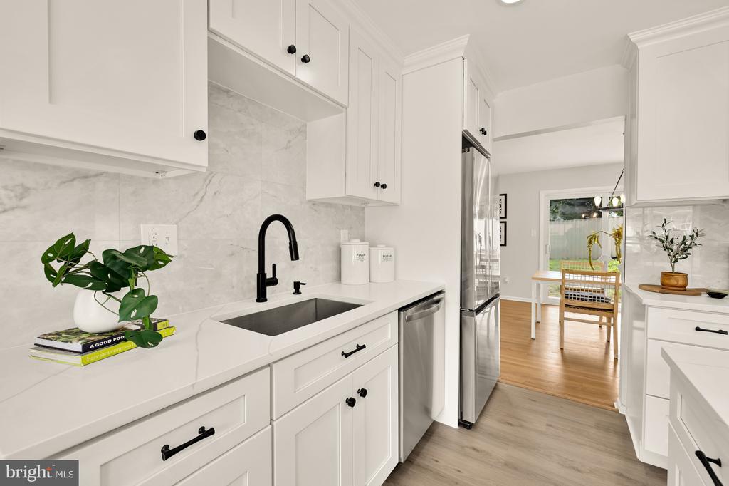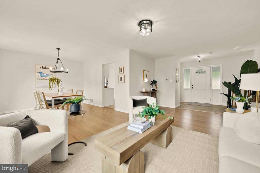 Imagine coming home to a place where every detail feels just right. Welcome to your newly renovated split-level retreat in the heart of the Franklin Knolls community of Silver Spring—a home that blends modern comfort with timeless style. As you step through the front door, you’re greeted by rich, newly refinished solid hardwood floors that stretch across the main and upper levels, grounding the home in warmth and elegance. The living room glows with natural light streaming through large windows, creating a bright and welcoming space. Just beyond, the formal dining area flows effortlessly into a beautifully remodeled kitchen—a true centerpiece, featuring a quartz-topped center island, soft-close cabinetry, stainless steel appliances, a chic tile backsplash, and sleek luxury vinyl tile (LVT) flooring. A side entrance leads conveniently to the driveway, making unloading groceries a breeze. Step outside, and you’ll find an expansive, fully fenced backyard, perfect for weekend barbecues, kids at play, or pets basking in the sun. Whether you're hosting or unwinding, this outdoor space is your personal haven. Upstairs, three generously sized bedrooms await, including a serene owner’s suite with its own private bath—fully renovated with modern vanities, updated tilework, and designer fixtures. Two additional bedrooms and a stylish full bath complete the upper level, offering comfort and functionality for all. Downstairs, a cozy family room provides the ideal spot to relax and recharge. Tucked away is a fourth bedroom with its own en-suite bath—a perfect setup for guests, in-laws, or an au pair. The dedicated laundry room adds everyday ease, and the finished basement features a spacious rec room and versatile fifth bedroom. With off-street parking, a newer roof, fresh light fixtures throughout, and easy access to I-495, this home offers so much more than just a place to live. You're only a short drive from downtown Silver Spring, where vibrant dining, shopping, and entertainment options await. And with the upcoming Purple Line nearby, your commute—and your connection to the greater D.C. area—is about to get even easier. And when the summer sun is blazing, cool off with a membership to the Franklin Knolls Community Pool, a true neighborhood gem. It’s more than just a pool—it’s a hub of warm-weather fun, with food trucks, a festive luau, dive-in movie nights, and options for the kids like splash camp and swim lessons. This isn’t just a house. It’s the start of your next chapter. Welcome home.