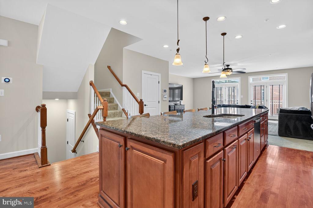 Stunning 4-Level Townhome – Approximately 3,750 Total Sq. Ft. Welcome home to hardwood floors, fresh paint, power-washed decks – move-in ready home. 4 BR / 3.5 BA / 2-Car Garage. Ground Level:Welcoming entry with a large rec room, HUGE storage space, and direct garage access. Main Level:Light-filled, open-concept living! Enjoy a chef’s kitchenwith oversized island, top-of-the-line appliances, separate dining room, and bar area. The grand living room opens to an oversized deck with gas line—perfect for grilling! Bedroom Level:Relax in the luxurious primary suitewith double walk-in closets, double vanity, and spa shower with dual shower heads. Convenient laundry on bedroom level, plus two additional bedrooms and full bath. Top Floor:Private 4th bedroom with en-suite bath, cozy den, and rare rooftop deckwith gorgeous views. Community has resort-style amenities:pool, gym, clubhouse. Prime location:Watkins Mill Town Center, new 270 access, MARC train, shops & parks. Spacious, stylish, and convenient — this home has it all! This home offers the perfect balance of luxury living and convenience — all with low-maintenance perks and tons of space to spread out.
