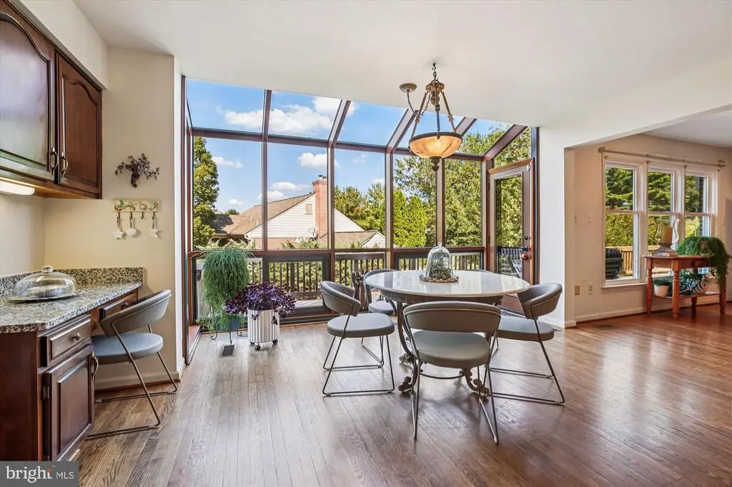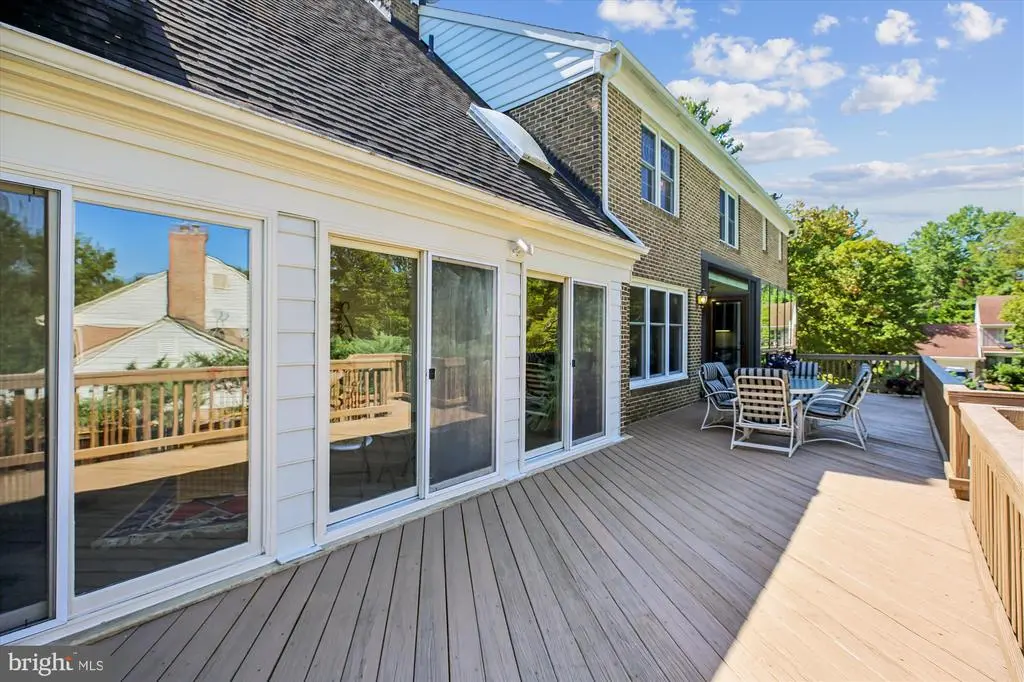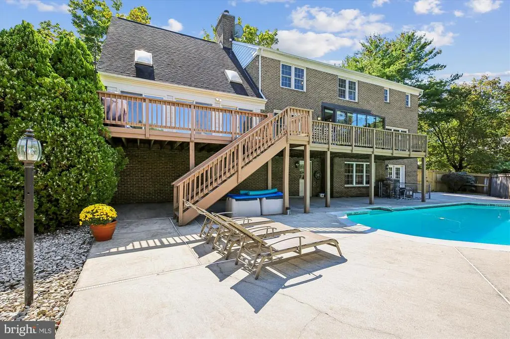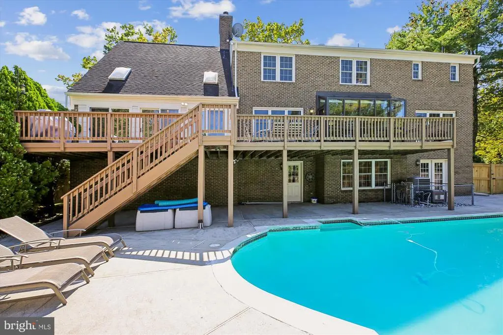 Welcome to 9537 Fox Hollow Drive STUNNING MITCHELL & BEST HOMES IN DESIRABLE BEDFORDSHIRE COMMUNITY! With View of a tranquil pond, This amazing 5-bedroom, 4.5-bathroom home spans over 4,525 finished square feet. Highlights include an enclosed Mitchell & Best's signature sunroom with vaulted ceiling and skylight, a walkout basement, a large deck overlooking a beautiful Pool with a fully fenced yard .This home has been updated through the years such as Heating & Cooling (2018), New Kitchen Aid Cooktop (May 2025), New GE Profile Refrigerator (2024), Bosch Dishwasher ,(2016),New Maytag Washer & Dryer (2025)Hot water Heater (2019) New Basement Doors (2025) ,Master Bedroom & 5th BR or sitting area With New Carpet , All Exterior windows have been replaced with PELLA Windows (2015), and Roof (2001). The welcoming foyer with chair molding leads you to a French door opening to a spacious office with hardwood floor and chair molding, as well as a beautiful formal living room with hardwood floors, adjacent formal dining room also with hardwood floors & chair crown molding overlooking the backyard, along with numerous windows that flood the space with natural light. The open-concept kitchen offers granite countertops, with a beautiful breakfast area which flows seamlessly into the cozy family room. Spacious Family room with Mitchell & Best signature design featuring a striking stone-front wood-burning fireplace and french doors opening into the sunroom with vaulted ceilings, brick wall and skylights. A large wood deck spans the entire back of the house extending the living space and providing effortless outdoor entertaining space. The primary suite offers two walk-in closets and an oversized en-suite bath with double vanities, a jacuzzi tub and a separate shower with floor-to-ceiling tiled walls and a glass door. A versatile sitting room off the primary suite provides additional space, ideal as a second office, nursery, or extra storage. Three additional well-sized bedrooms, two more full baths, with ample natural light and a large linen closet plus Large Laundry room with window and built-ins with New Washer & Dryer Complete the upper level. The walk-out lower-level features an open recreation room with new French doors leading directly to the rear yard and the pool area, complete with a 4th full bath,Sauna, and a bonus room with large walk-in closet with window and large Storage room with access door to the backyard . The neighborhood. Conveniently located near top-rated Wayside Elementary School, Hoover Middle School, and Churchill High School, as well as minutes from the Potomac Community Center, Potomac Village shops and Falls Rd golf course.