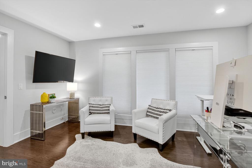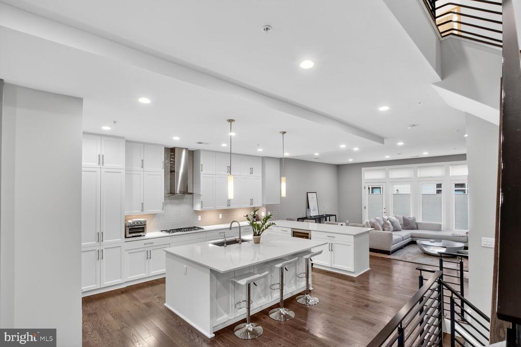 Sophisticated Townhome Living in Grosvenor Heights! Embrace the ease of a true “lock-up-and-leave” lifestyle in this stunning EYA-built elevator townhouse. Beautifully appointed and thoughtfully designed, this home shows exceptionally well. Situated on Barlow Place, one of the community’s most coveted streets, you’ll enjoy a quiet, tucked-away location with great neighbors and views of community green space. This four-bedroom, three-and-a-half-bath residence has been meticulously outfitted with top-of-the-line finishes. Elegant iron railings, custom kitchen cabinetry, and quartz countertops set the tone for a home that is both stylish and functional. The chef’s kitchen is a true showpiece, featuring a five-burner gas cooktop, wall oven, built-in microwave, counter-depth refrigerator with custom panels, and a massive quartz island. Additional counter seating provides space for up to eight people. Both the living room and dining room showcase floor-to-ceiling windows with access to outdoor decks, while a gas fireplace and designer lighting enhance the ambiance. Upstairs offers a warm and inviting primary suite with custom-designed dual closets and a spa-inspired bath, along with two additional bedrooms, a full bath with an upgraded soaking tub, and a conveniently located laundry room. On the entry level, a versatile flex room with a private full bath can serve as a guest suite, home office, fitness studio, or second family room. A Control4 Smart Home System places lighting, sound, TV, and security right at your fingertips. The rooftop terrace is a private retreat, fully equipped with every upgrade: built-in gas grill, dishwasher, mini-fridge, prep space, retractable awning, gas fireplace, and wood-look tile flooring. Designed for both entertaining and relaxation, it’s perfect for al fresco dining, game-day gatherings, or simply enjoying the sunset. The rear-entry garage accommodates two cars and offers direct elevator access—making it effortless to load luggage, groceries, or packages without ever climbing a step. A mudroom with a large storage closet connects the garage to the home for added convenience. Set within Grosvenor Heights, the location offers the perfect balance of tranquility and connectivity. Stroll the lush walking paths of Fleming Park, the Bethesda Trolley Trail, and Rock Creek Trail, or take advantage of nearby access to the Metro, major highways, Wildwood Shopping Center, Pike & Rose, and the Music Center at Strathmore.
