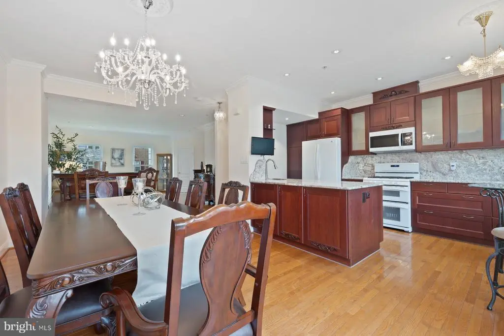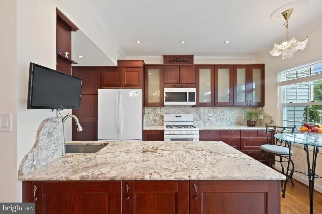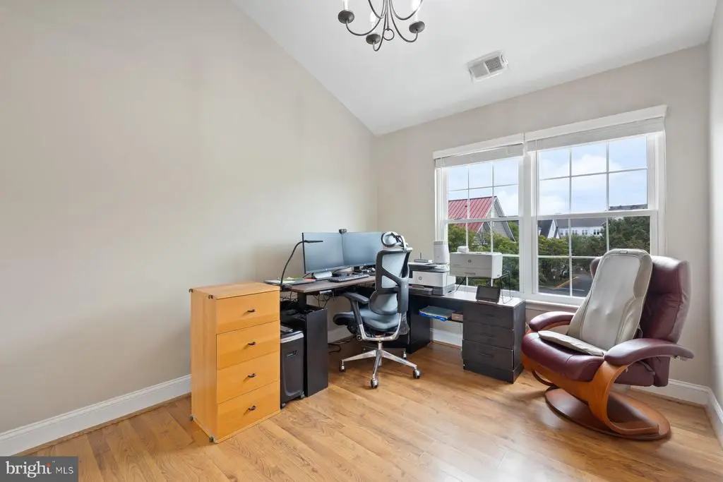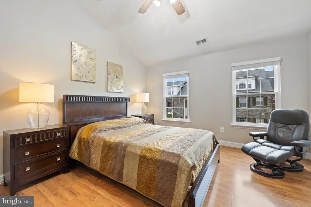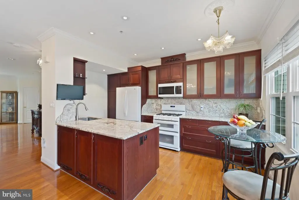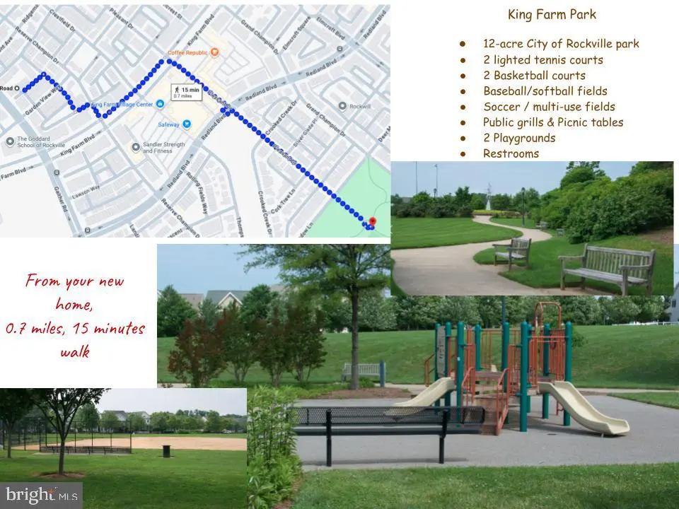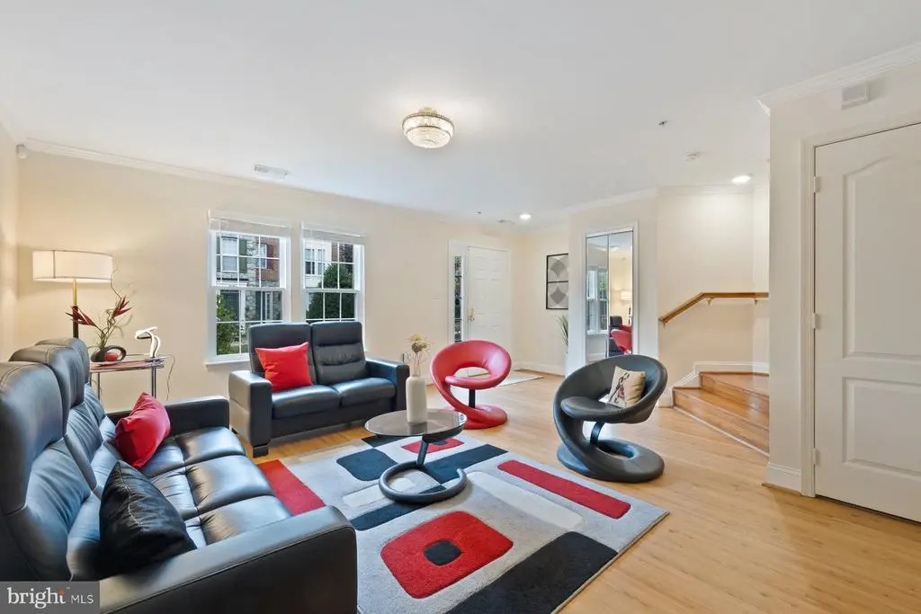 Gorgeous three-level townhome in the heart of sought-after King Farm. Proudly maintained and thoughtfully updated by its original owner, this home reflects true pride of ownership. One of the first things you’ll notice is the unbeatable setting—your front windows overlook a beautifully landscaped courtyard with manicured lawns, mature trees, and inviting benches, creating a serene, park-like environment right outside your front door. Step inside to a spacious family room with brand-new luxury vinyl plank floors (2024) and access to a thoughtfully enhanced two-car garage. Updates include an insulated garage door (2018), built-in storage, insulated flooring, utility sink, and a dedicated ductless split AC system (2022)—keeping the space comfortable year-round and making it ideal not only for parking but also for hobbies, a home gym, or a workshop. Head up to the main level, where gleaming hardwood floors flow throughout. This level is accented by recessed lighting, crown molding, crystal lights. The renovated kitchen features solid cherry cabinets, stunning granite countertops, under-cabinet lighting, and a water purification system. A vented exhaust and 220V outlet provide convenience for avid cooks and those with international appliances, while the cozy breakfast area flows seamlessly into the dining space. The powder room has been stylishly updated with designer fixtures. Step outside to the spacious maintenance-free deck, recently reinforced and refinished (2022) and equipped with a rainproof system, keeping the area below dry and practical for parking or storage. A remote-controlled awning offers shade and comfort, creating the perfect setting for outdoor dining and relaxation. Upstairs, you’ll find three bedrooms and two updated baths. The primary suite boasts a generous bedroom, walk-in closet, and a renovated en-suite bath with gorgeous tilework, heated floors, and a rough-in for a soaking tub. The hall bath, fully renovated (2021), serves the additional bedrooms with modern style. A convenient laundry area completes this level. For added efficiency, extra attic insulation was installed to improve comfort year-round. Additional upgrades include a 50-gallon gas water heater (2024), heating and AC system with whole-house humidifier (2023), neutral paint throughout (2025), a whole-house water purifier system (2024), rough-in for a gas fireplace in the living room, WiFi-controlled light switches and upgraded three-way controls, plus all new double-hung, double-pane energy-efficient windows and sliding door (2015 & 2023). Enjoy all that King Farm has to offer—just a short stroll to community pools, Mattie J.T. Stepanek Park, and the King Farm Village Center with shops and restaurants. Residents also benefit from a free community shuttle to Shady Grove Metro, along with easy access to I-270, ICC/MD-200, Shady Grove Hospital, and the Tech Corridor. Be sure to check out the virtual tour and interactive floor plan—this one will not last.