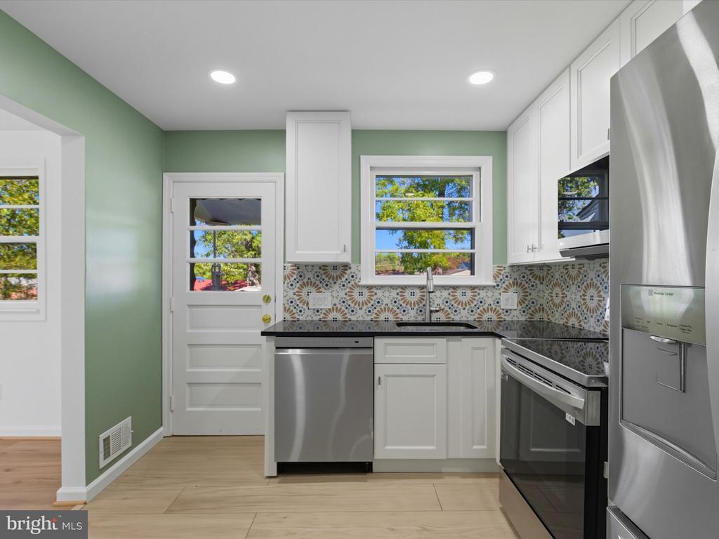 Built-In Microwave, Dishwasher, Disposal, Washer, Dryer, Oven/Range-Electric, Refrigerator, Stainless Steel Appliances, Water Heater