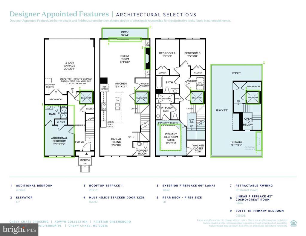 This home’s welcoming foyer leads to a first-floor bedroom, offering flexible options for guests, a home office, or personal retreat. The second level presents an open concept living area, where the spacious great room seamlessly transitions into the kitchen and casual dining space. This home features a deck off the main level, complete with a stacking slider door that enhances both style and functionality. The chef-inspired kitchen is designed for convenience and elegance, featuring an expansive center island with abundant counter and cabinet space, and a convenient walk-in pantry. The great room, with its cozy fireplace, provides the perfect spot to relax and unwind. On the third floor, the serene primary suite is a true retreat, boasting a tray ceiling that adds dimension and elegance, a spacious walk-in closet, and a luxurious bathroom with a dual-sink vanity, large shower with a seat, and a private water closet. Two charming secondary bedrooms are conveniently located near a full hall bath. The fourth-floor rooftop terrace is the perfect place to unwind, featuring a cozy outdoor fireplace and an awning that ensures comfort all year-round while providing stunning views of the community.