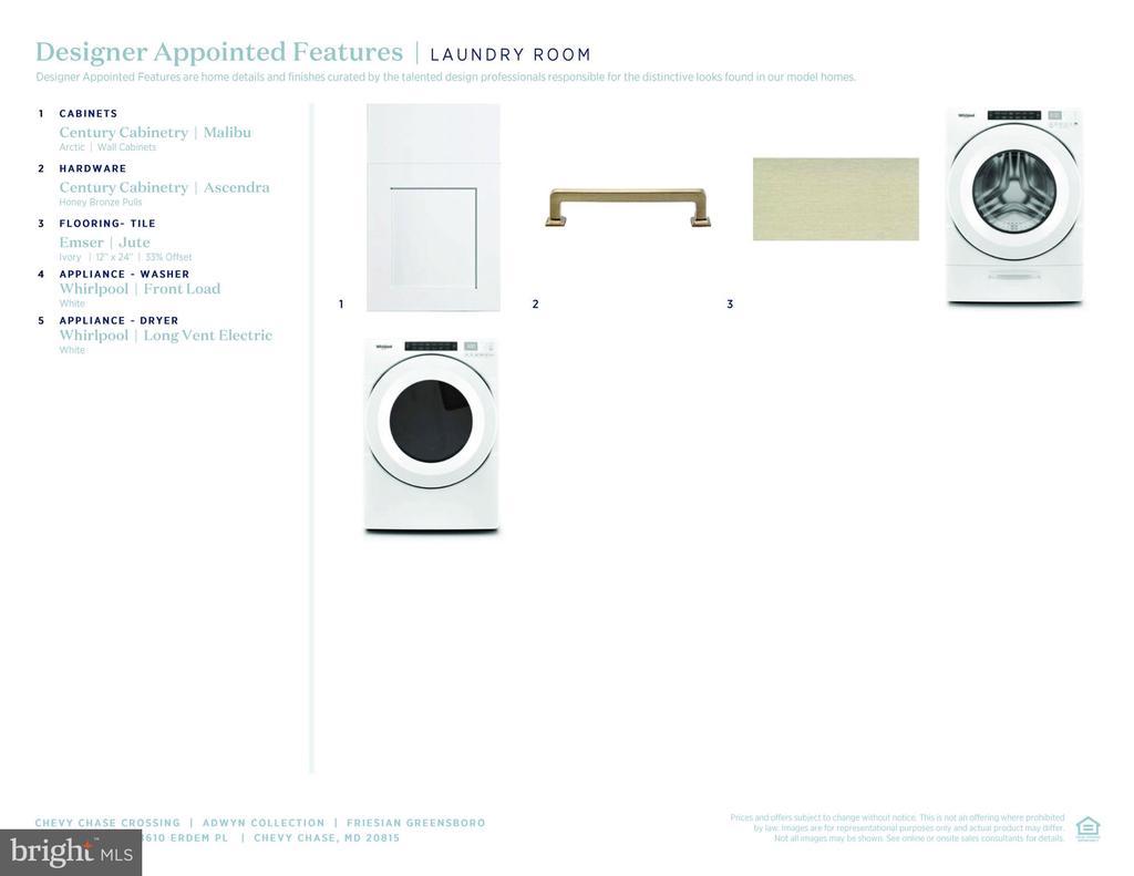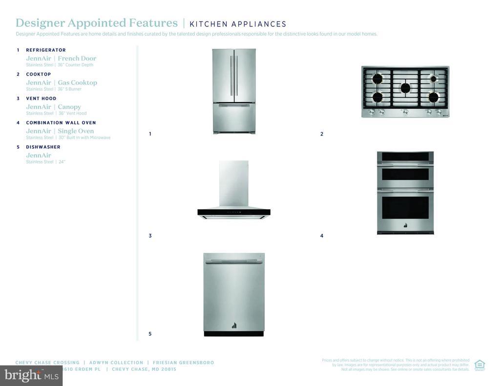 Cooktop, Dishwasher, Disposal, Dryer-front loading, ENERGY STAR Dishwasher, ENERGY STAR Clothes Washer, ENERGY STAR Refrigerator, Microwave, Range hood, Refrigerator, Washer-front loading