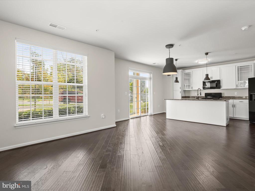 Here is your answer to low-maintenance luxury living. Welcome to 3825 Doc Berlin Drive #17, a beautifully designed two-bedroom corner condo perfectly situated just off Norbeck Road, offering immediate access to MD-97 and the ICC (MD-200). This thoughtfully appointed home blends modern comfort with timeless appeal, creating a retreat that is both stylish and convenient. Inside, an open floor plan unfolds with gleaming engineered wood flooring that flows throughout the main living spaces. The kitchen is as functional as it is elegant, featuring crisp white cabinetry with roll-out drawers, gleaming granite countertops, and sleek black appliances that create a striking contrast. An inviting island with a breakfast bar provides the perfect spot for morning coffee or casual dining, while the sliding glass door topped by a transom window fills the space with natural light and opens to a patio for fresh air and relaxation. The kitchen seamlessly connects to a dining area and a spacious living room, where windows on two sides create a bright, airy atmosphere ideal for entertaining or quiet evenings at home. The primary suite offers a peaceful escape, complete with a large walk-in closet and a private bath showcasing a tiled shower. Across the entry hallway, the second bedroom offers added privacy and convenient access to a second full bath, making it perfect for guests or a home office. Additional highlights include your own front-loading washer and dryer tucked neatly into a utility room for easy laundry days, as well as ample storage throughout the unit. Outside your door, the community enhances your lifestyle with plentiful unassigned parking, walking trails, picnic areas, and a playground inviting you to enjoy the outdoors without the upkeep of a single-family home. With its prime location, upscale finishes, and effortless layout, this condo offers the perfect balance of comfort, convenience, and low-maintenance luxury.