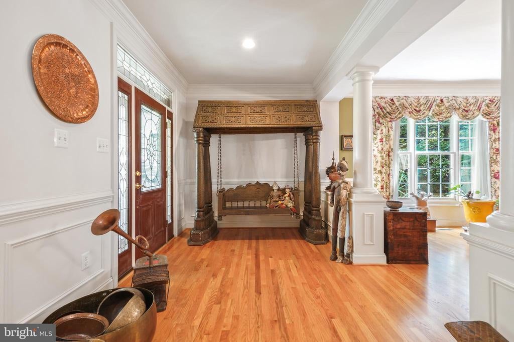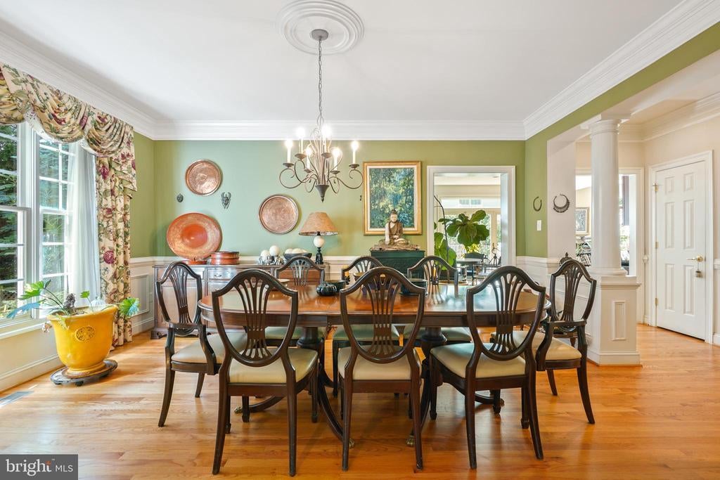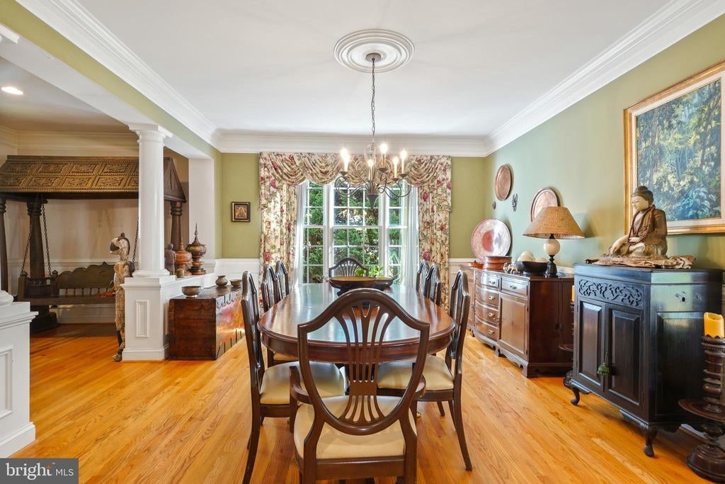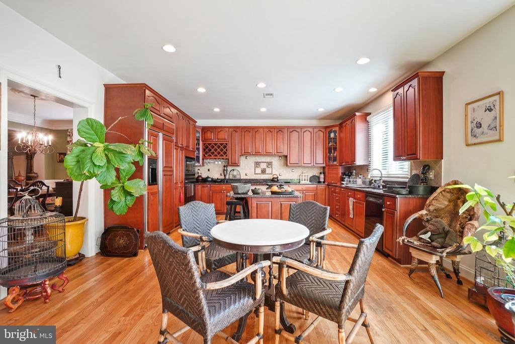 Welcome to this elegant and bright 5 bedroom, 4.5-bath brick colonial, infused with warm vibrant colors, and perfectly positioned on a private cul de sac. This welcoming and serene home showcases thoughtful design, high ceilings and a wealth of amenities—just moments from the vibrant heart of Bethesda. Step inside the elegant foyer, where chair rails, crown molding, and hardwood floors set a sophisticated tone. The main level offers a gracious formal dining room bathed in natural light, framed with columns, and a two-story living room with elegant Palladian windows. The main-level office is spacious enough to be used as a bedroom, located adjacent to a powder room. The heart of the home is the expansive island kitchen, featuring cherry cabinetry, paneled appliances, granite countertops, with bar seating, and a pantry cupboard. The sunlit breakfast area is located opposite the sliding doors to the spacious private Trex deck – inviting you to soak up the sun or enjoy a meal with a crowd of friends in privacy thanks to a green wall of wisteria. The family room features a fireplace —creating an inviting space for everyday living as well as formal entertaining. Upstairs, the luxurious primary suite impresses with a coffered ceiling, sitting room, dual walk in closets, and spa-like tub, double vanities, and separate shower. A guest suite with ensuite bath, two additional bedrooms, sharing a full bath, and convenient laundry complete this level. The lower level offers a wet bar, and a large recreation or game room, ideal for movie night, with exterior access. It also boasts a 5th bedroom, full bath, perfect for an au pair, or visiting family members. It delivers a bonus space for a fitness room or second home office. Outside, the fenced yard creates a serene retreat where you can pick your own figs in the summer. Enjoy easy access to the Bethesda-Chevy Chase YMCA, the scenic Bethesda Trolley Trail, Maplewood/Alta Vista Park, and the Shops at Wildwood, as well as the Westfield Mall. Minutes to NIH, as well as world-class public and private schools. Commuters will appreciate proximity to two Washington Metro stations, I-495, and I-270, while downtown Bethesda’s renowned dining and shopping are a short ride away. Convenient to all 3 airports in the region. This exceptional home offers space, style, and a coveted location—an ideal blend for modern living. Make your appointment today! Sold AS IS, inspections welcome, 1 year AHS home warranty provided. NOTE: some of the photos show the home when it was fully furnished with all the sellers' furniture and art work.